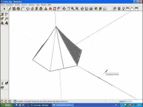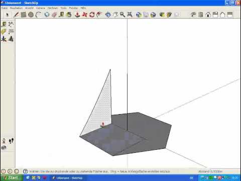Zuerst erstelle ich eine Ebene (Dreieck) die durch die Mitte der Wand das untere und das obere Ende der Stange gebildet werden.
