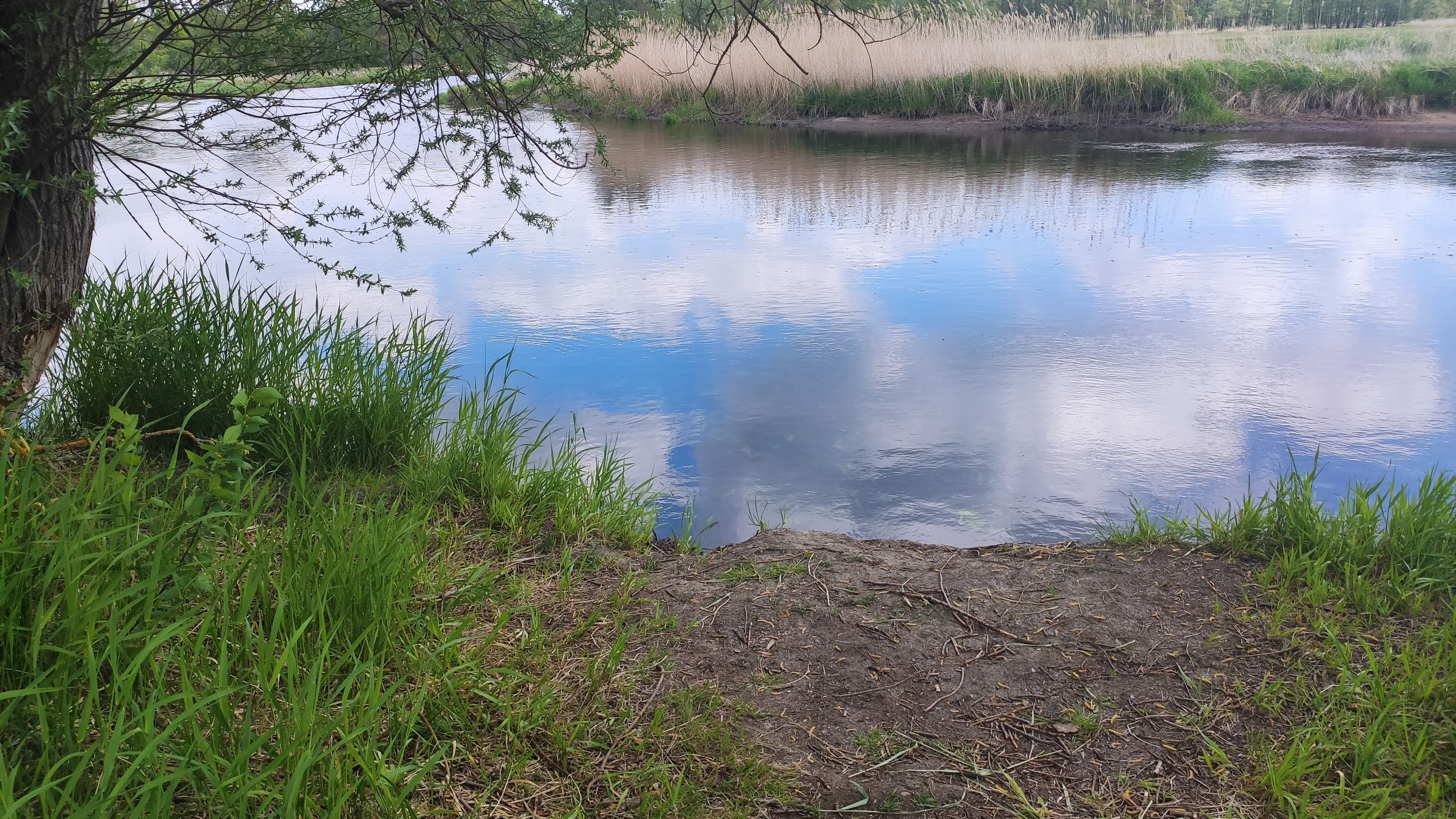 An der eigenartig tiefen Wasserlage im Sitzbereich hat sich aber natürlich nichts geändert, was sie zunehmend beunruhigt. Also legen wir nach weiteren 2km noch einmal an, diesmal am zweiten Strand von Hangelsberg.