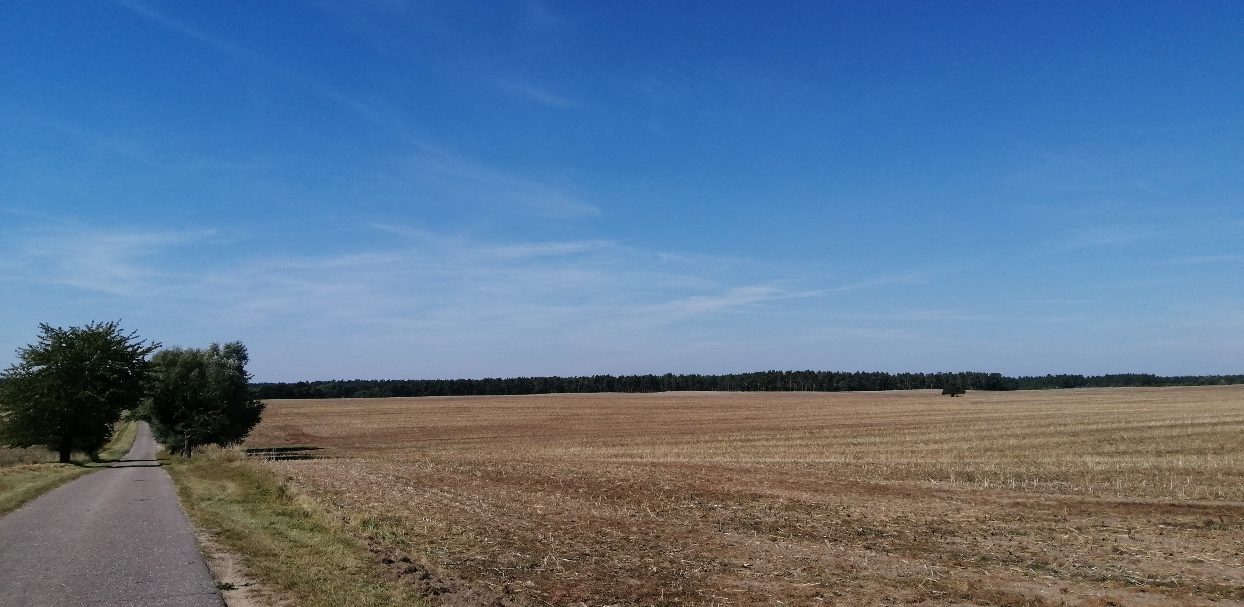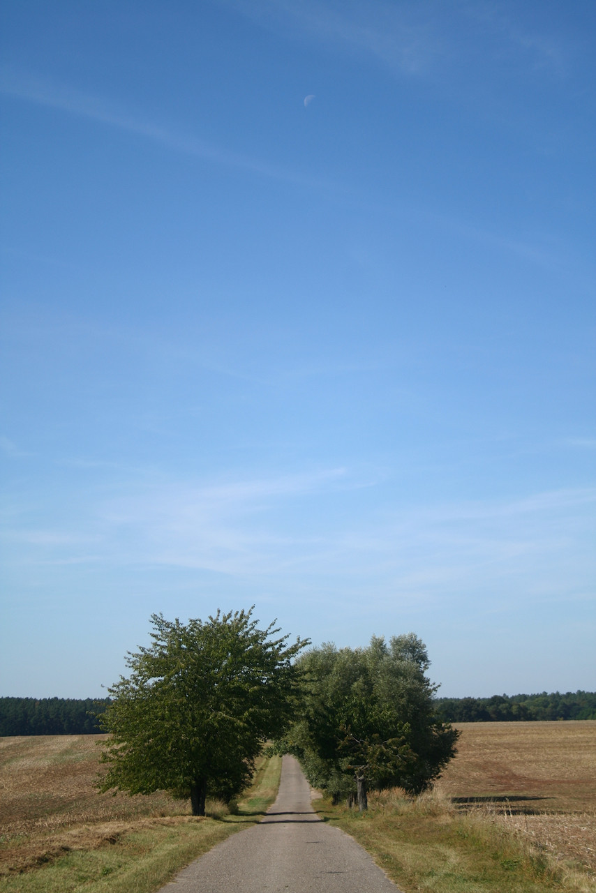 Seinerzeit passte die Wegstrecke gerade so in den kurzen Novembertag und kam mir kurz vor; diesmal ist die Wärme belastend und man fühlt sich von ferne an frühere Versuche erinnert, zu Fuß aus französischen Kleinstädten hinauszuwandern – während manches andere Detail gerade nicht an Frankreich erinnert, sondern eben Brandenburg ist. Oder sogar Lychen.