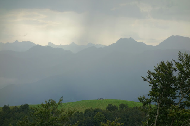 Ab 16 Uhr begann es zu regnen, erst leicht und warm und dann, je höher ich kam, fester und kühler mit einem heftigen Wind als Beigabe. Dass ich meinen Schirm dabei hatte, war zunächst echt super. So konnte ich ohne zusätzliche Regensachen mit einem Dach über dem Kopf weiter laufen. La Rhune (baskisch: Larrun), ein Aussichtsberg in etwas wie der Brocken im Harz, war mein Ziel. In der Hoffnung, dort eine Bar, eine Herberge zu finden, arbeitete ich mich gegen Wind und Regen hoch. Oben dann die erste große Enttäuschung: Die Bars/Restaurants hatten bereits geschlossen (19 Uhr).