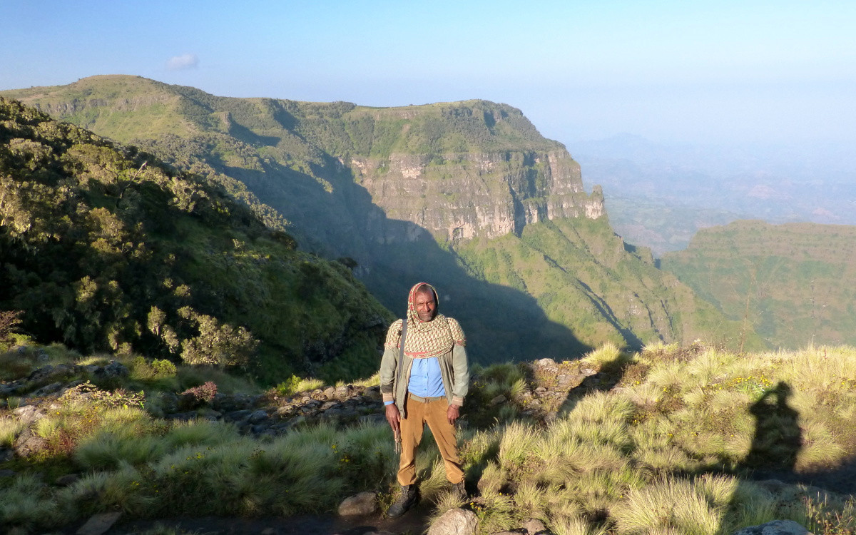 Im Mai 2014 zeichnete es sich ab, daß ich beruflich nach Äthiopien reisen würde. Dort war ich noch nie vorher im Leben gewesen, und ich begann zu recherchieren, welche Möglichkeiten zum Wandern bzw. Trekken es dort gäbe. Viel fand ich dabei allerdings nicht: einige knappe Hinweise auf die Simien-Berge und die Bale-Berge – das war es dann auch schon. Auf den Outdoorseiten fragte ich ebenfalls, und Kamerad "Libertist” gab mir ein paar freundliche Hinweise. Viel schlauer war ich danach auch nicht, aber ich behielt das Wanderziel “Simien-Berge” im Hinterkopf. Dann war ich fünf Jahre lang immer wieder beruflich in Äthiopien, aber fand nie die Zeit zum Wandern bzw. war immer zur “falschen” Jahreszeit dort. Ihr müßt wissen: das Wandern in den dortigen Bergen ist eigentlich nur im Herbst wirklich schön. Die Regenzeit im Sommer ist dafür nicht so geeignet, und während der Trockenzeit im Winter und Frühjahr ist die Luft meist stark getrübt von Staub. Obendrein sieht man dann fast nur noch vertrocknete Vegetation gelb-grauer Farbe. Dennoch bemerkte ich bei meinen vielen ausgedehnten Autofahrten durch das gesamte Land (und sogar vom Flugzeug aus), welch tolle Berglandschaften Äthiopien aufzuweisen hat – fantastisch. Leider aber wird dies nur wenig gewürdigt: die Äthiopier selbst finden diese tollen Berglandschaften ganz einfach „normal“, und für internationale Outdoorer war das Land auch niemals ein großer Magnet, was ich nicht recht verstehen kann.