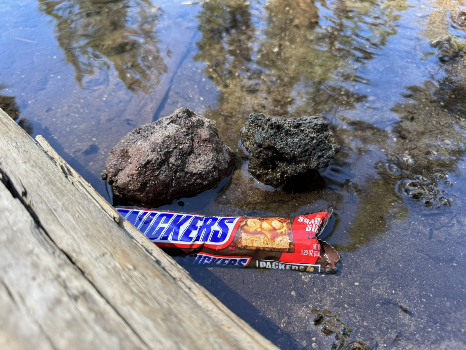 Am frühen Nachmittag bin ich dann auch schon am Bach und balanziere auf einem gebrochenen Baumstamm drüber, spüle Schweiß und Sand ab, lege ein Snickers ins Wasser damit es sich wieder verfestigen kann und koche mir eine Portion Ramen.