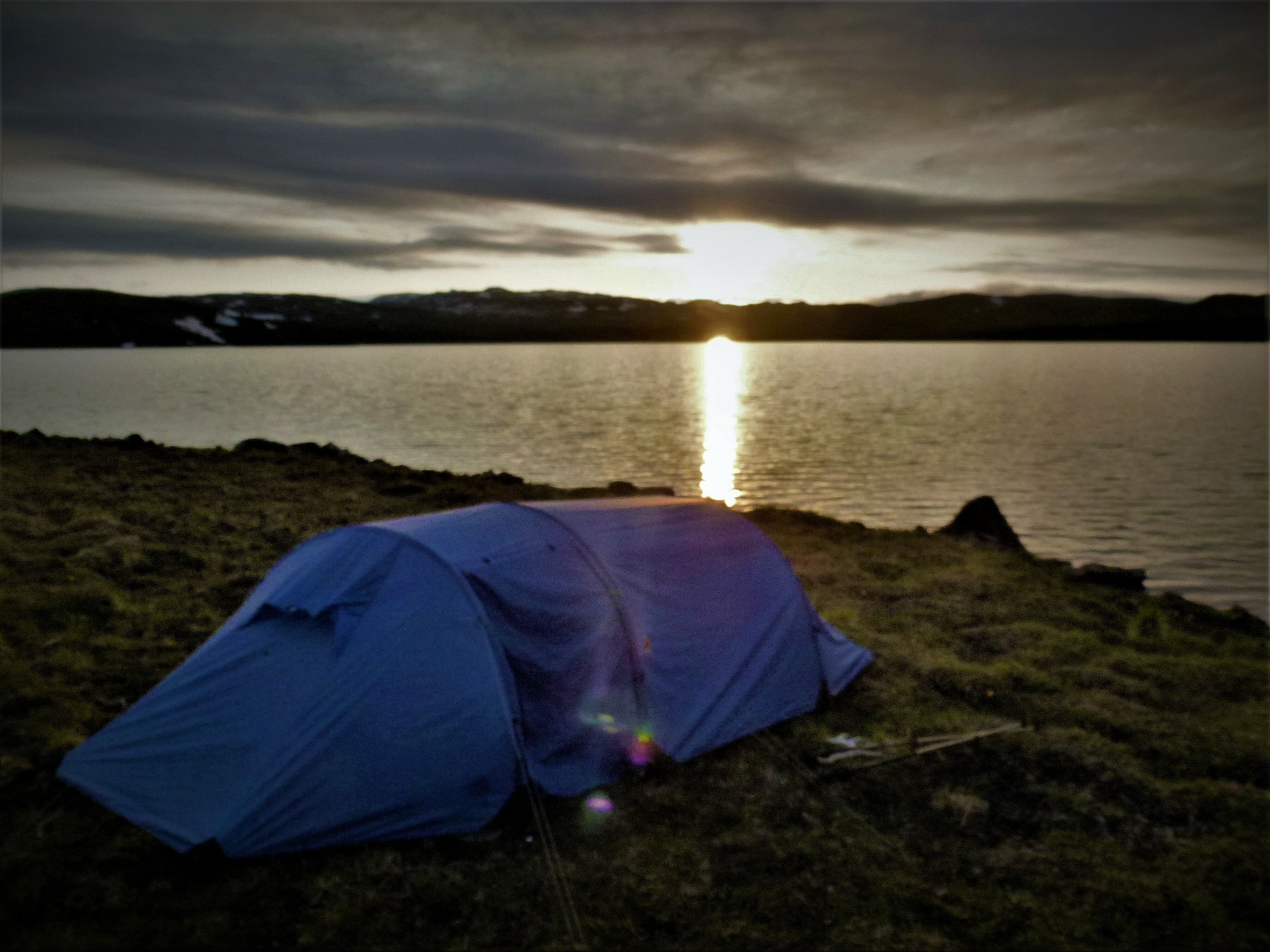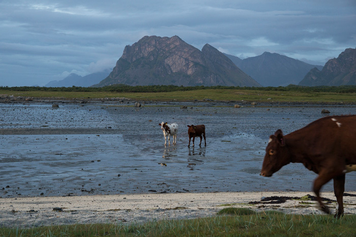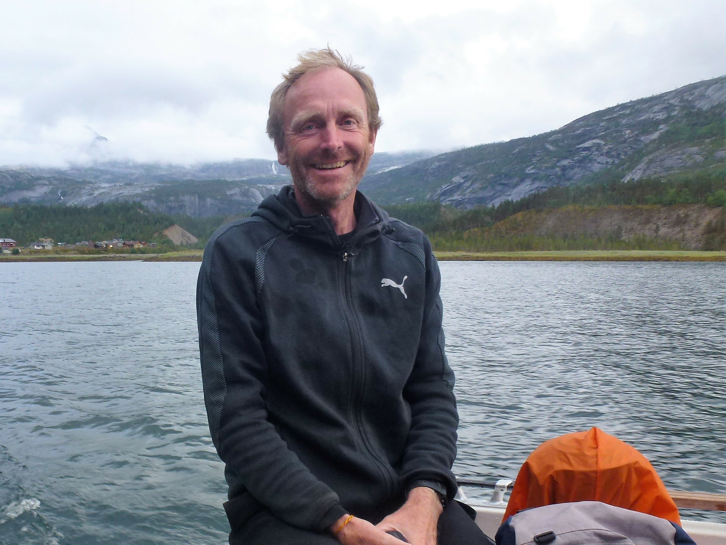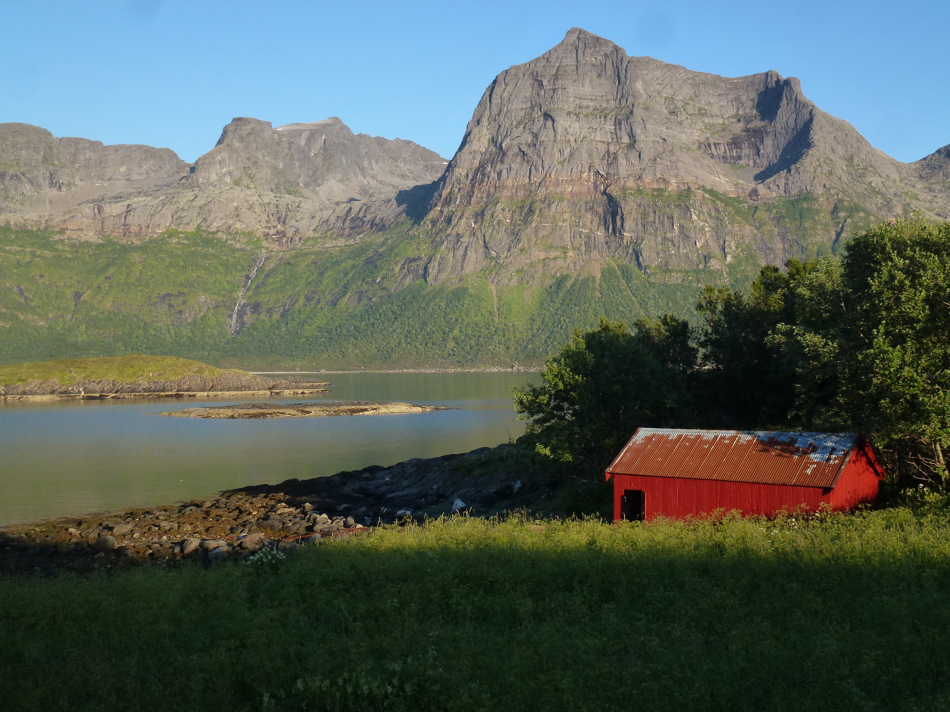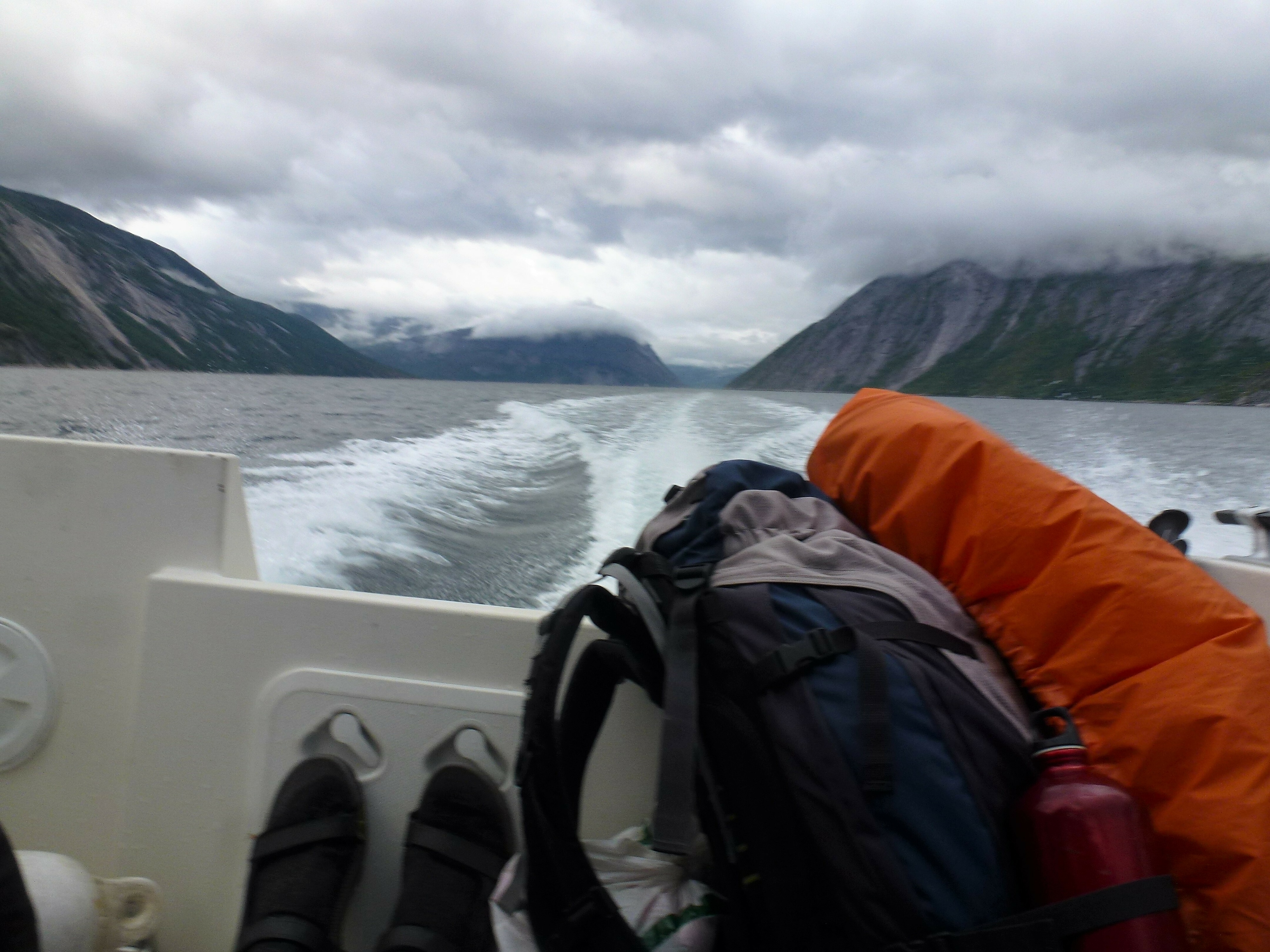 1. Tag: Frankfurt – Bodö – Fauske: Früher Flug von Frankfurt nach Oslo, dann weiter von Oslo in die nordnorwegische Hafenstadt Bodö. Europa einschließlich Südskandinavien liegt seit Wochen unter einer außergewöhnlichen Sonnen- und Hitzeglocke, die Wiesen am Flughafen von Oslo sind braun verbrannt, erst hoch im Norden gibt es eine Wolkendecke und in Bodö empfängt uns standesgemäß Nieselregen bei 12°. Bodö: Viel Beton, wenig Charme, kaum Menschen in den Straßen, Läden haben zu (Sonntag). Wir nehmen einen Bus und fahren 30 km einen Fjord entlang in die Kleinstadt Fauske, stellen unser Zelt auf einen netten Campingplatz und schauen in der Campingplatzküche das WM- Endspiel France: Krotia – 4:2 – France is Champion. Abendwanderung bis ans Ende einer in den Fjord ragenden Halbinsel, 5 km hin, 5 km zurück, die Wolken reißen auf, ein mildes Lüftchen weht, die Nacht bleibt hell: Seltsam.