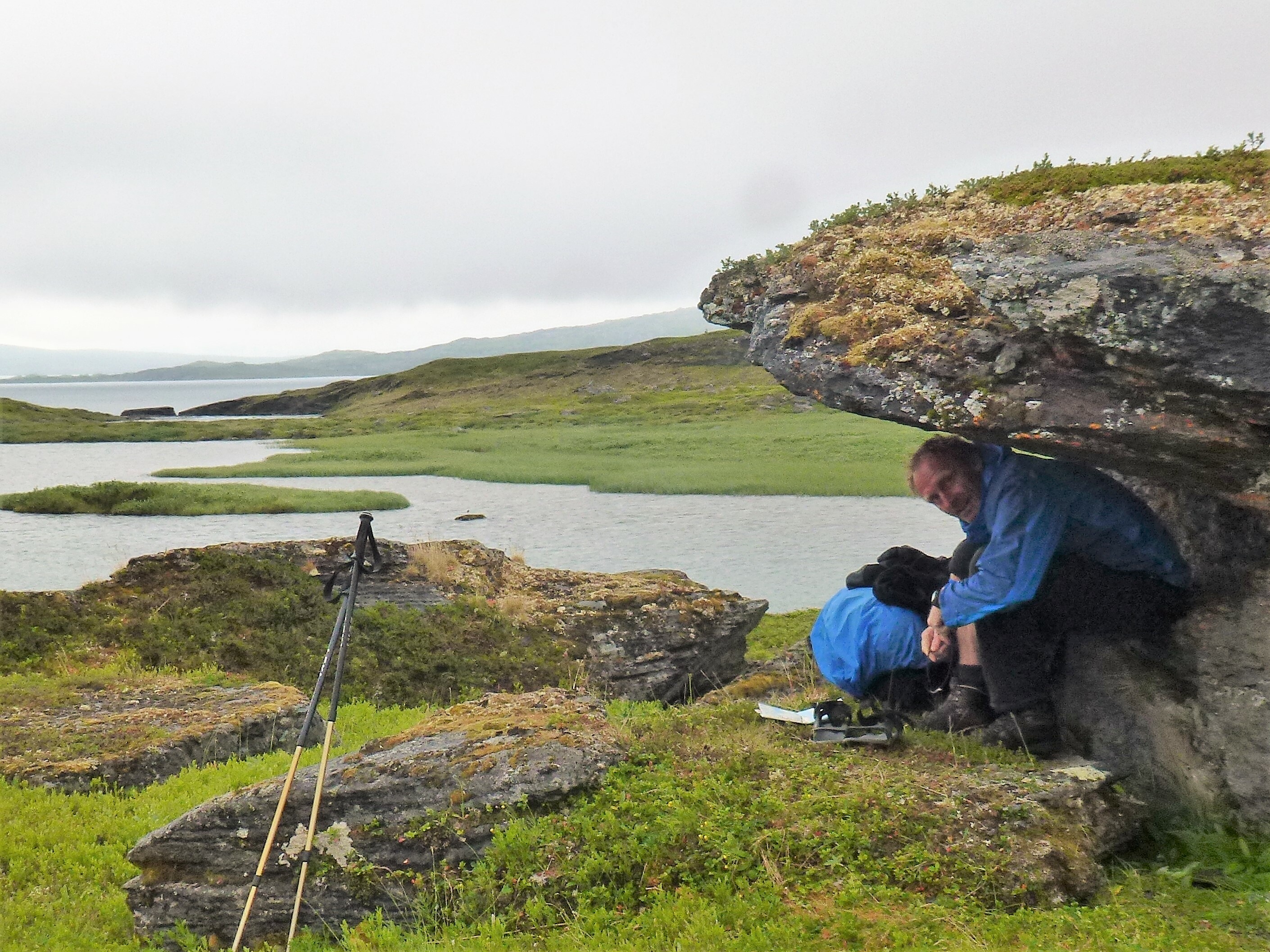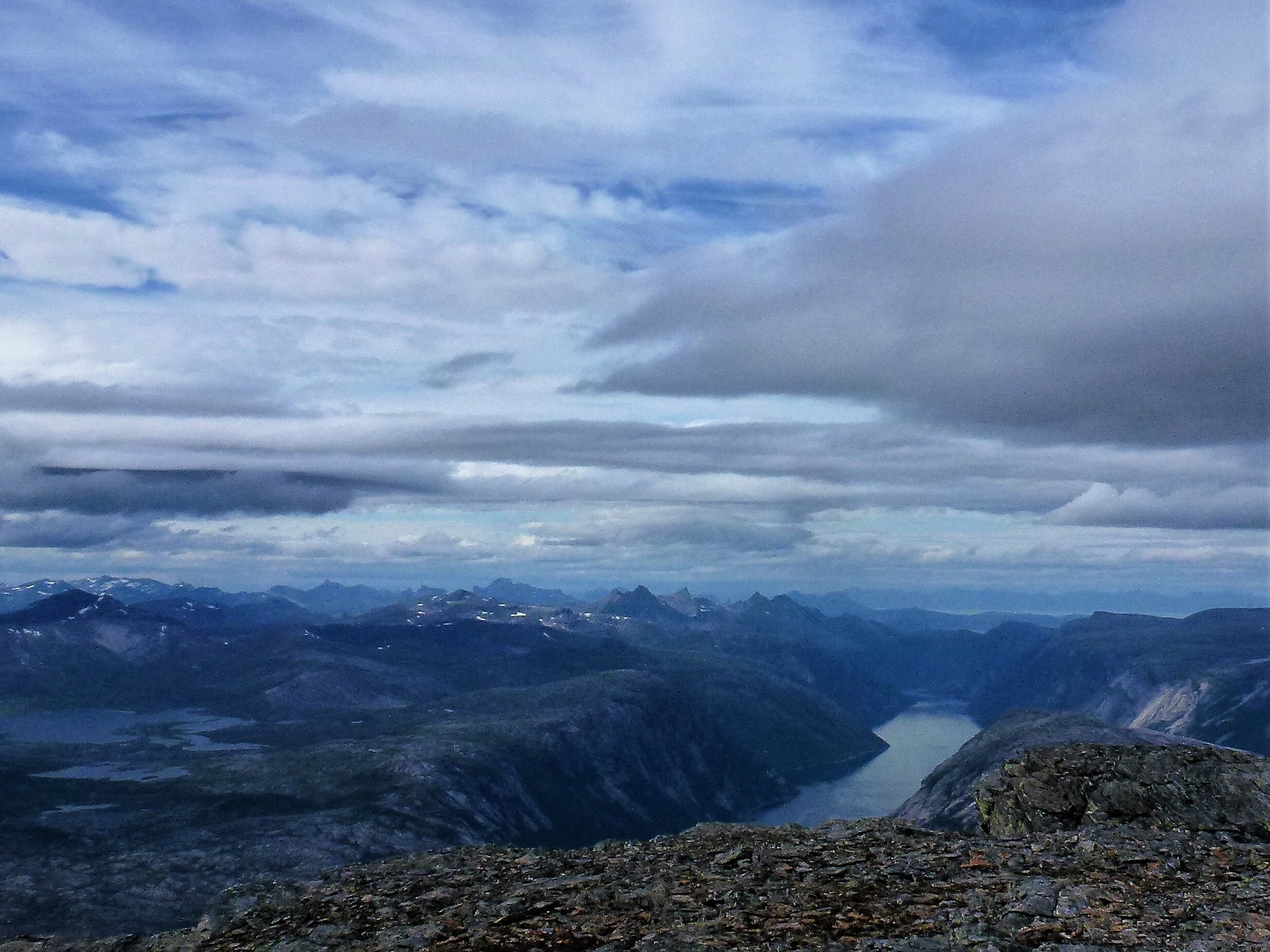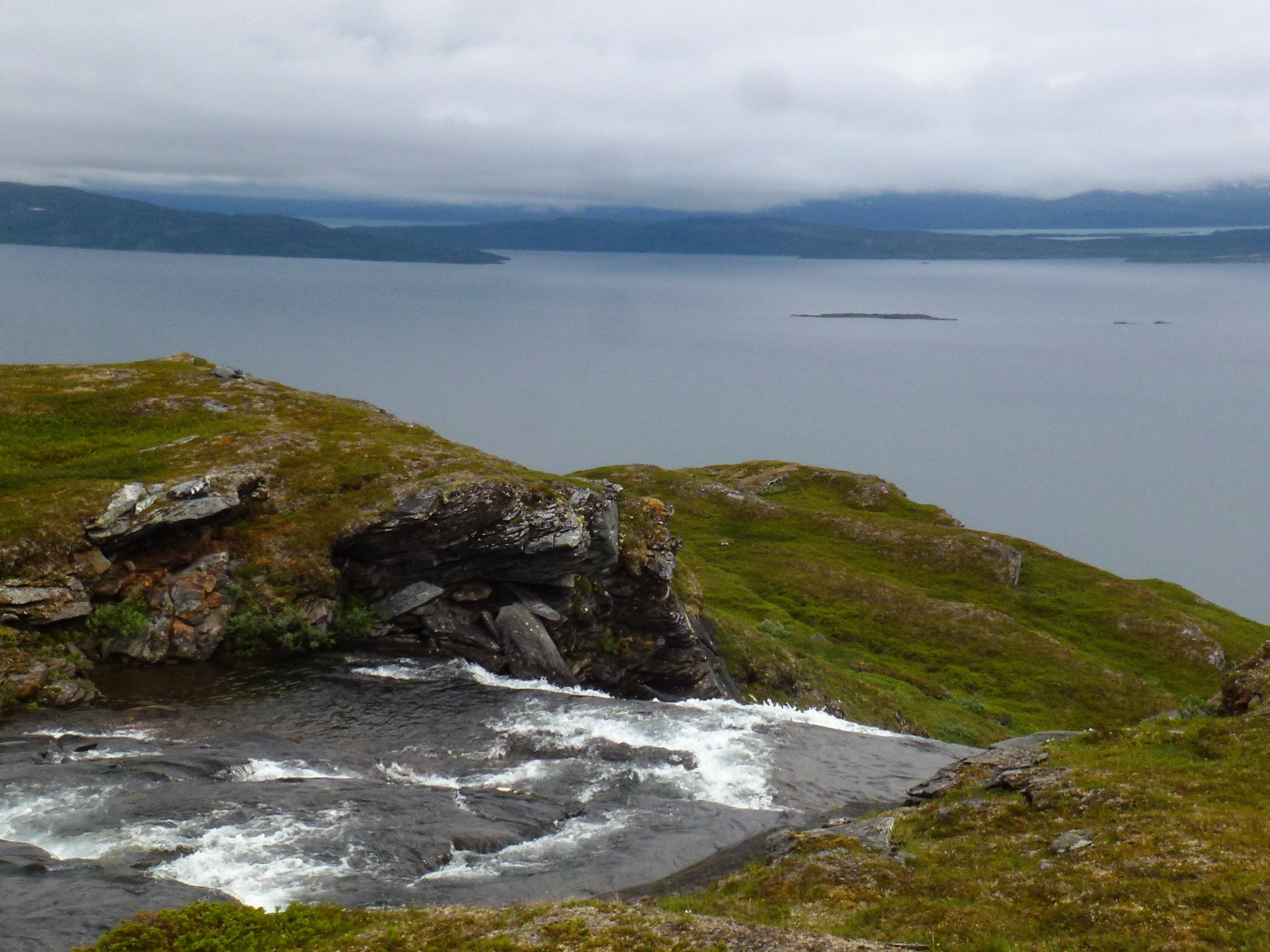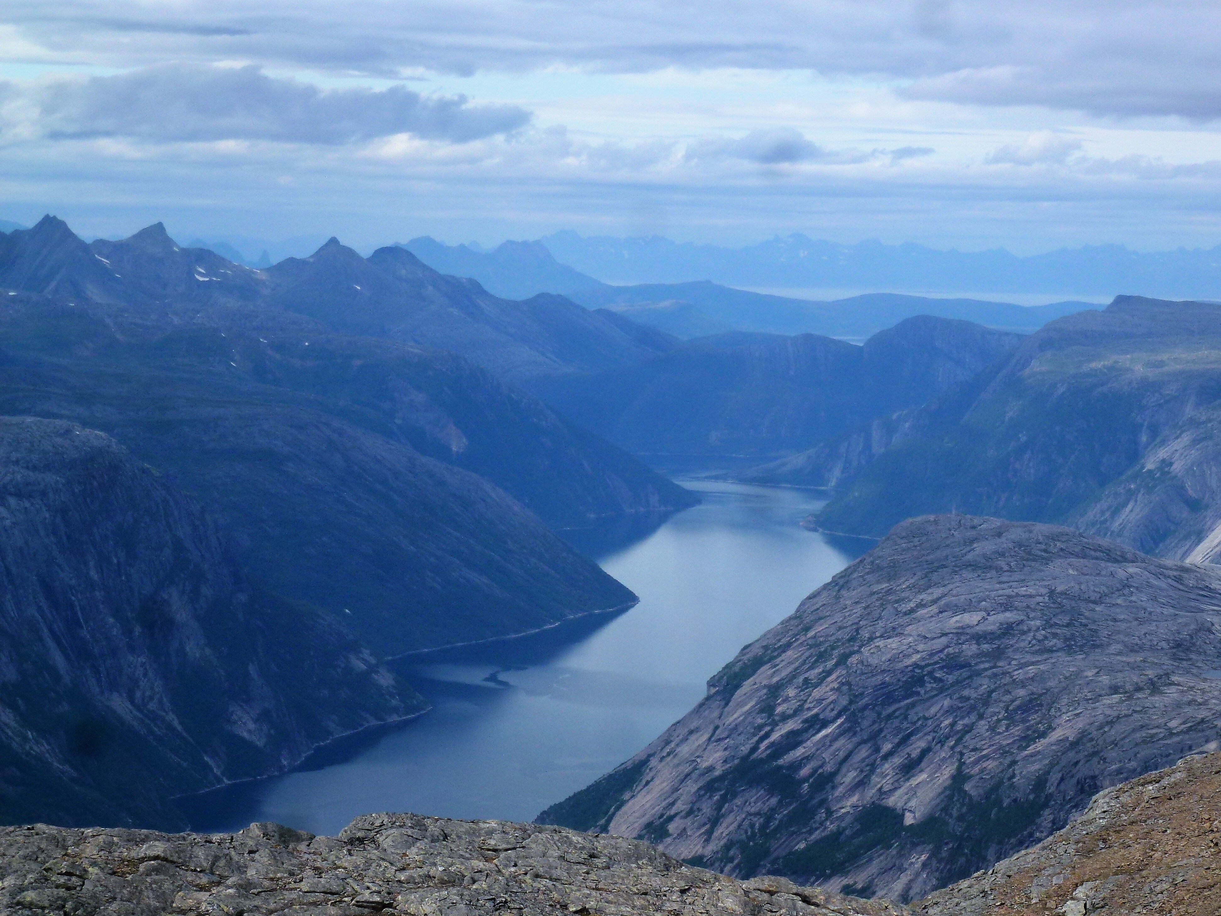 1. Tag: Frankfurt – Bodö – Fauske: Früher Flug von Frankfurt nach Oslo, dann weiter von Oslo in die nordnorwegische Hafenstadt Bodö. Europa einschließlich Südskandinavien liegt seit Wochen unter einer außergewöhnlichen Sonnen- und Hitzeglocke, die Wiesen am Flughafen von Oslo sind braun verbrannt, erst hoch im Norden gibt es eine Wolkendecke und in Bodö empfängt uns standesgemäß Nieselregen bei 12°. Bodö: Viel Beton, wenig Charme, kaum Menschen in den Straßen, Läden haben zu (Sonntag). Wir nehmen einen Bus und fahren 30 km einen Fjord entlang in die Kleinstadt Fauske, stellen unser Zelt auf einen netten Campingplatz und schauen in der Campingplatzküche das WM- Endspiel France: Krotia – 4:2 – France is Champion. Abendwanderung bis ans Ende einer in den Fjord ragenden Halbinsel, 5 km hin, 5 km zurück, die Wolken reißen auf, ein mildes Lüftchen weht, die Nacht bleibt hell: Seltsam.