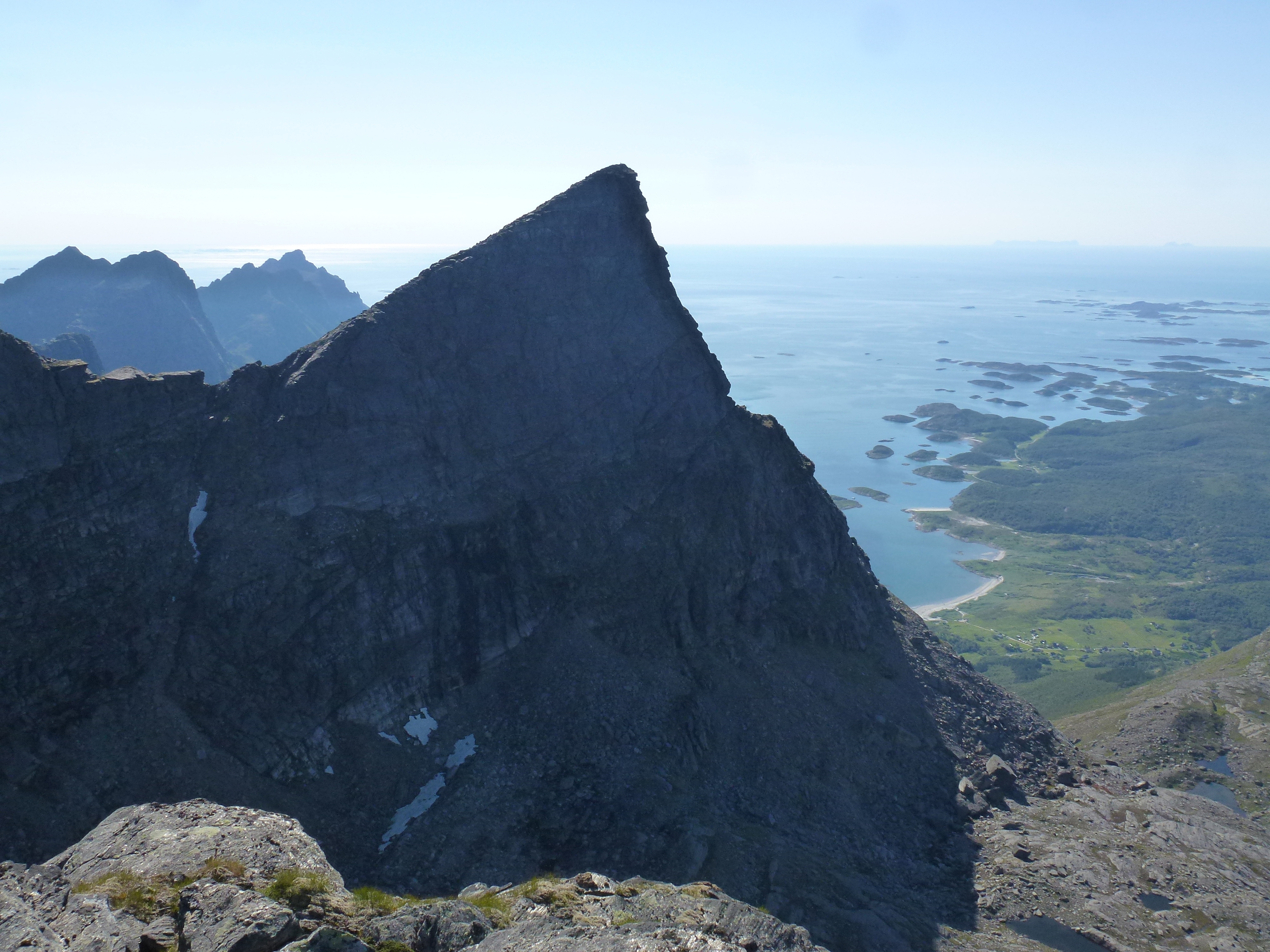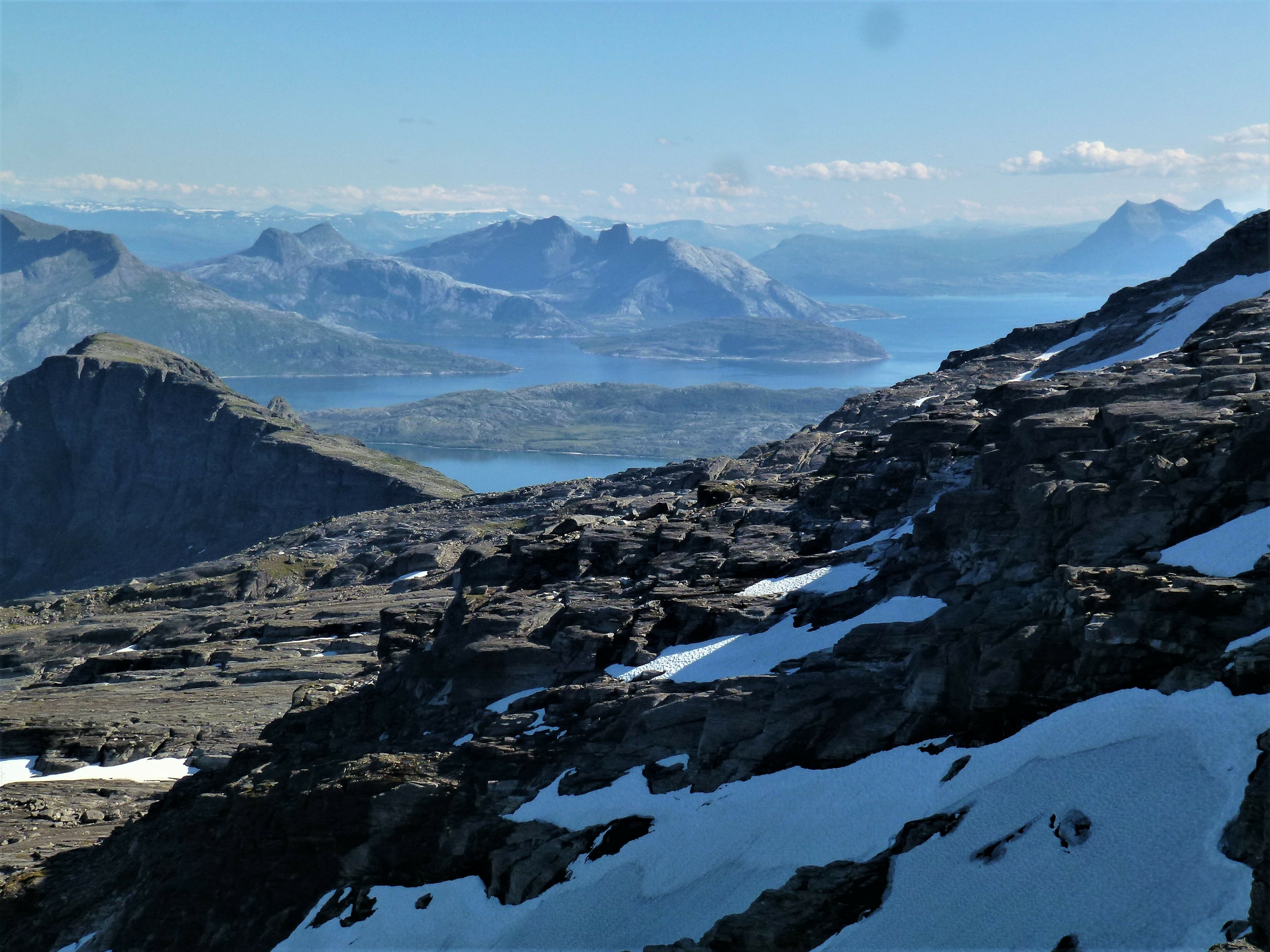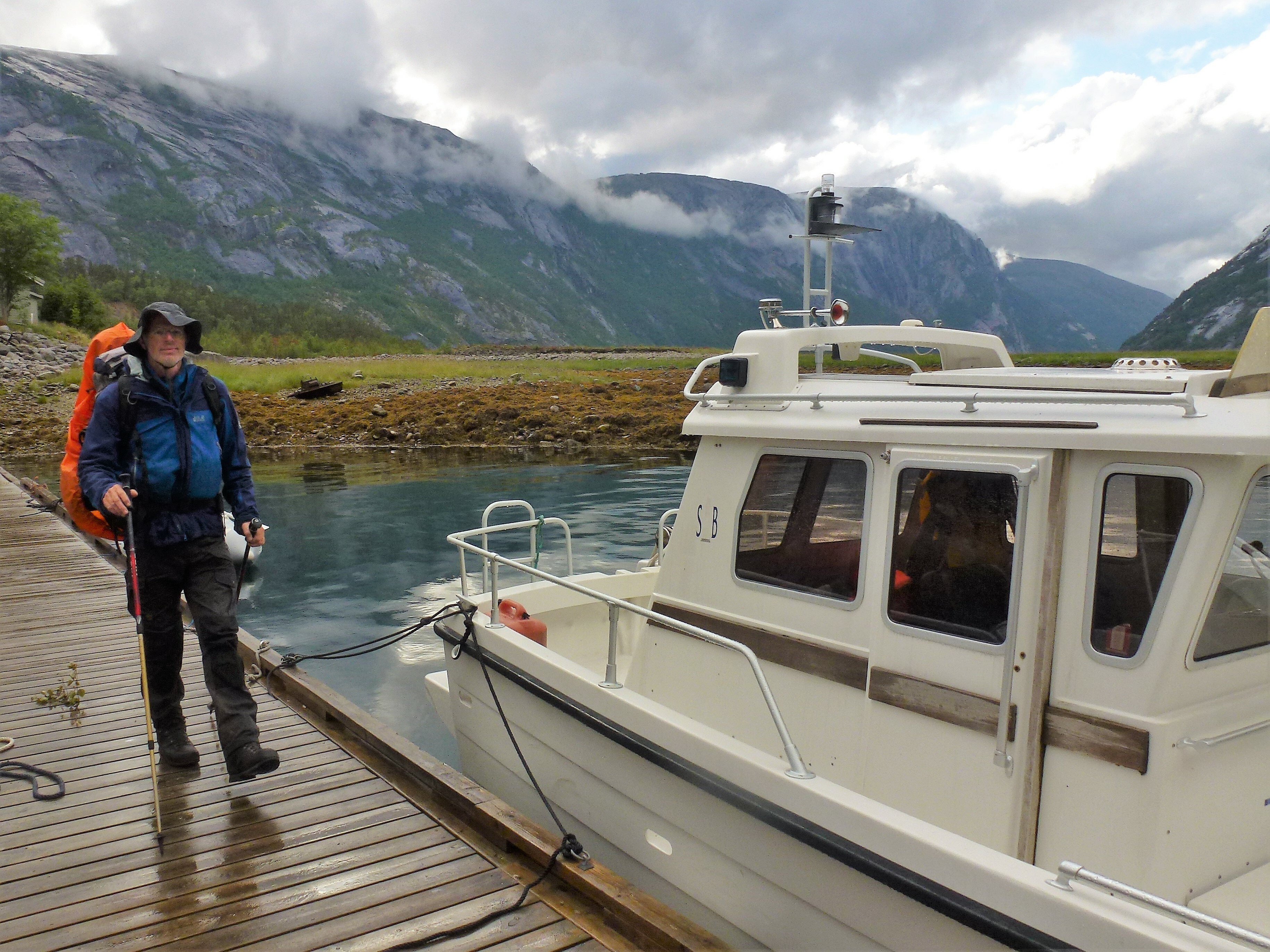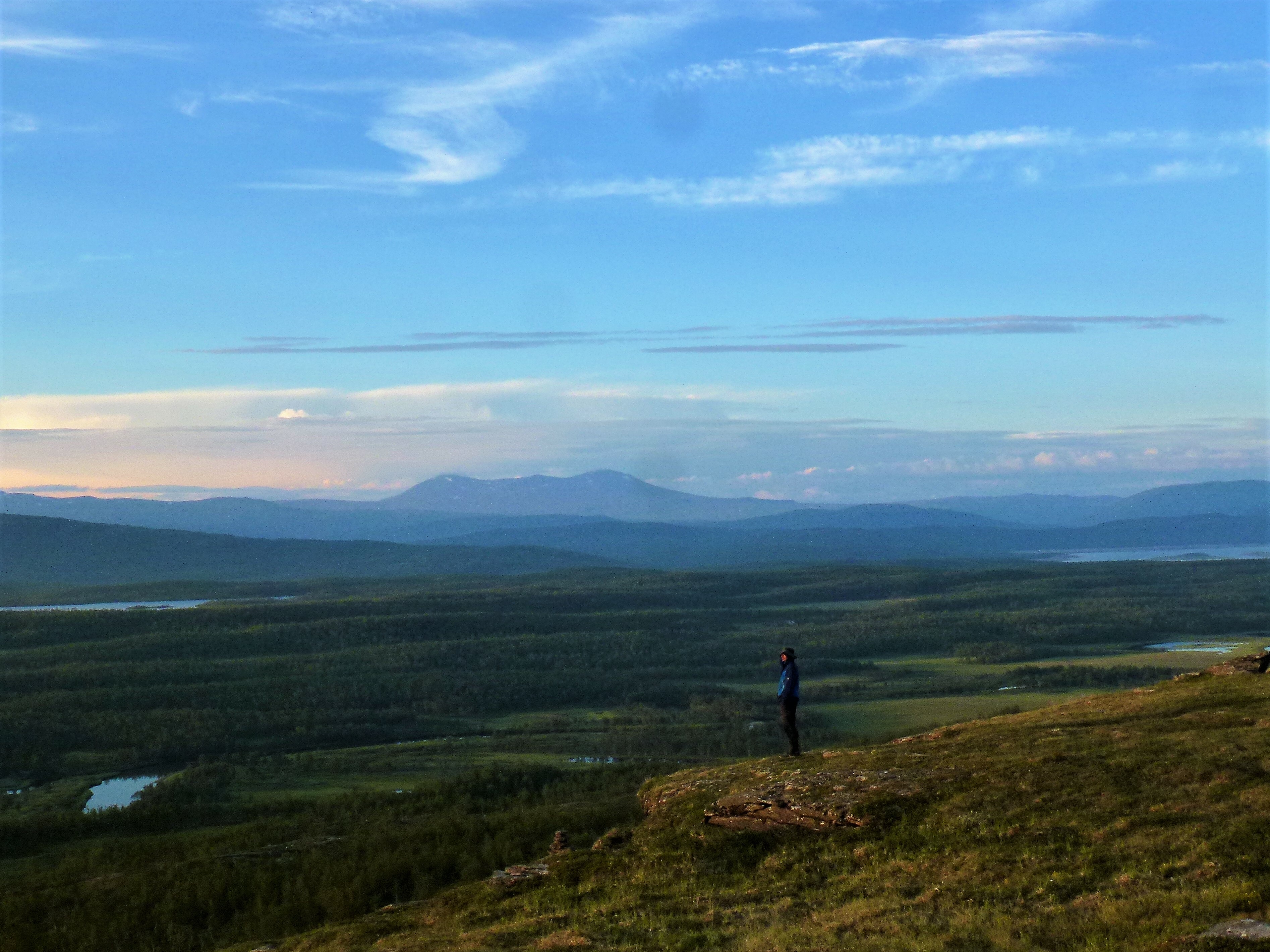 1. Tag: Frankfurt – Bodö – Fauske: Früher Flug von Frankfurt nach Oslo, dann weiter von Oslo in die nordnorwegische Hafenstadt Bodö. Europa einschließlich Südskandinavien liegt seit Wochen unter einer außergewöhnlichen Sonnen- und Hitzeglocke, die Wiesen am Flughafen von Oslo sind braun verbrannt, erst hoch im Norden gibt es eine Wolkendecke und in Bodö empfängt uns standesgemäß Nieselregen bei 12°. Bodö: Viel Beton, wenig Charme, kaum Menschen in den Straßen, Läden haben zu (Sonntag). Wir nehmen einen Bus und fahren 30 km einen Fjord entlang in die Kleinstadt Fauske, stellen unser Zelt auf einen netten Campingplatz und schauen in der Campingplatzküche das WM- Endspiel France: Krotia – 4:2 – France is Champion. Abendwanderung bis ans Ende einer in den Fjord ragenden Halbinsel, 5 km hin, 5 km zurück, die Wolken reißen auf, ein mildes Lüftchen weht, die Nacht bleibt hell: Seltsam.
