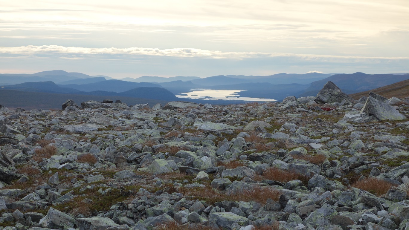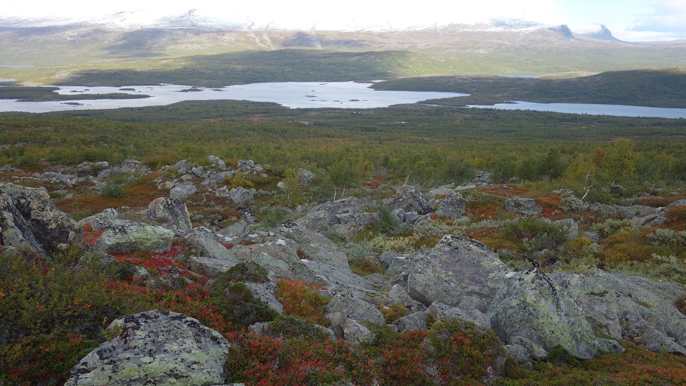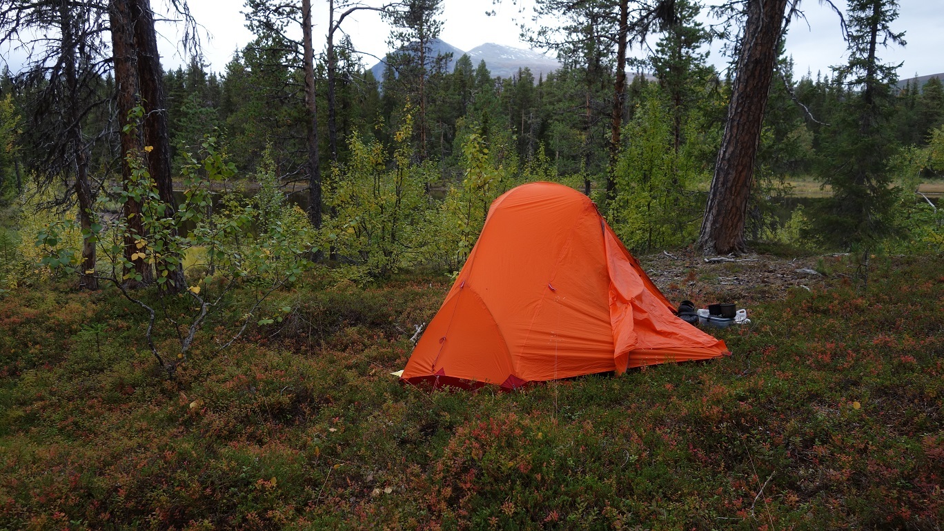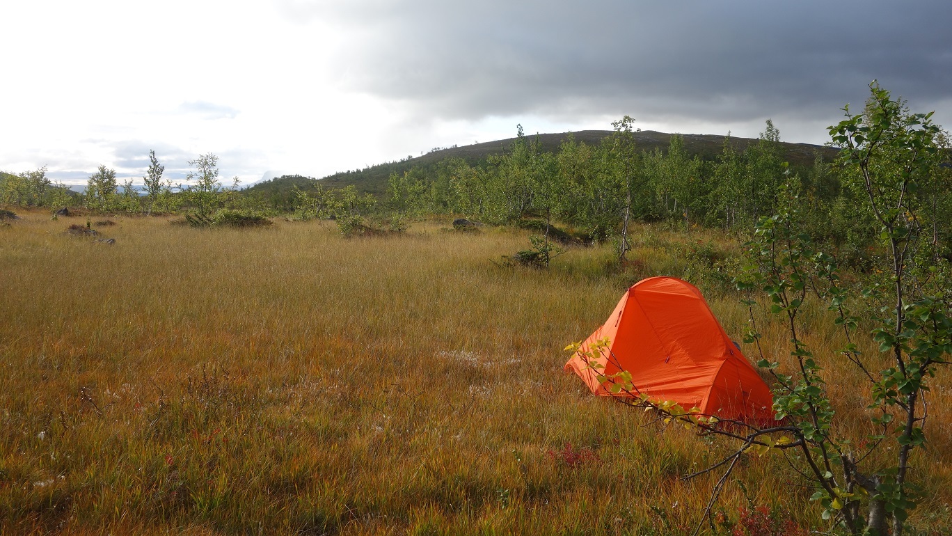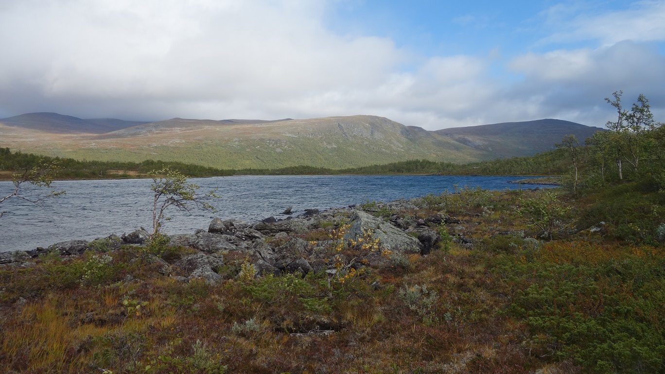 Es sollte ins Arjeplogsfjäll gehen, etwas westlich vom Kungsledenabschnitt Jäckvik - Kvikkjokk. Eine sehr abwechslungsreiche und durchaus alpine Gegend, die allerdings mit vielen feuchten Hindernissen gespickt ist ... genau das richtige Terrain, wenn man so ein Boot als Joker dabei hat. Ansonsten nur schwer auf wenigen Routen zu queren, weshalb sich hier nicht so viele Leute tummeln. Tatsächlich sollte ich 8 Tage lang niemanden treffen.... und die ersten, die ich dann traf, waren natürlich ODSler! (Bourne und seine Elisabeth)