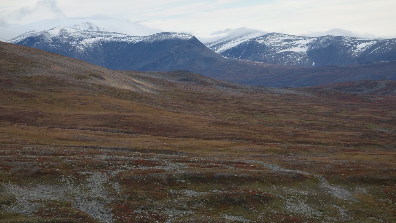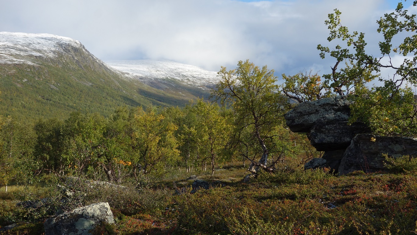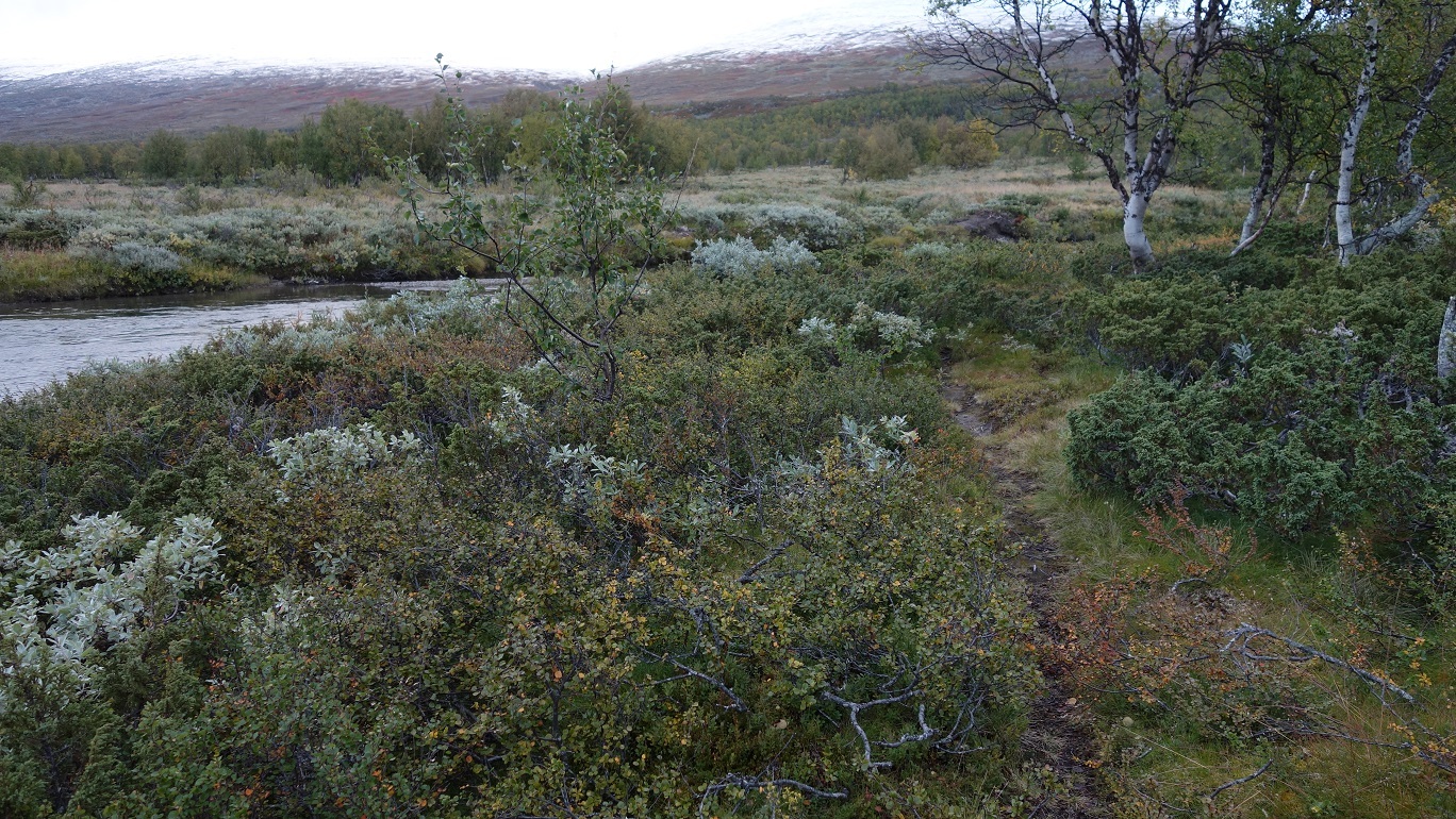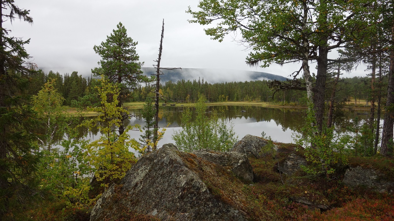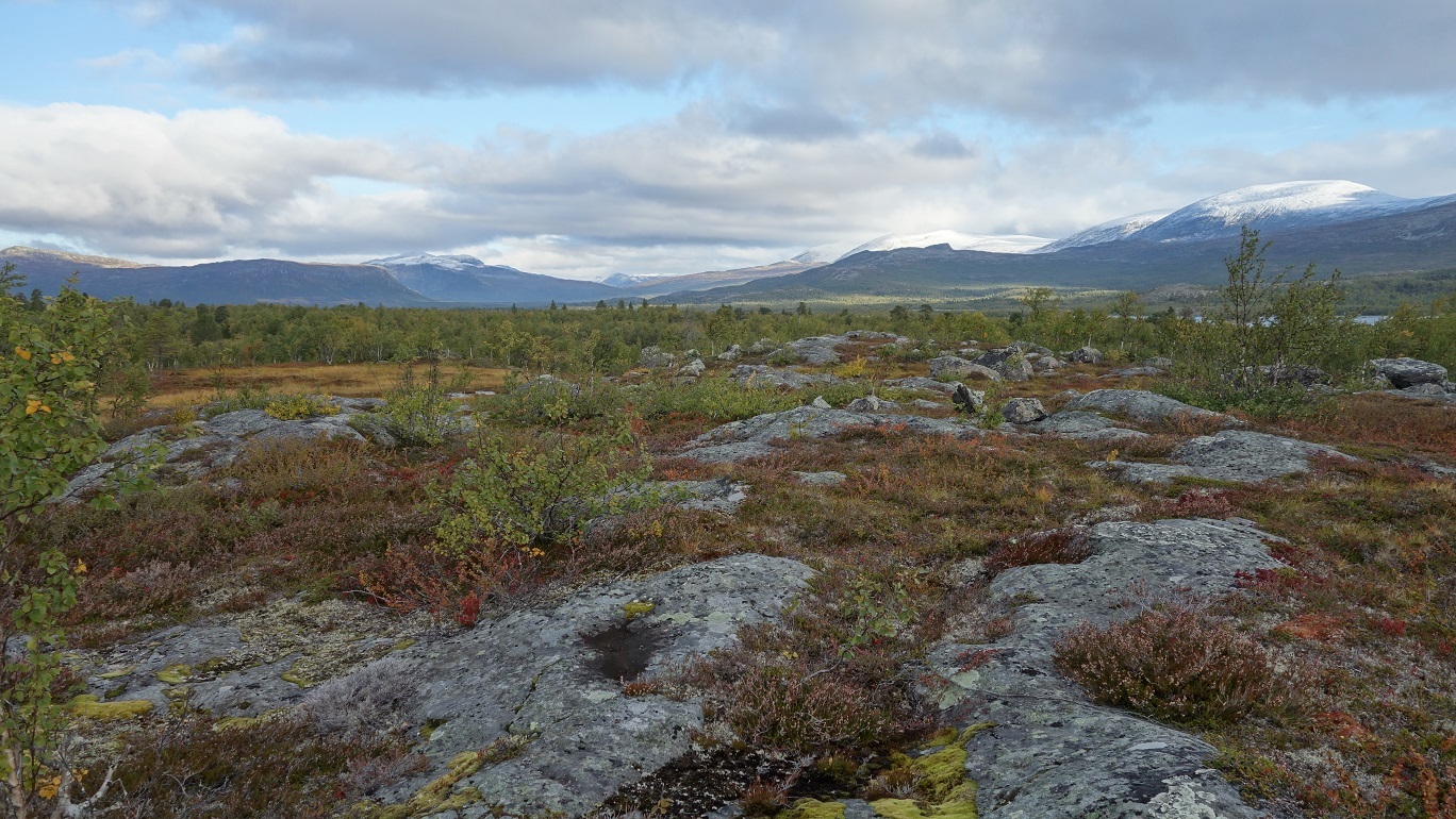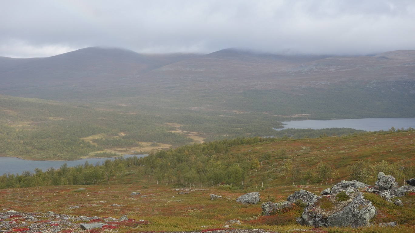 Es sollte ins Arjeplogsfjäll gehen, etwas westlich vom Kungsledenabschnitt Jäckvik - Kvikkjokk. Eine sehr abwechslungsreiche und durchaus alpine Gegend, die allerdings mit vielen feuchten Hindernissen gespickt ist ... genau das richtige Terrain, wenn man so ein Boot als Joker dabei hat. Ansonsten nur schwer auf wenigen Routen zu queren, weshalb sich hier nicht so viele Leute tummeln. Tatsächlich sollte ich 8 Tage lang niemanden treffen.... und die ersten, die ich dann traf, waren natürlich ODSler! (Bourne und seine Elisabeth)