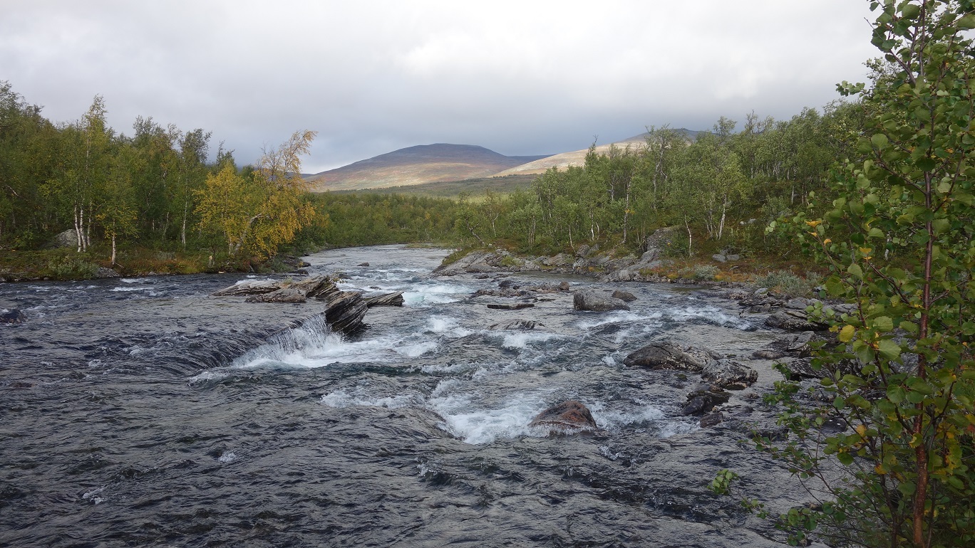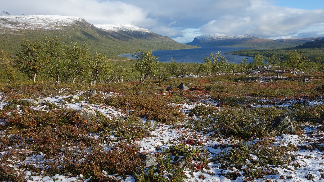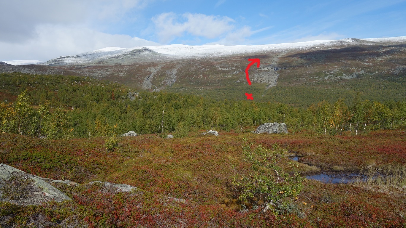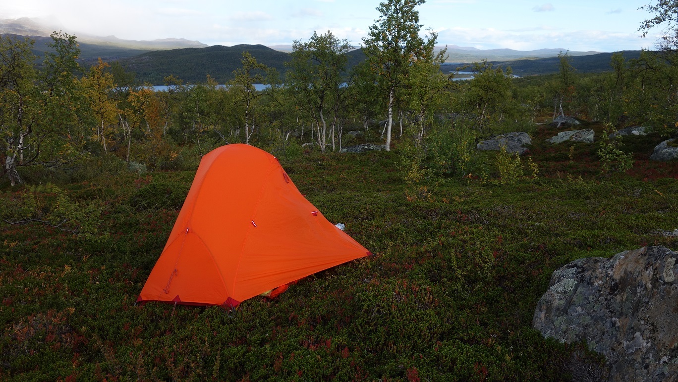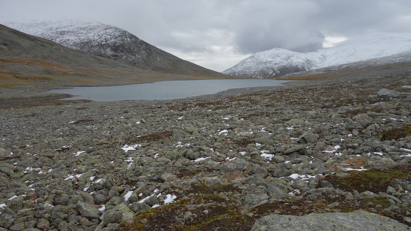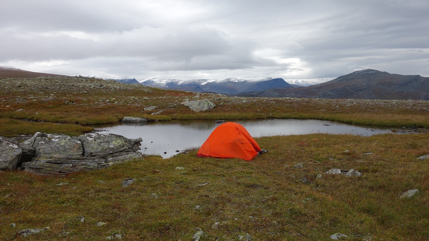 Es sollte ins Arjeplogsfjäll gehen, etwas westlich vom Kungsledenabschnitt Jäckvik - Kvikkjokk. Eine sehr abwechslungsreiche und durchaus alpine Gegend, die allerdings mit vielen feuchten Hindernissen gespickt ist ... genau das richtige Terrain, wenn man so ein Boot als Joker dabei hat. Ansonsten nur schwer auf wenigen Routen zu queren, weshalb sich hier nicht so viele Leute tummeln. Tatsächlich sollte ich 8 Tage lang niemanden treffen.... und die ersten, die ich dann traf, waren natürlich ODSler! (Bourne und seine Elisabeth)