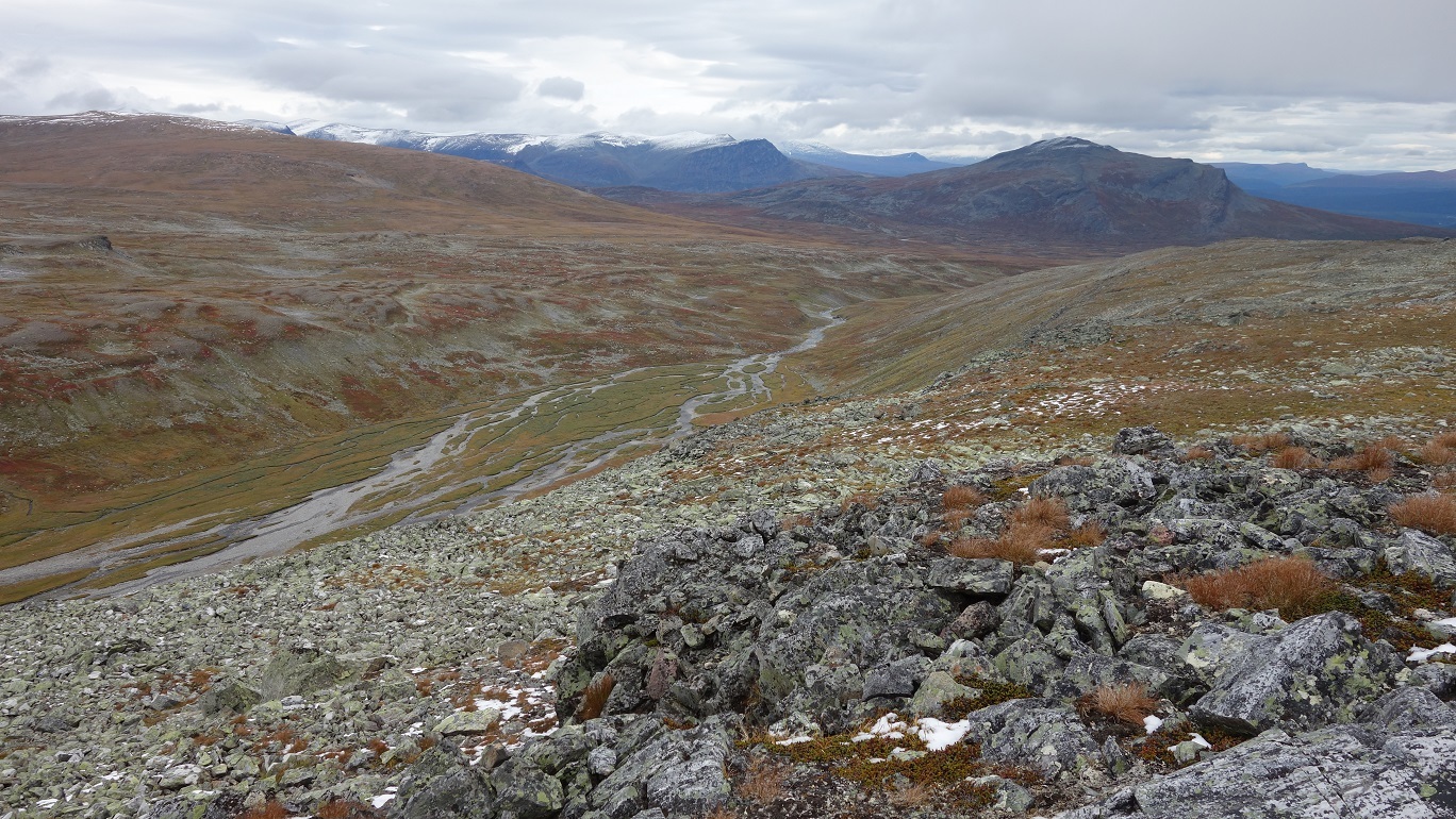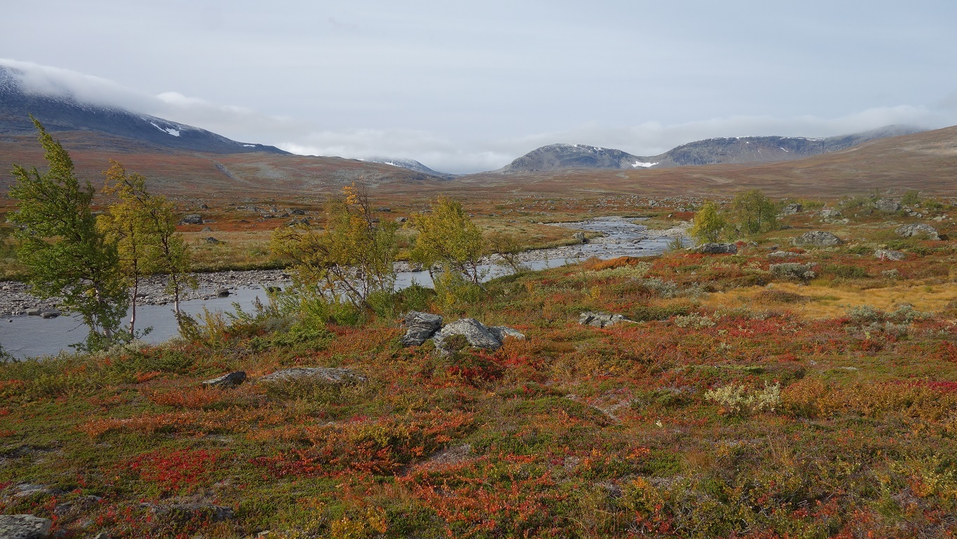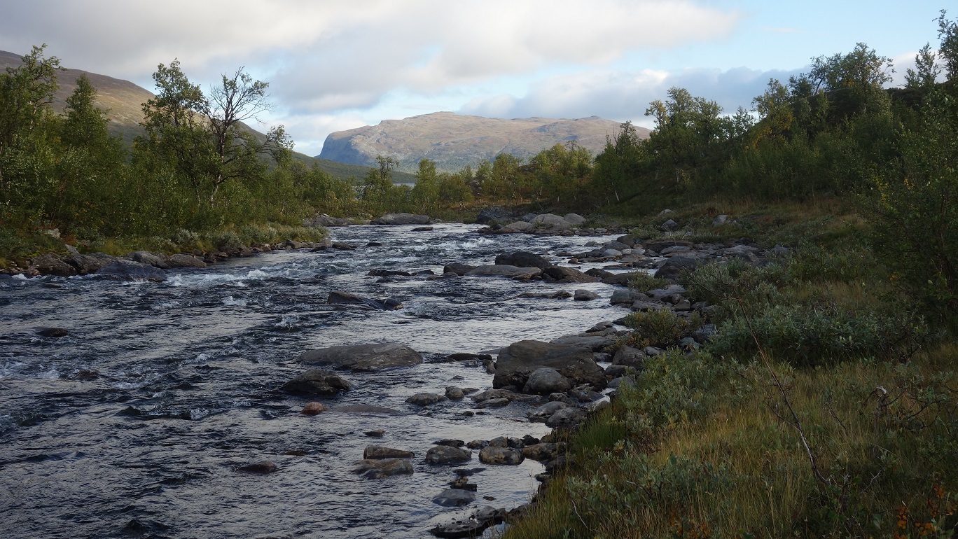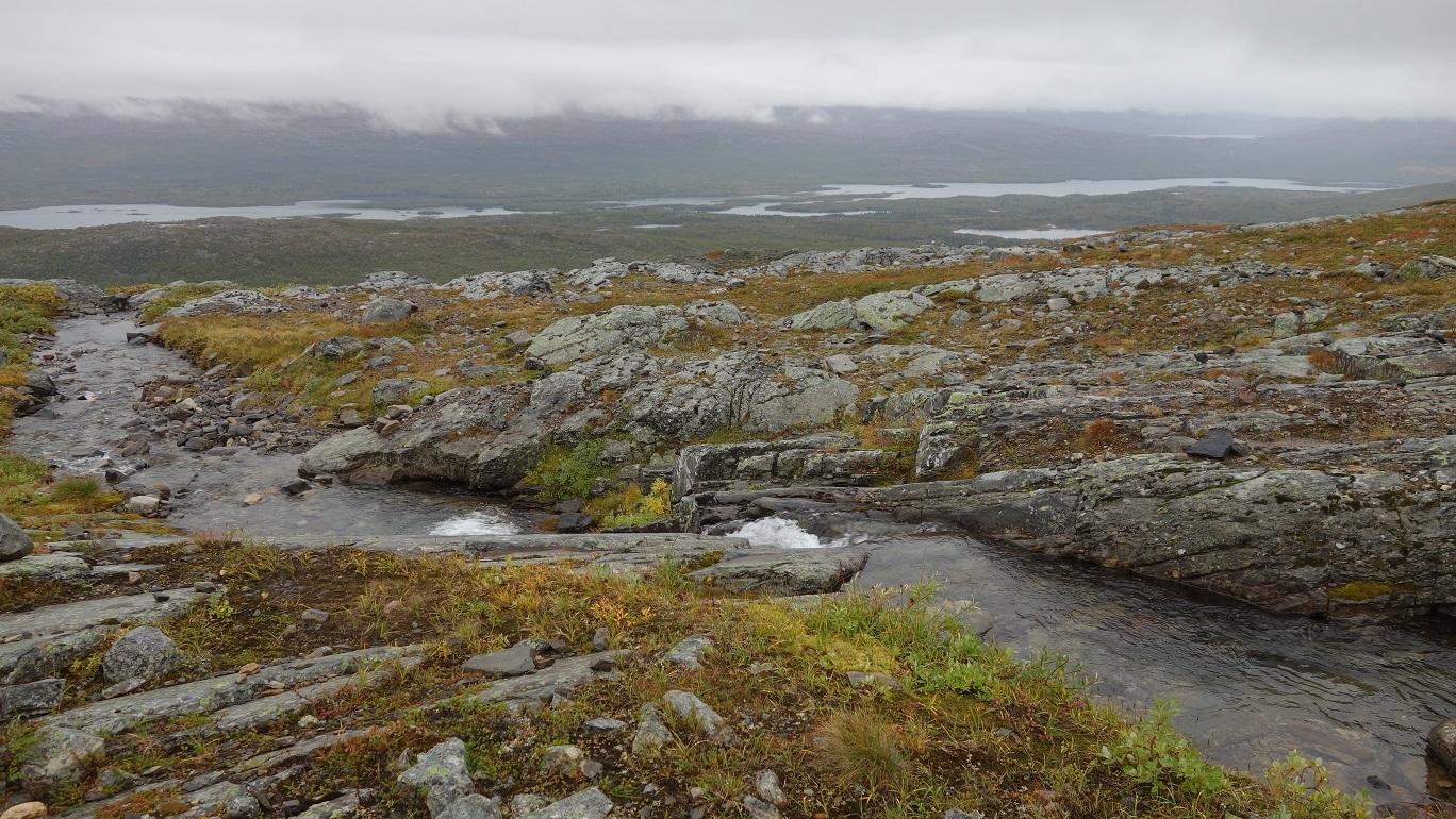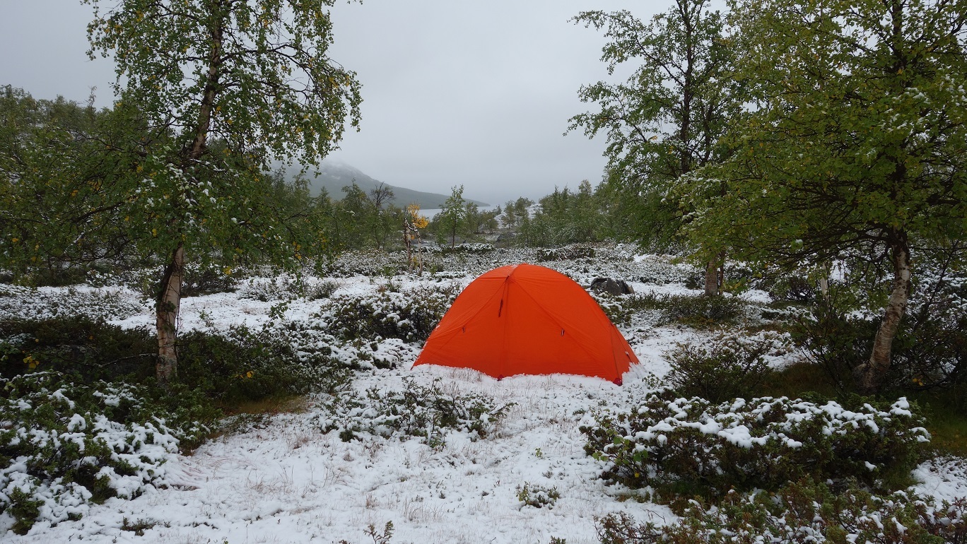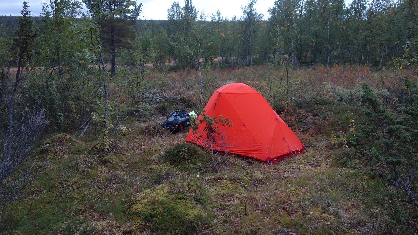 Es sollte ins Arjeplogsfjäll gehen, etwas westlich vom Kungsledenabschnitt Jäckvik - Kvikkjokk. Eine sehr abwechslungsreiche und durchaus alpine Gegend, die allerdings mit vielen feuchten Hindernissen gespickt ist ... genau das richtige Terrain, wenn man so ein Boot als Joker dabei hat. Ansonsten nur schwer auf wenigen Routen zu queren, weshalb sich hier nicht so viele Leute tummeln. Tatsächlich sollte ich 8 Tage lang niemanden treffen.... und die ersten, die ich dann traf, waren natürlich ODSler! (Bourne und seine Elisabeth)