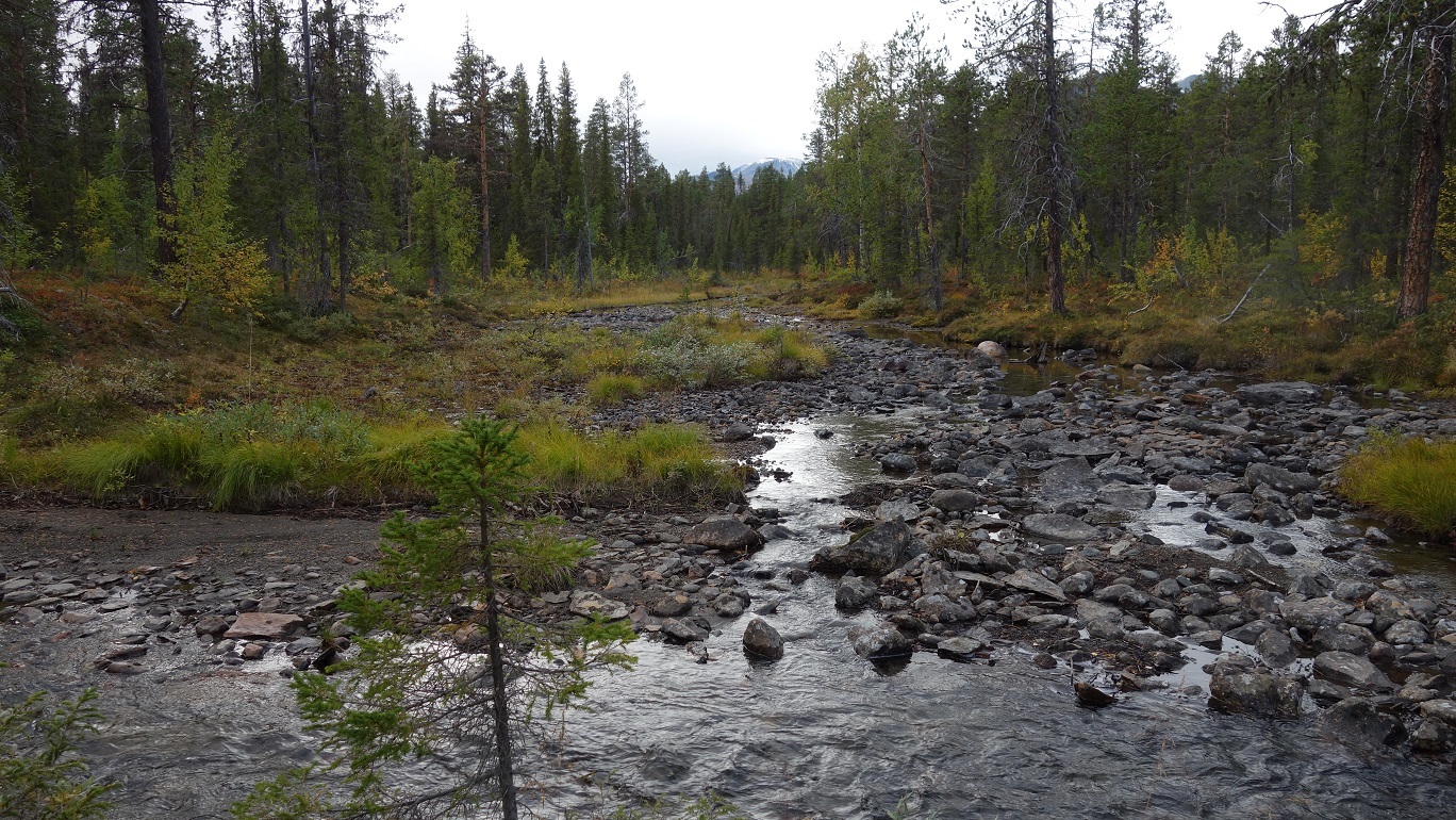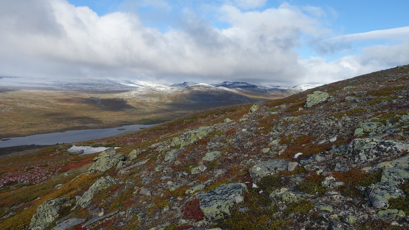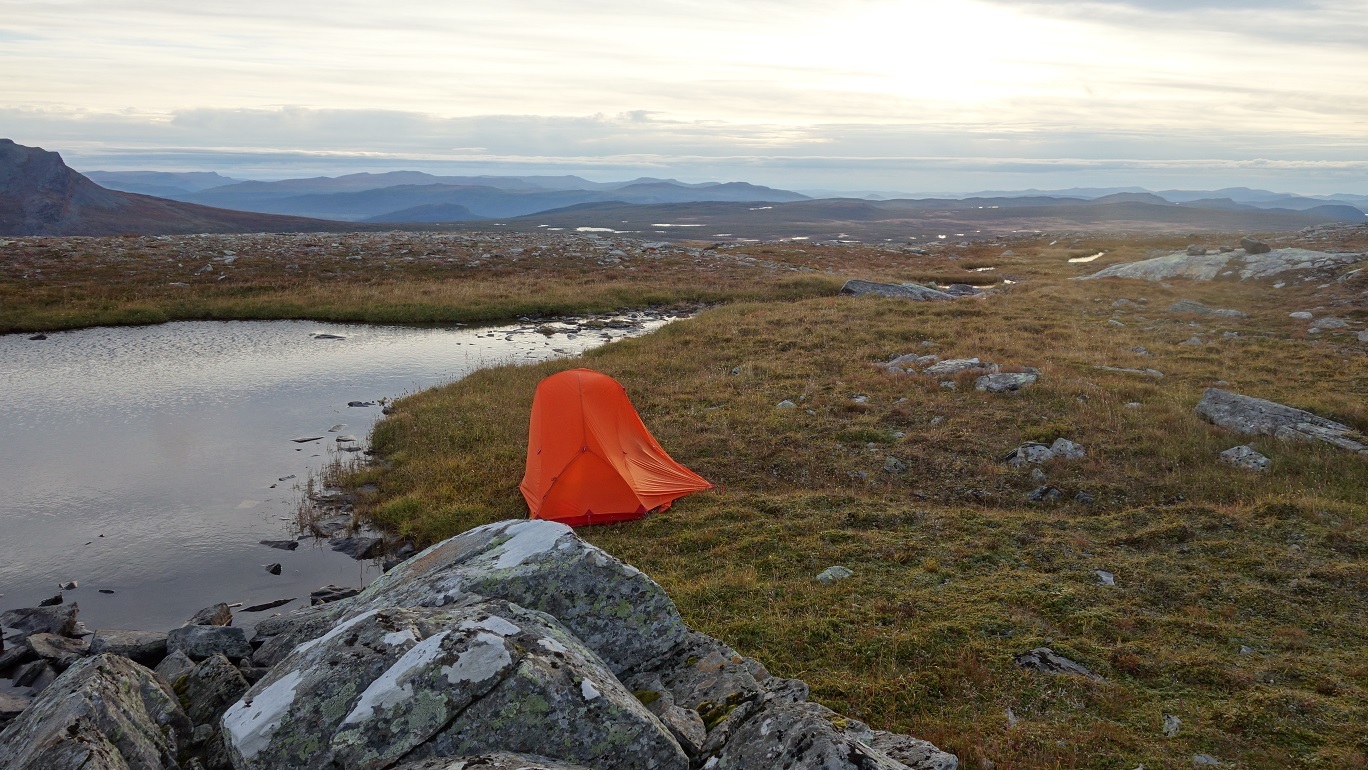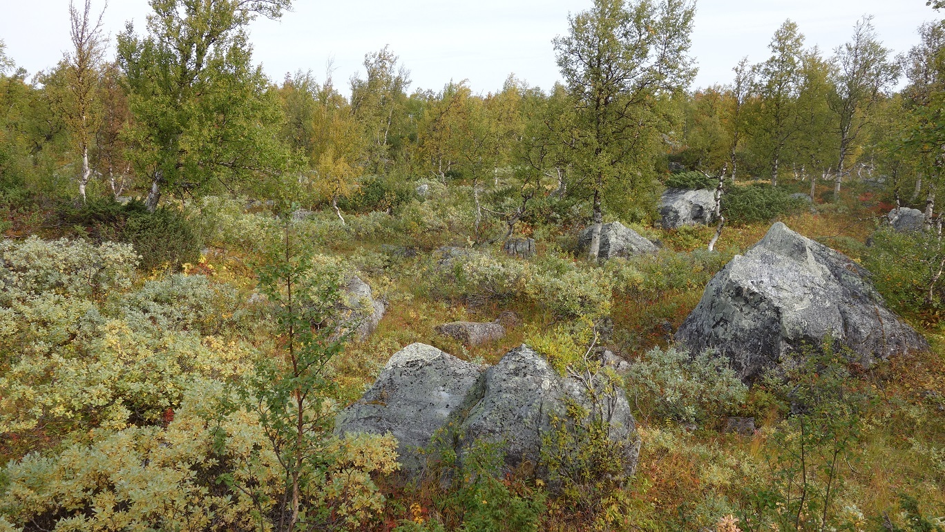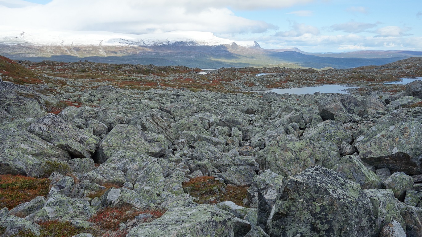 Es sollte ins Arjeplogsfjäll gehen, etwas westlich vom Kungsledenabschnitt Jäckvik - Kvikkjokk. Eine sehr abwechslungsreiche und durchaus alpine Gegend, die allerdings mit vielen feuchten Hindernissen gespickt ist ... genau das richtige Terrain, wenn man so ein Boot als Joker dabei hat. Ansonsten nur schwer auf wenigen Routen zu queren, weshalb sich hier nicht so viele Leute tummeln. Tatsächlich sollte ich 8 Tage lang niemanden treffen.... und die ersten, die ich dann traf, waren natürlich ODSler! (Bourne und seine Elisabeth)