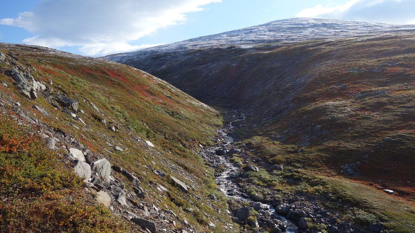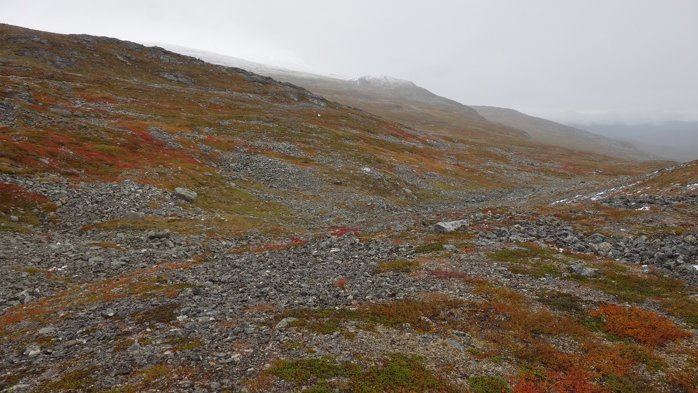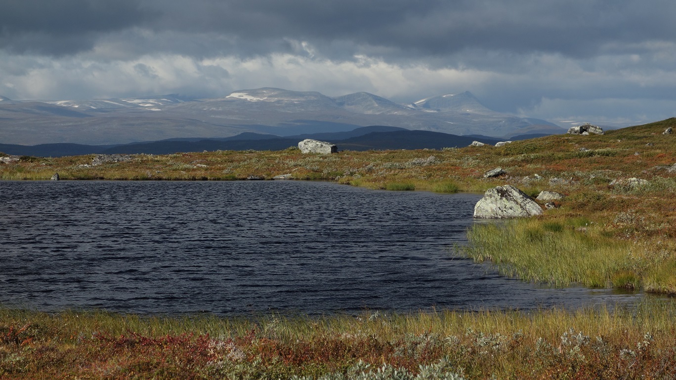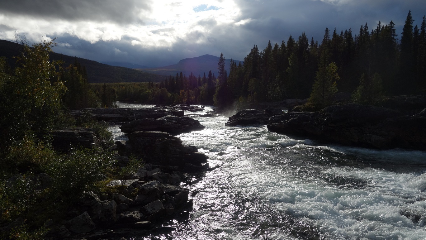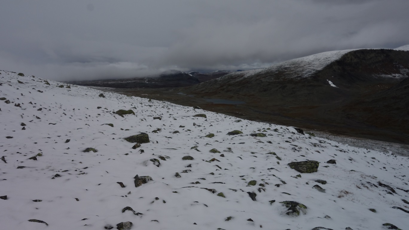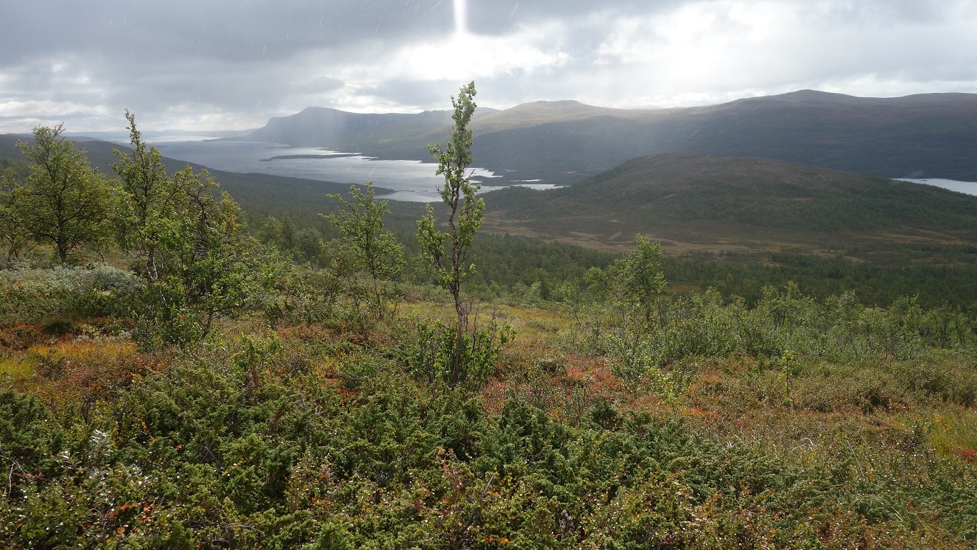 Es sollte ins Arjeplogsfjäll gehen, etwas westlich vom Kungsledenabschnitt Jäckvik - Kvikkjokk. Eine sehr abwechslungsreiche und durchaus alpine Gegend, die allerdings mit vielen feuchten Hindernissen gespickt ist ... genau das richtige Terrain, wenn man so ein Boot als Joker dabei hat. Ansonsten nur schwer auf wenigen Routen zu queren, weshalb sich hier nicht so viele Leute tummeln. Tatsächlich sollte ich 8 Tage lang niemanden treffen.... und die ersten, die ich dann traf, waren natürlich ODSler! (Bourne und seine Elisabeth)