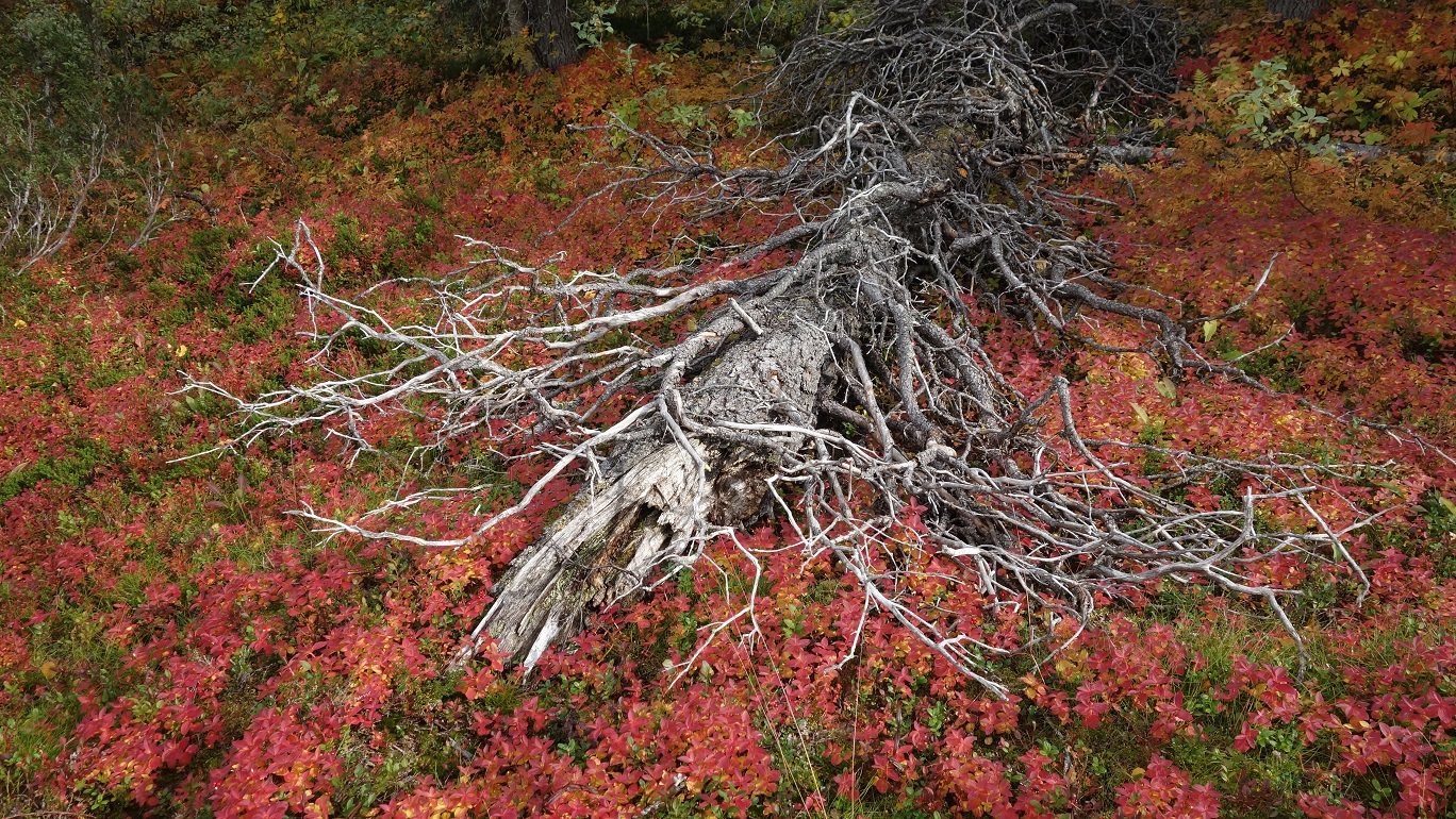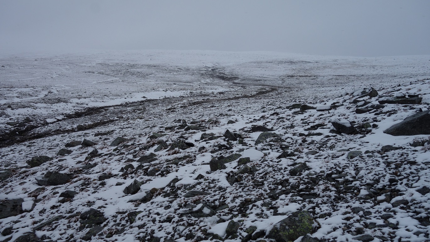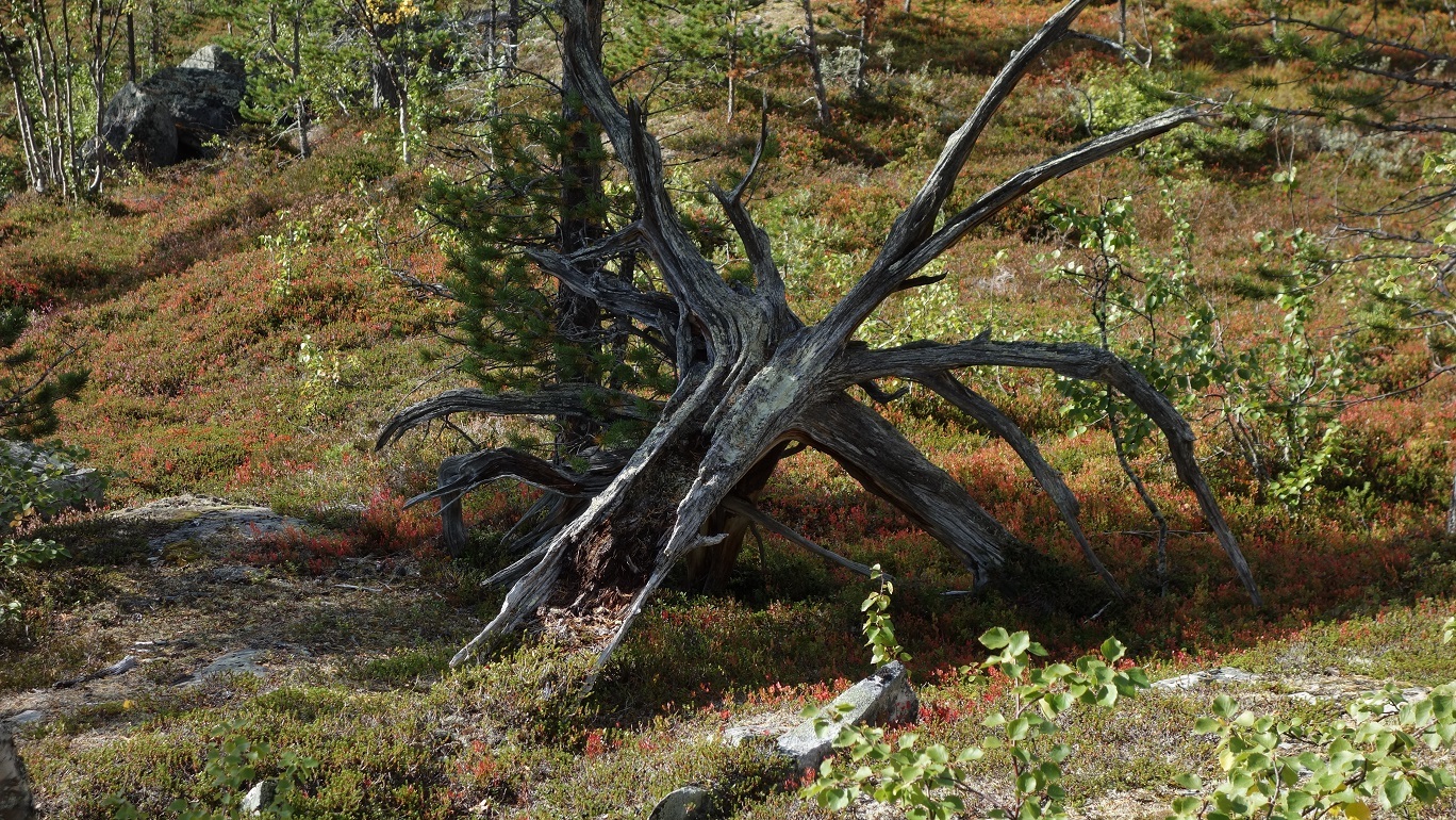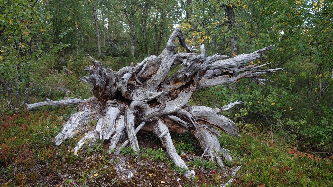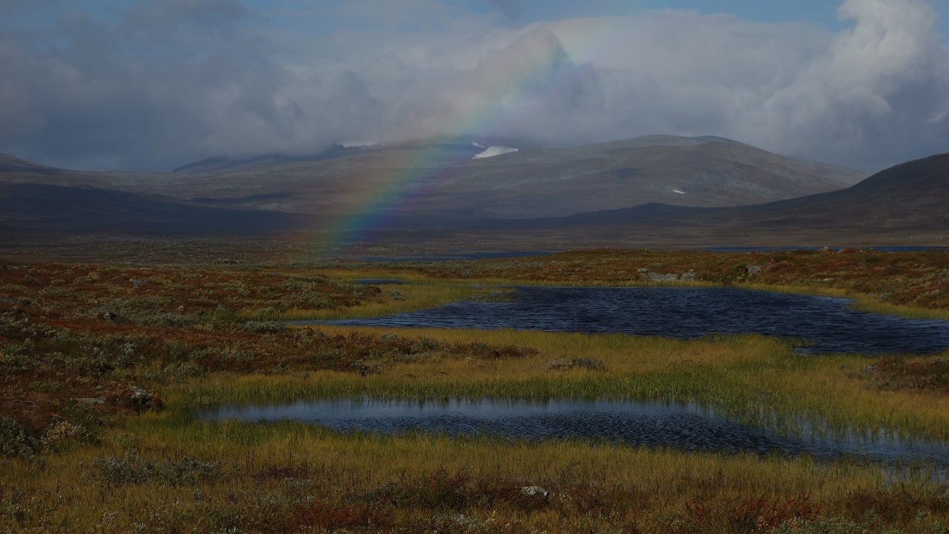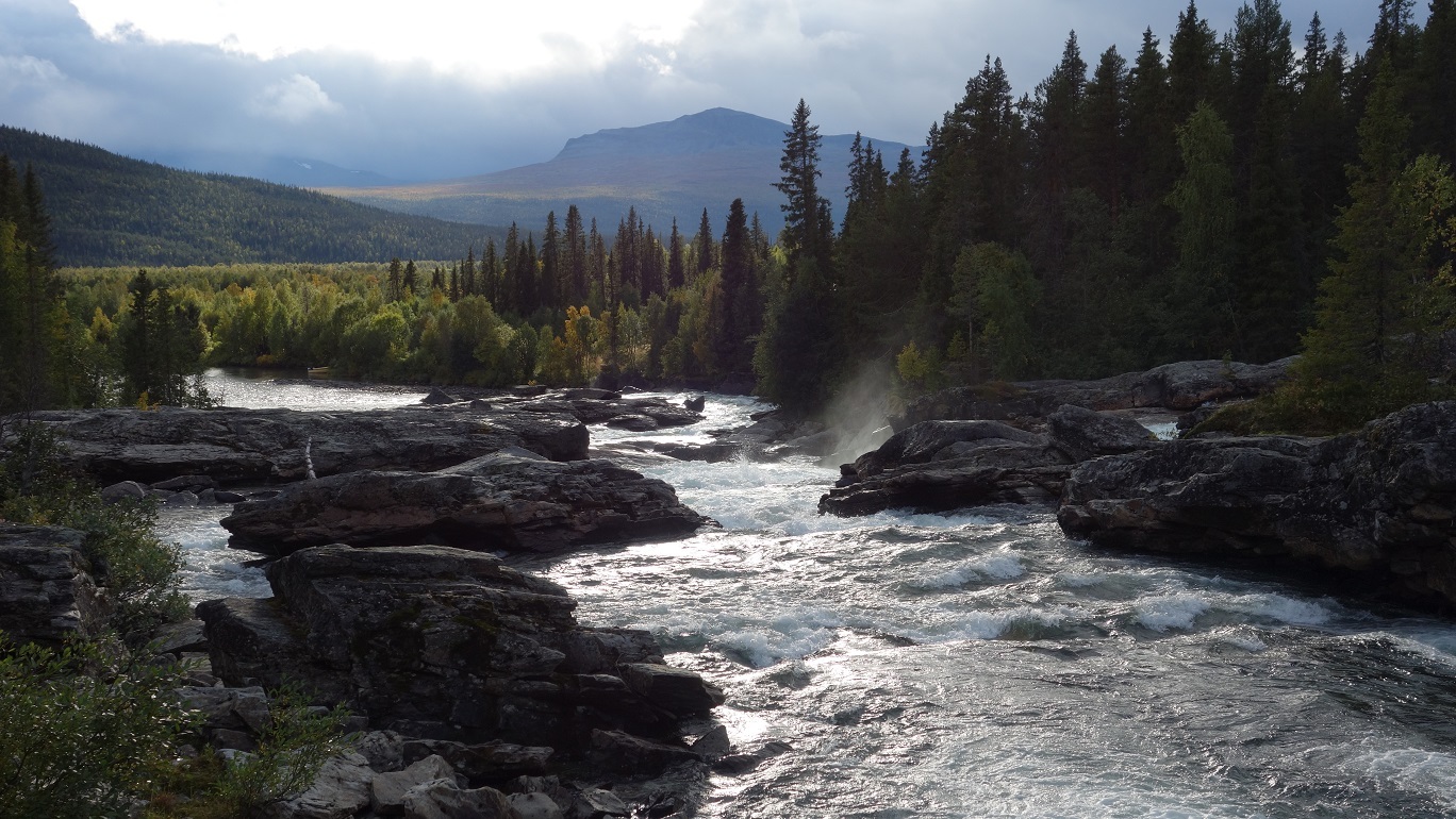 Es sollte ins Arjeplogsfjäll gehen, etwas westlich vom Kungsledenabschnitt Jäckvik - Kvikkjokk. Eine sehr abwechslungsreiche und durchaus alpine Gegend, die allerdings mit vielen feuchten Hindernissen gespickt ist ... genau das richtige Terrain, wenn man so ein Boot als Joker dabei hat. Ansonsten nur schwer auf wenigen Routen zu queren, weshalb sich hier nicht so viele Leute tummeln. Tatsächlich sollte ich 8 Tage lang niemanden treffen.... und die ersten, die ich dann traf, waren natürlich ODSler! (Bourne und seine Elisabeth)
