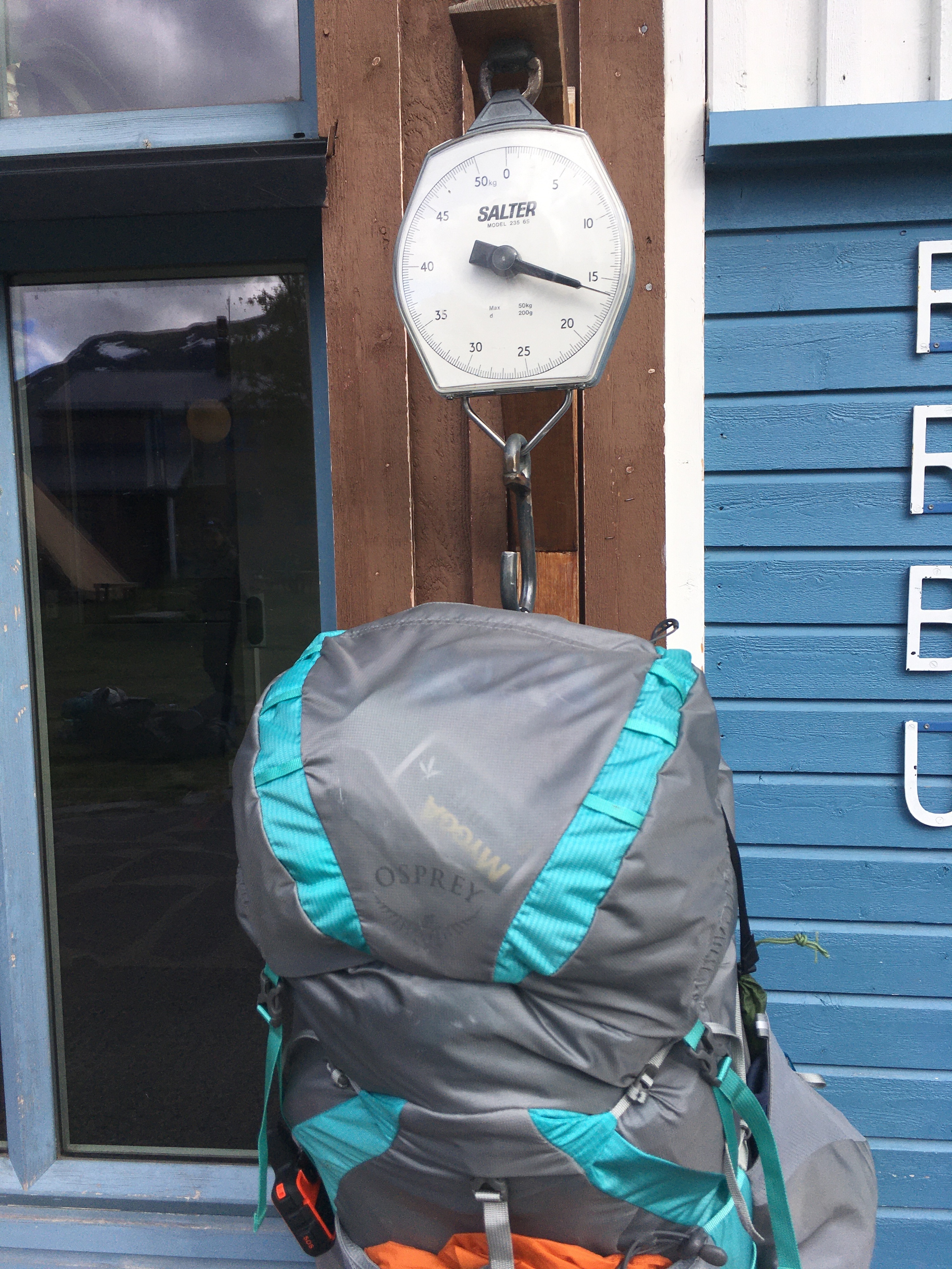 Der riesige Tumult an der Touriststation anschliessend, schreckte mich allerdings doch etwas ab. Eigentlich wollte ich hier noch in Ruhe einen Kaffee trinken und mich zuhause ordentlich verabschieden, bevor ich keinen Empfang mehr haben würde. Der Abschied fiel mir dann schwerer als erwartet. Und den Rucksack zu wiegen bevor ich loslief, half auch nicht, mir den Anfang leichter zu machen: Etwas über 16kg. WTF happend? Ich dachte, ich hätte mich exakt an meine Liste gehalten. Bei der kam ich auf ein Total von etwas über 13kg. Nun 3kg mehr? Offensichtlich sollte ich die nächsten Tage keinen Hunger leiden. Dafür aber bezweifeln, ob ich überhaupt jemals in Kvikkjokk ankommen würde.Der Schwere Rucksack Gleich geht es wirklich los.