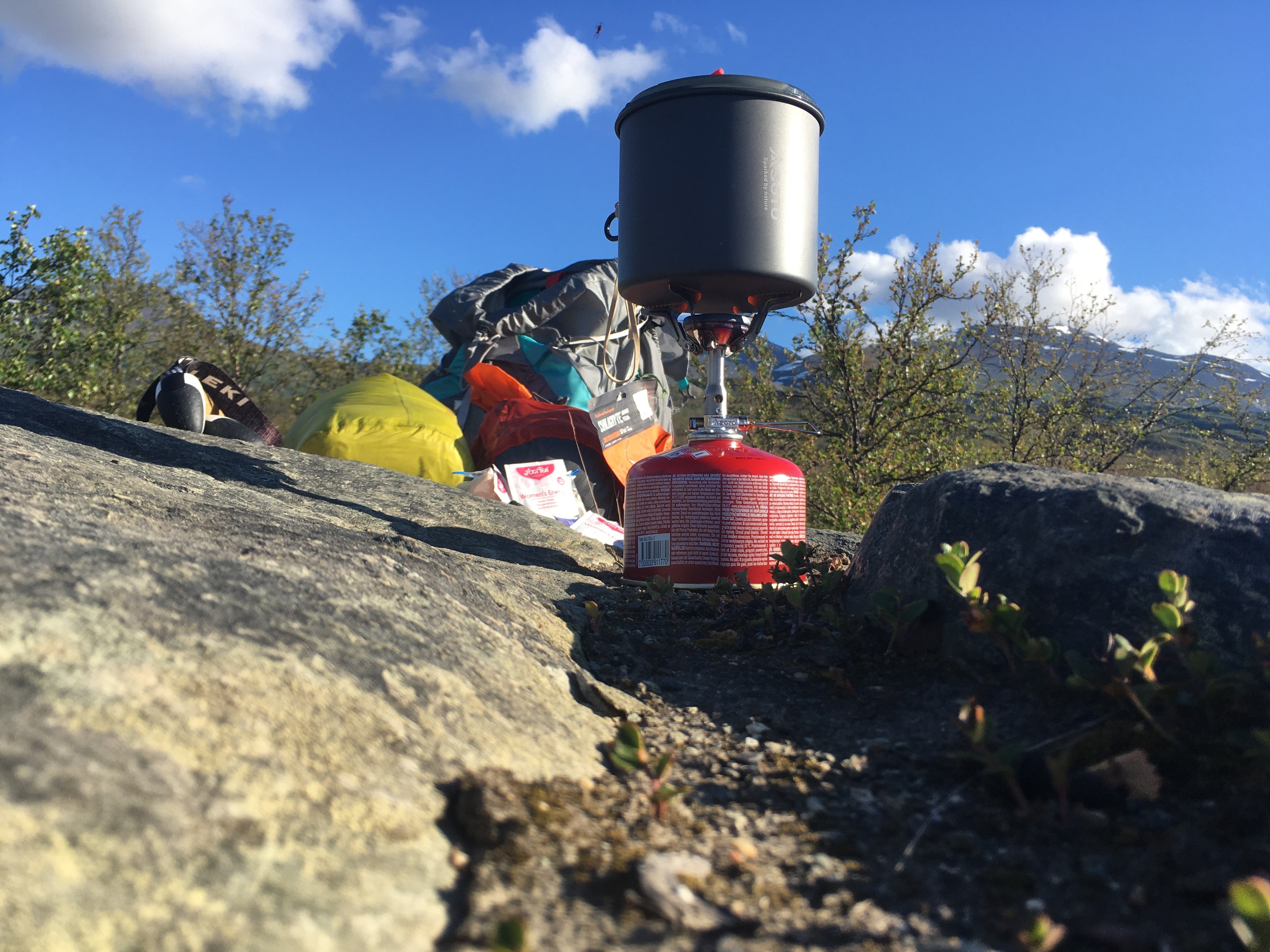 Die Landschaft hier gefiel mir übrigens auch sehr gut. Wie konnte ich nur glauben, nachdem ich in Vistas und Nallo war, dass alles danach langweilig werden würde? Zur Feier des Tages (welche Feier? Egal. Einfach so.) öffnete ich meine von Zuhause mitgeschleppte Dose Thunfisch und freute mich sehr darüber. (Vielleicht erklärt sich langsam, warum mein Rucksack zu schwer war. ). Das hatte sich also gelohnt. Weniger hat sich gelohnt: Blå Band Couscous… das hatte schon letztes Mal zum kotzen geschmeckt, ich erinnerte mich jetzt wieder. Ich schaffte es nur die halbe Packung zu essen. Es war – wie eigentlich immer – ziemlich windig, aber das war ich ja nun schon gewohnt. Ich beschloss am nächsten Tag auf den Tjirák zu steigen, um zu vermeiden, dass ich aus Versehen das frühe Boot über den Sitojaure nahm. Ich musste ja schliesslich Zeit schinden.