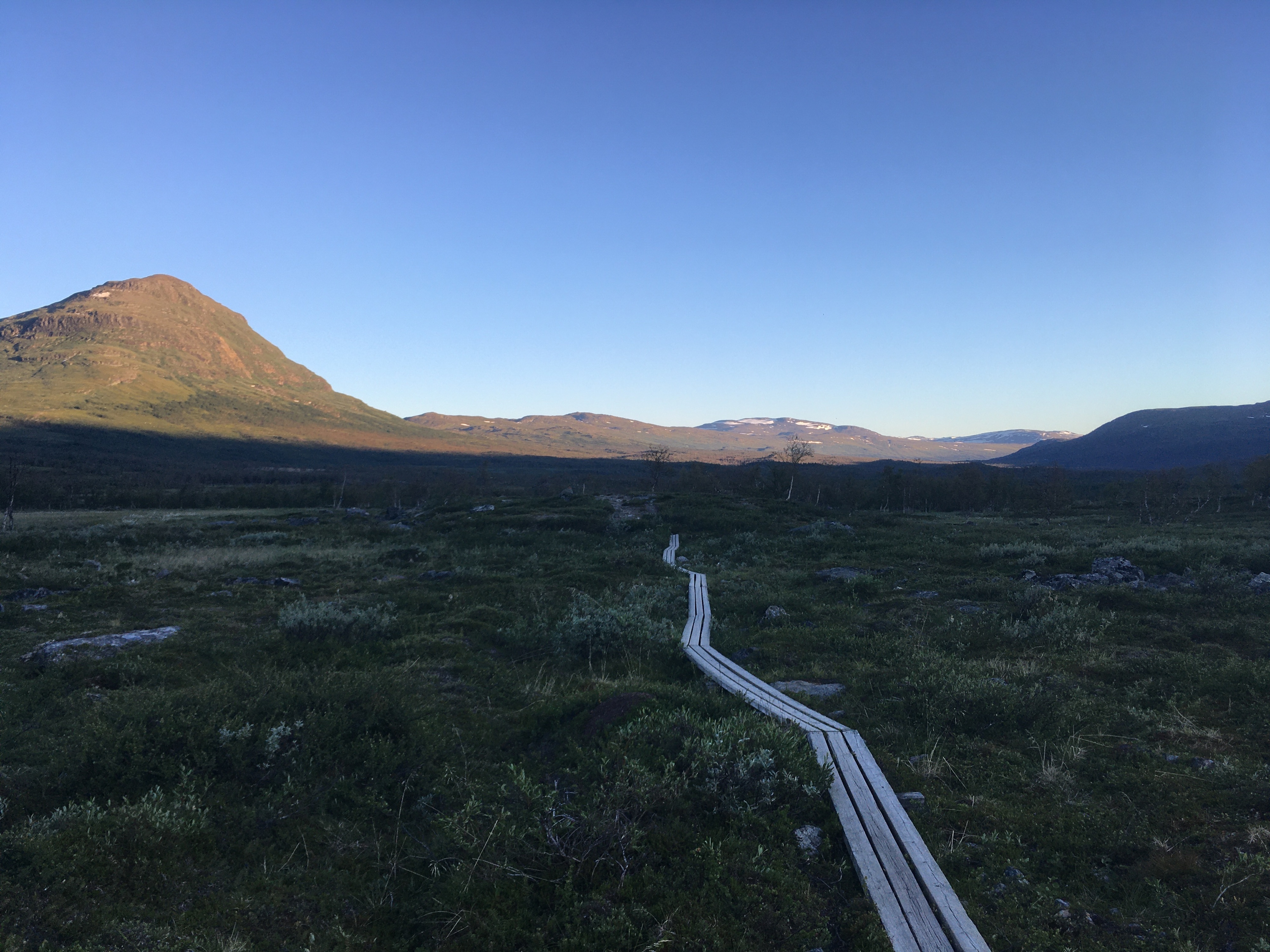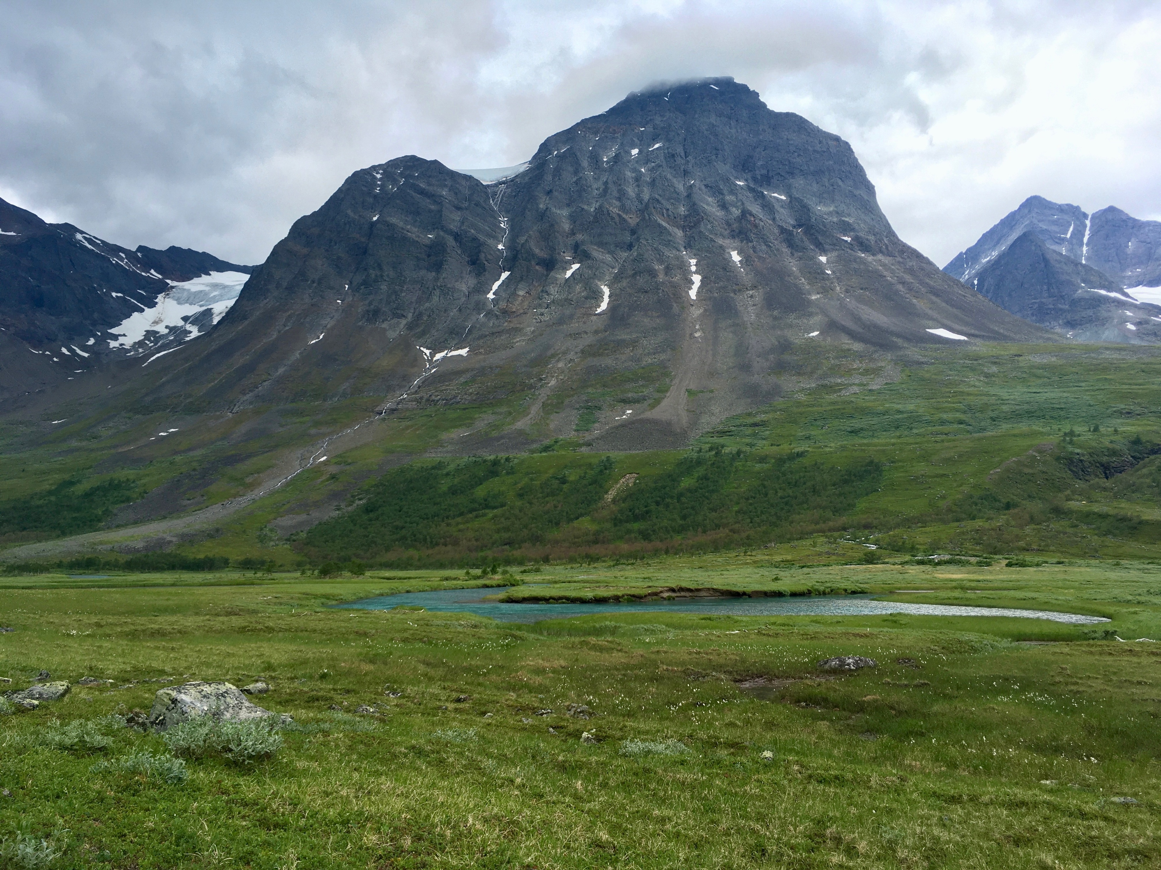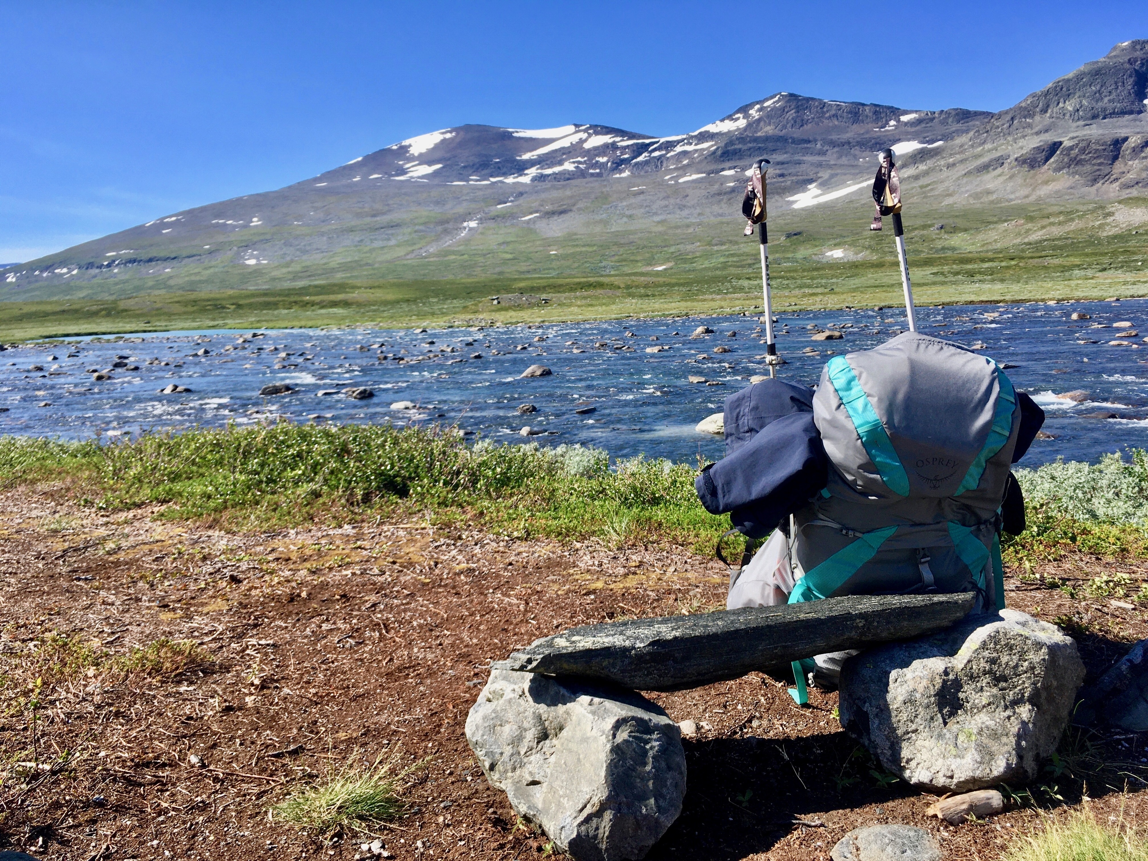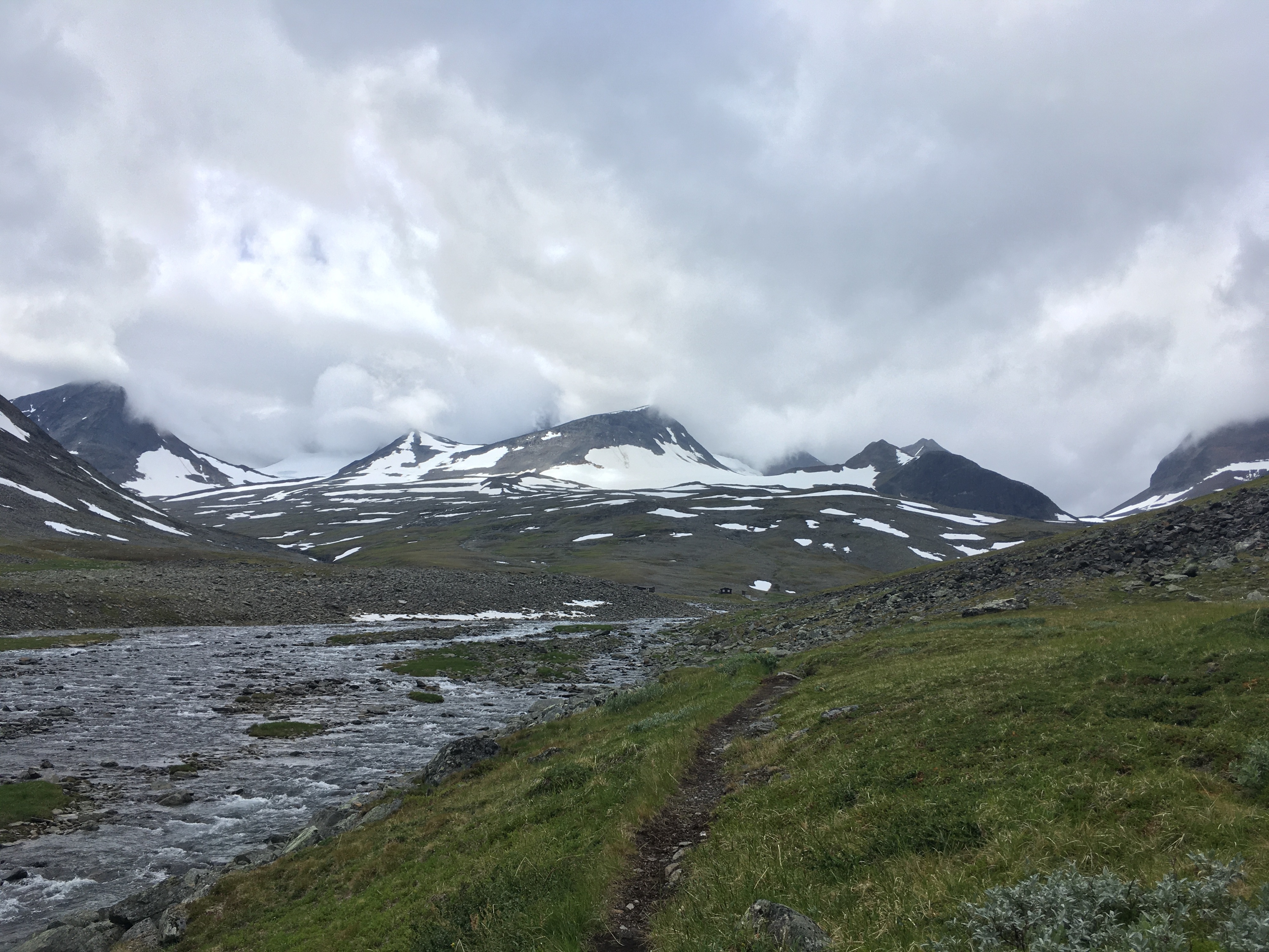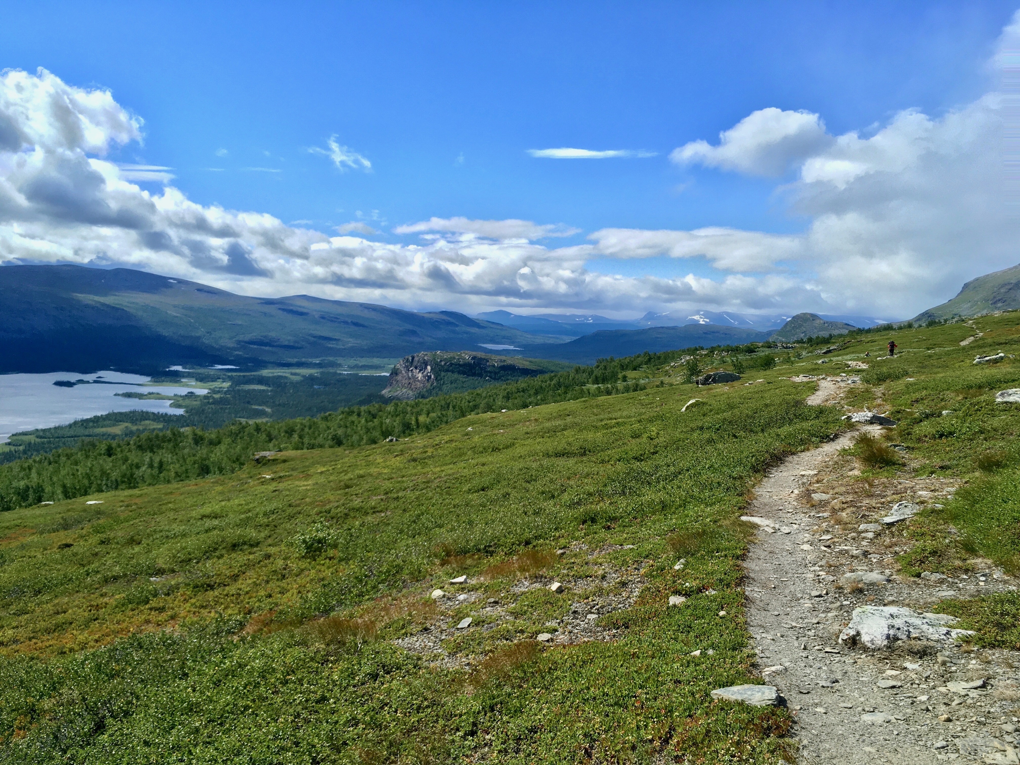 Nach anfänglich dramatischem Himmel wurde heute wieder ein sonnig heisser Tag auf dem Kungsleden. Pausen mussten gut mit den Menschen vor und hinter mir koordiniert werden. Nicht nachdem überholen einer Person gleich Pause machen. Nicht die Pause aufhören, wenn gerade eine Person näherkommt. Wo und wann aufs Klo? Logistik auf dem Kungsleden.