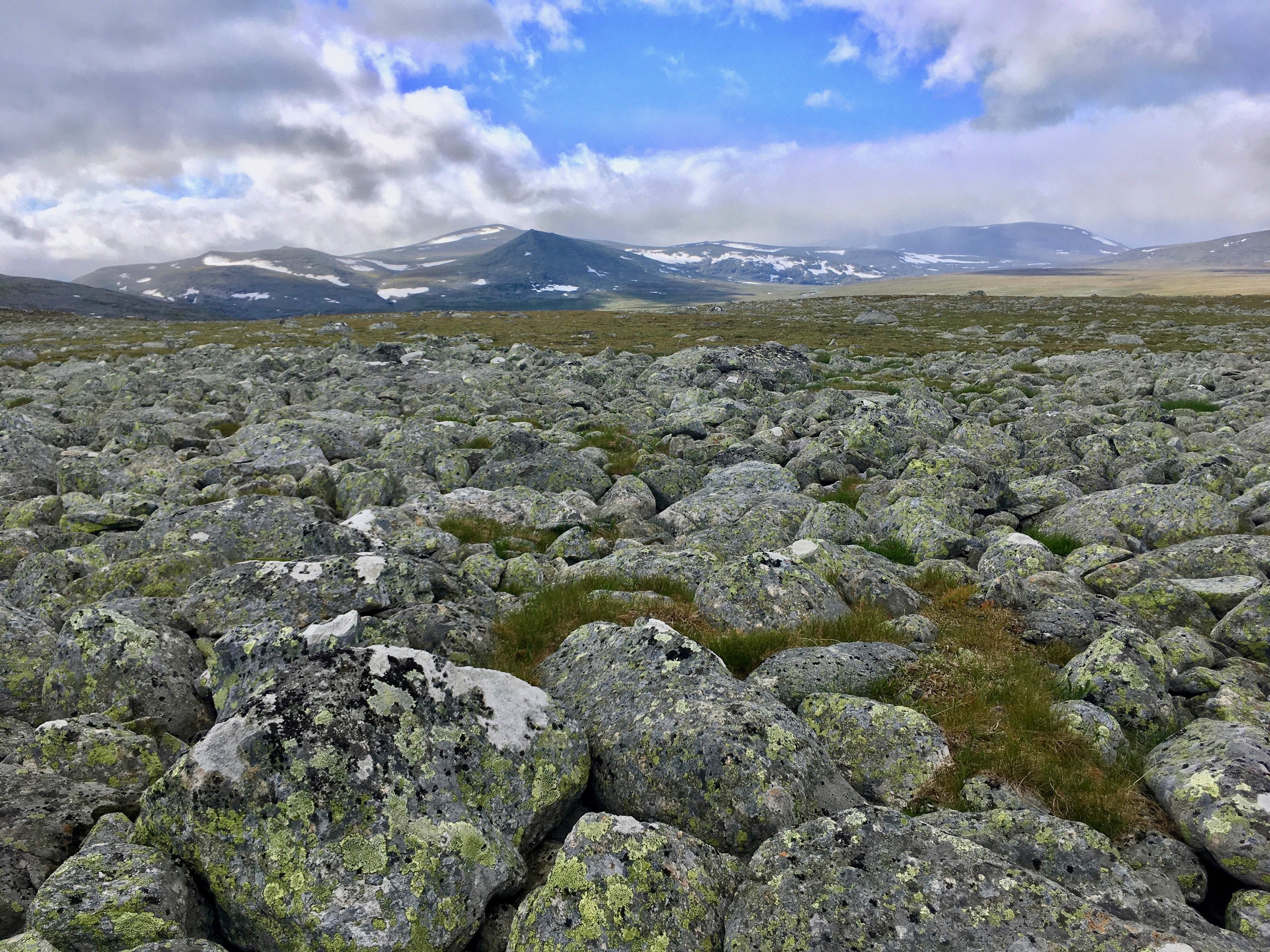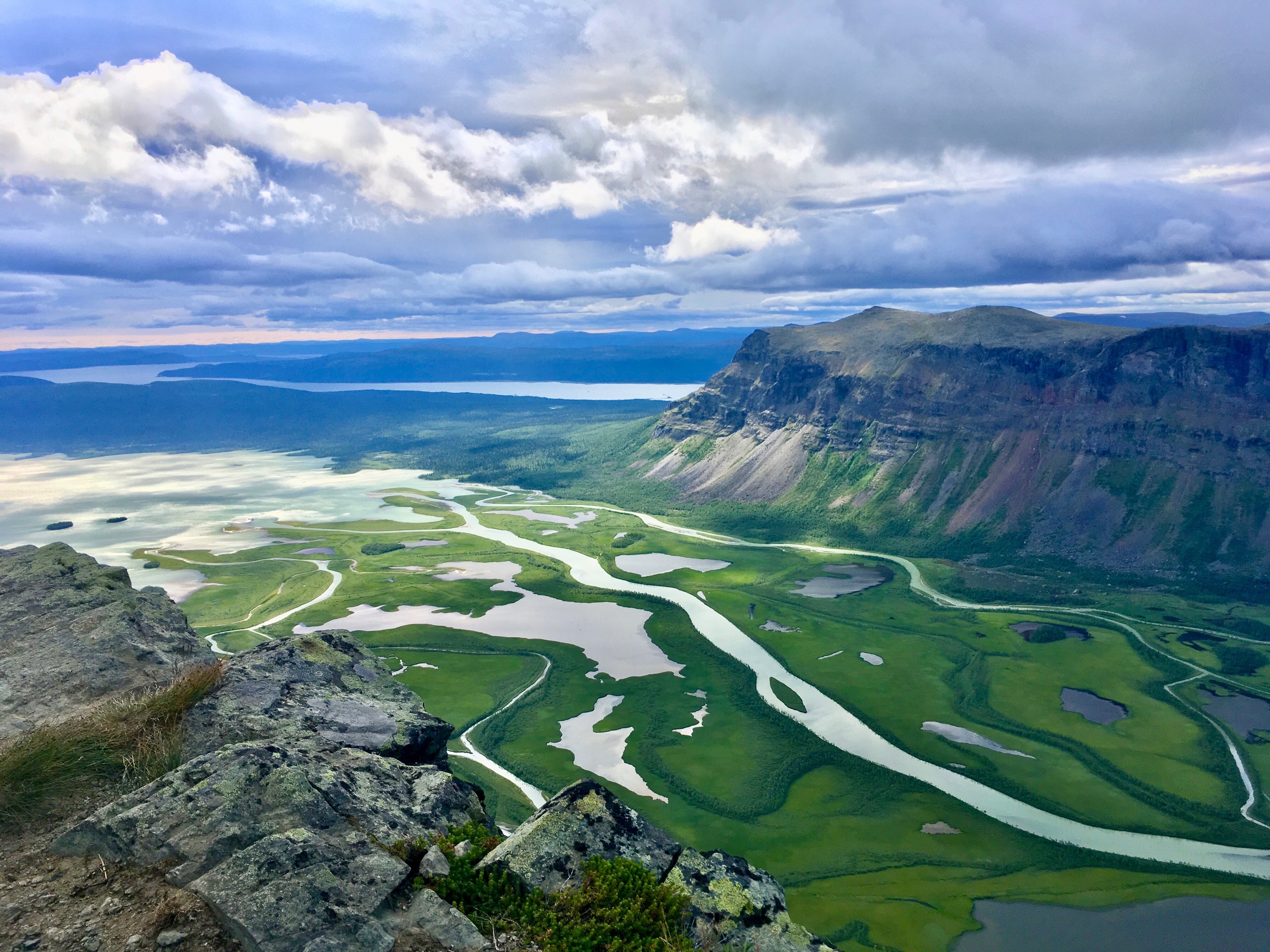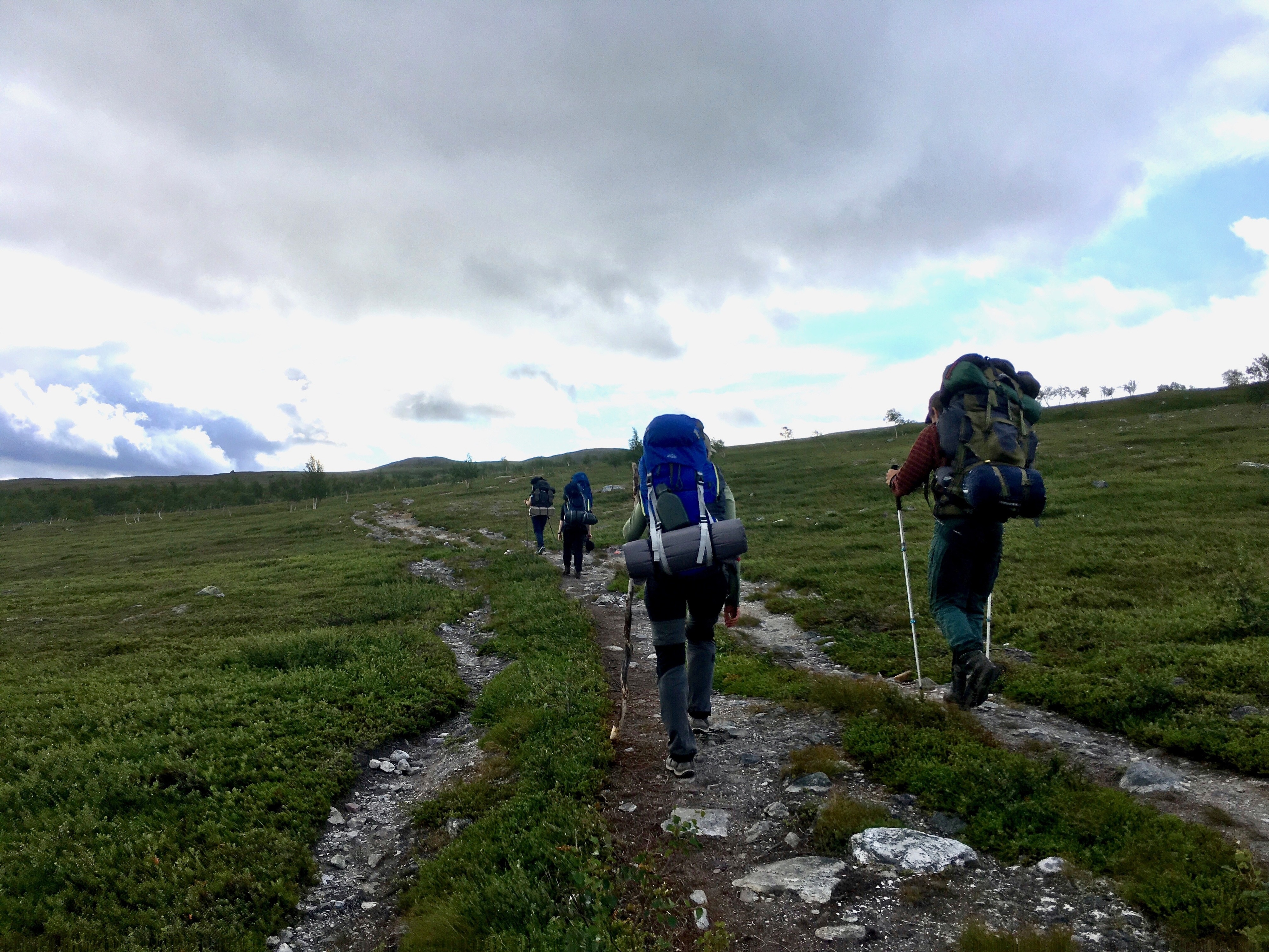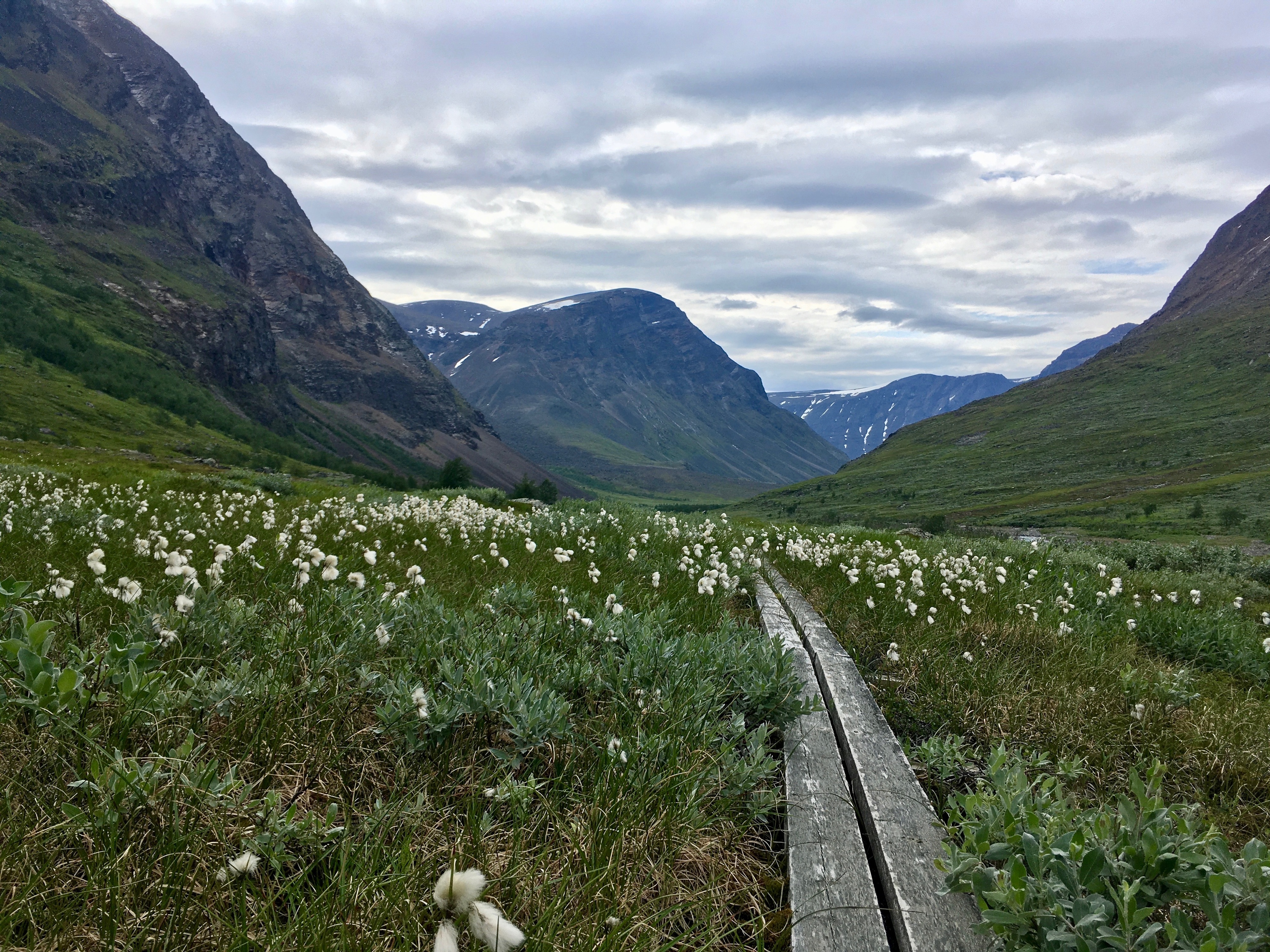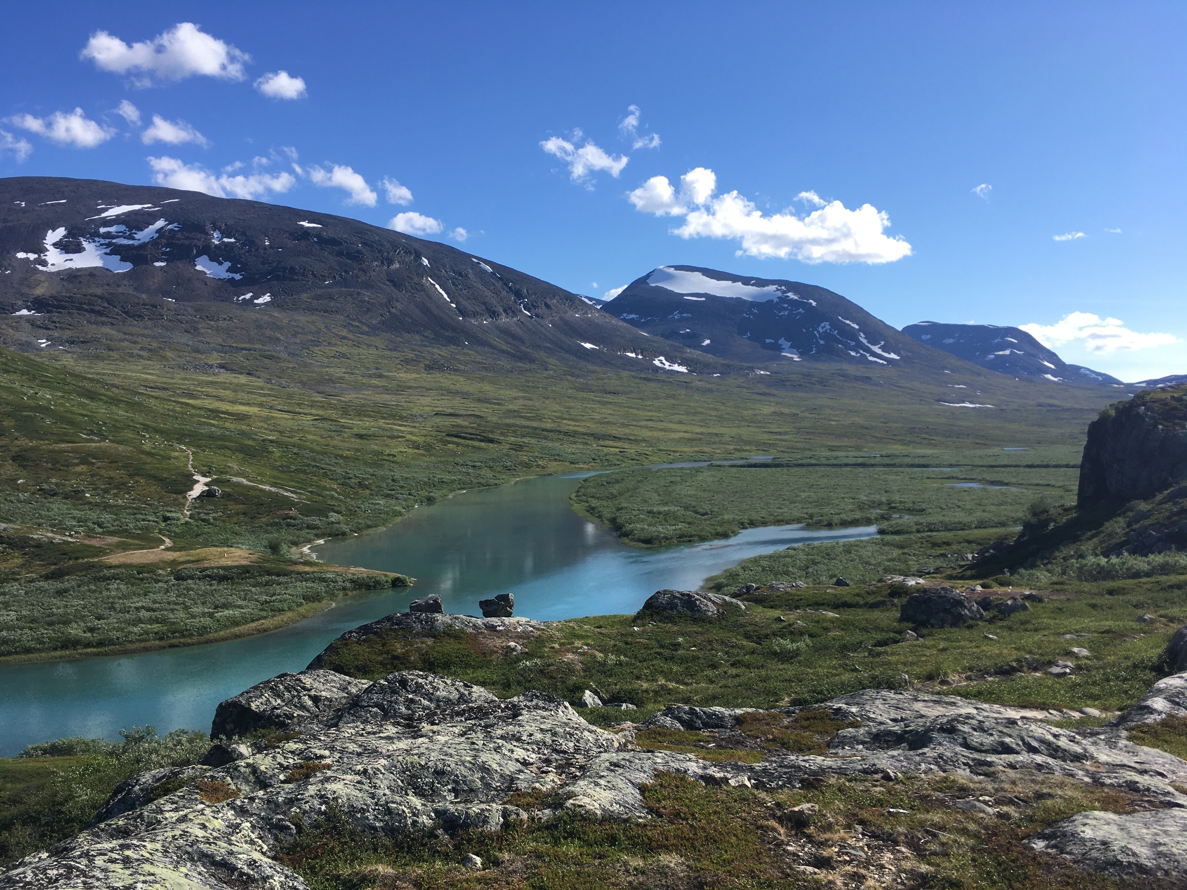 Nach anfänglich dramatischem Himmel wurde heute wieder ein sonnig heisser Tag auf dem Kungsleden. Pausen mussten gut mit den Menschen vor und hinter mir koordiniert werden. Nicht nachdem überholen einer Person gleich Pause machen. Nicht die Pause aufhören, wenn gerade eine Person näherkommt. Wo und wann aufs Klo? Logistik auf dem Kungsleden.