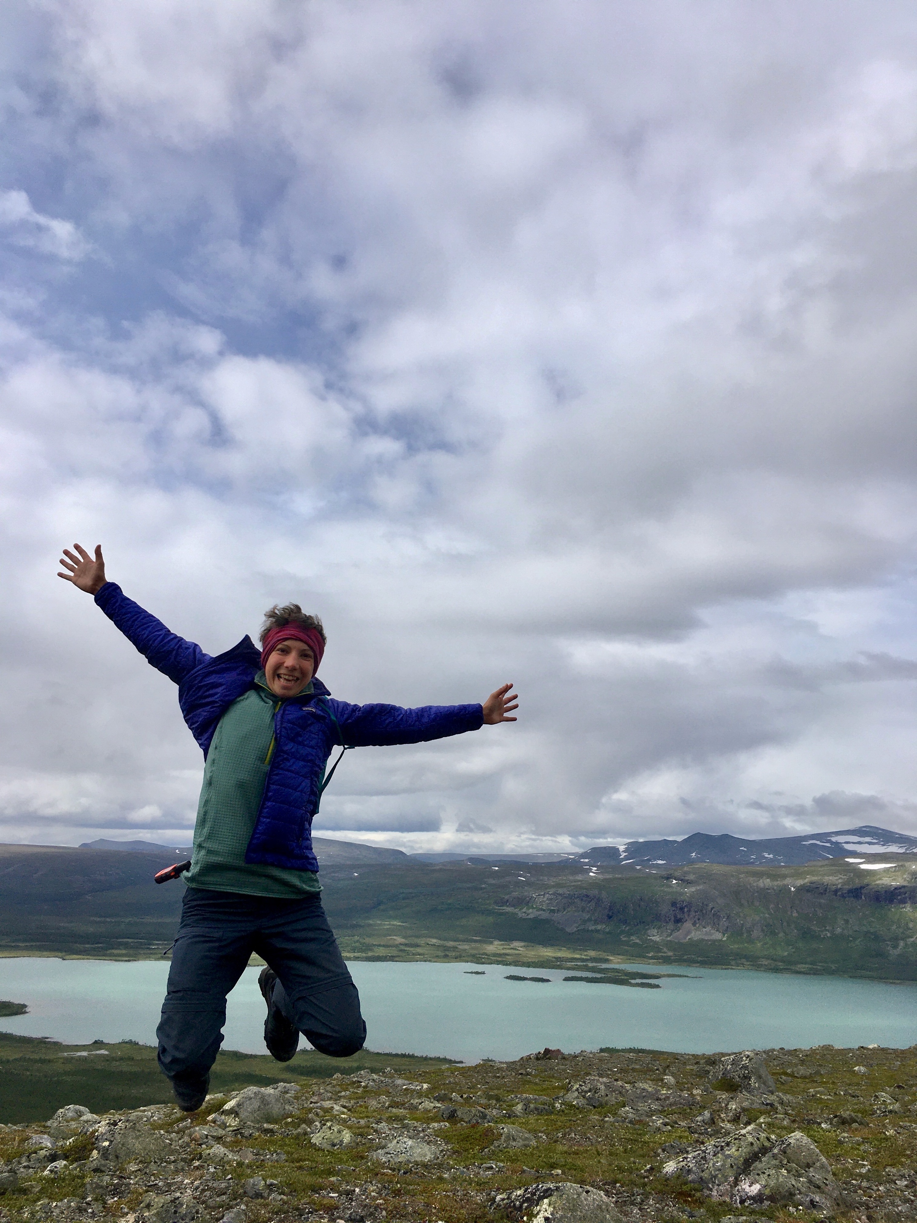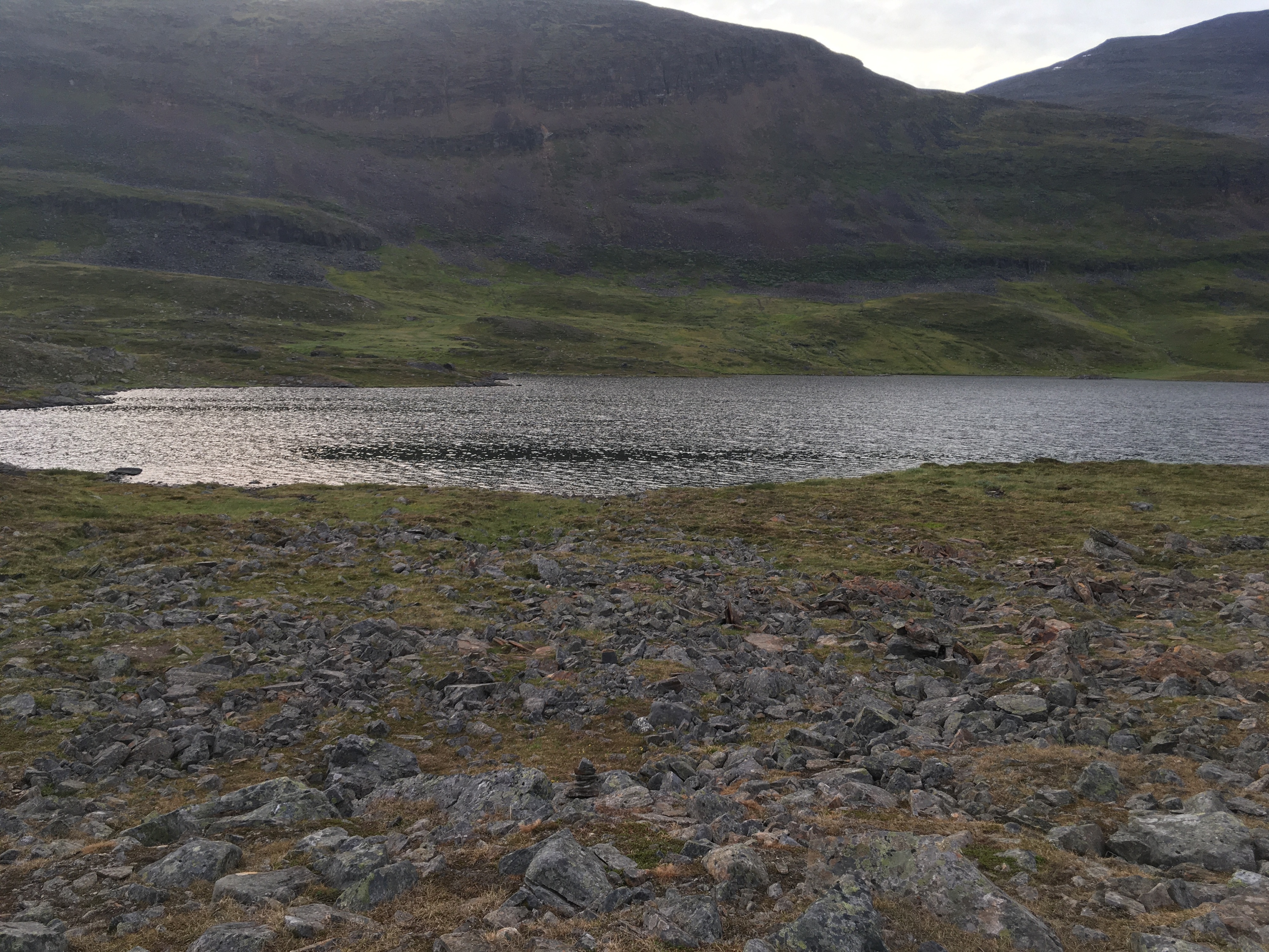 In der Gruppe laufen ist also schon etwas ganz anderes, es wird viel gelacht und geredet, tendenziell lief ich entweder zu langsam oder zu schnell, aber immer nicht in meinem Tempo. Es war sehr lustig und kurzweilig, aber ich merkte, dass ich weniger von der Landschaft mitbekam. So war ich gleichzeitig ein bisschen traurig und heil froh, als ich mich am Nachmittag von der Gruppe verabschiedete, um mir einen Zeltplatz in der Nähe der Bergseen zu suchen. (Immerhin hatte ich heute nachträglich noch ein paar spannende Details aus den Erklärungen des Bootsführers am Alesjaure übersetzt bekommen.)