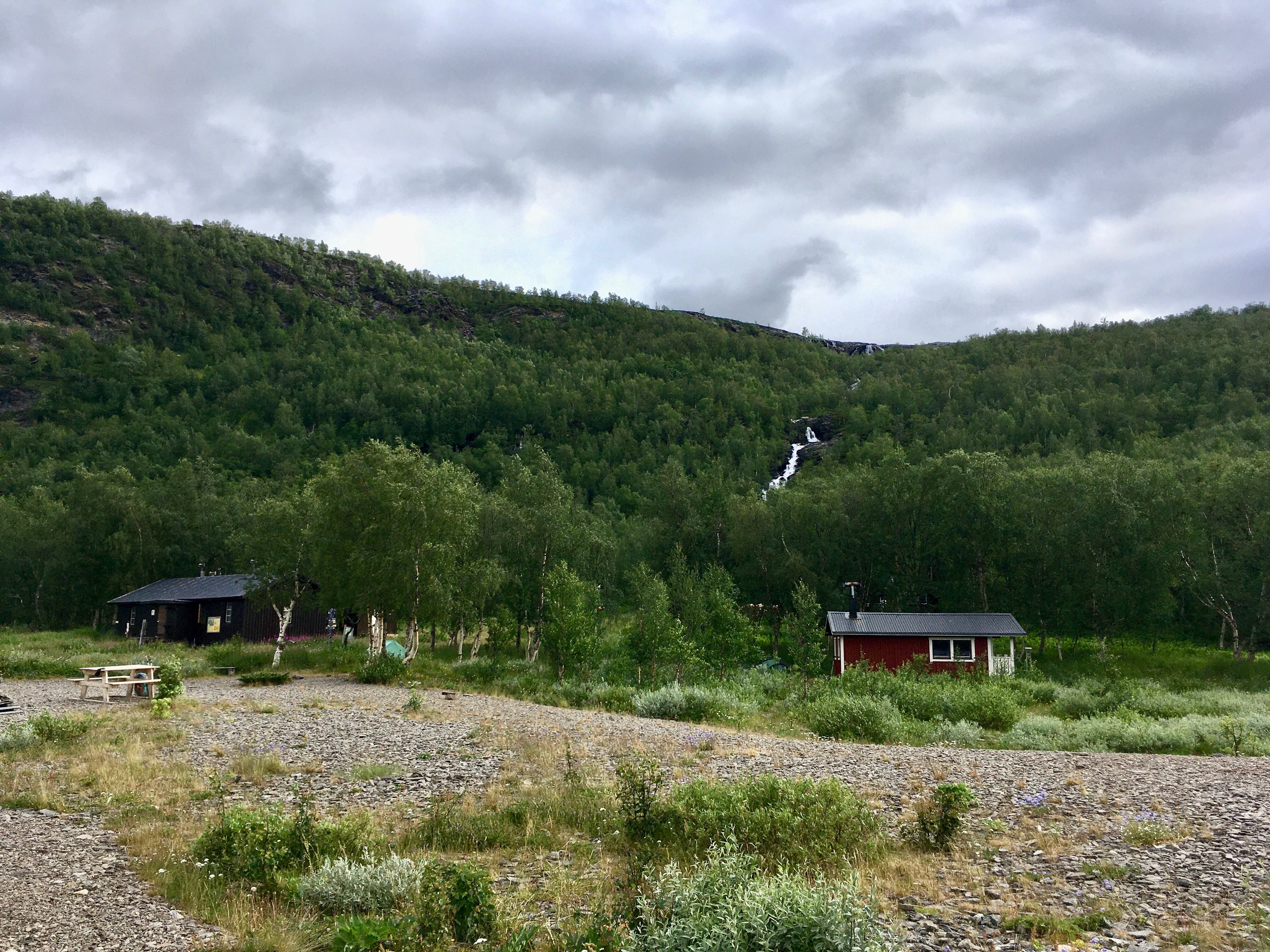 In Akste war so einiges los. Wie ich von – mal wieder! – einer sehr netten Hüttenwartin erfuhr, treffen hier verschiedene Wege aufeinander. Viel spannender war allerdings das Gespräch über die Pfanzen, die hier in Hülle und Fülle wachsen. Und obwohl ich auf dem Weg nach Akste immerwieder hörte wie schrecklich die Mücken dort sein sollten, fand ich es dort gar nicht so schlimm. Einzig in der kleinen Freiluft-Dusche war das Verhältnis von Wasser zu Mücken ungefähr 1:1. (Theoretisch kann man dort – wie mir die Hüttenwartin stolz erklärte – auch Wasser erwärmen und von einem Eimer in den Duschkopf umleiten. Aber gemütlich duschen wäre, ja wegen der Mücken sowieso nicht gegangen.) Achach, einmal mehr bedauerte ich aber, dass alle Saunen wegen COVID geschlossen waren.