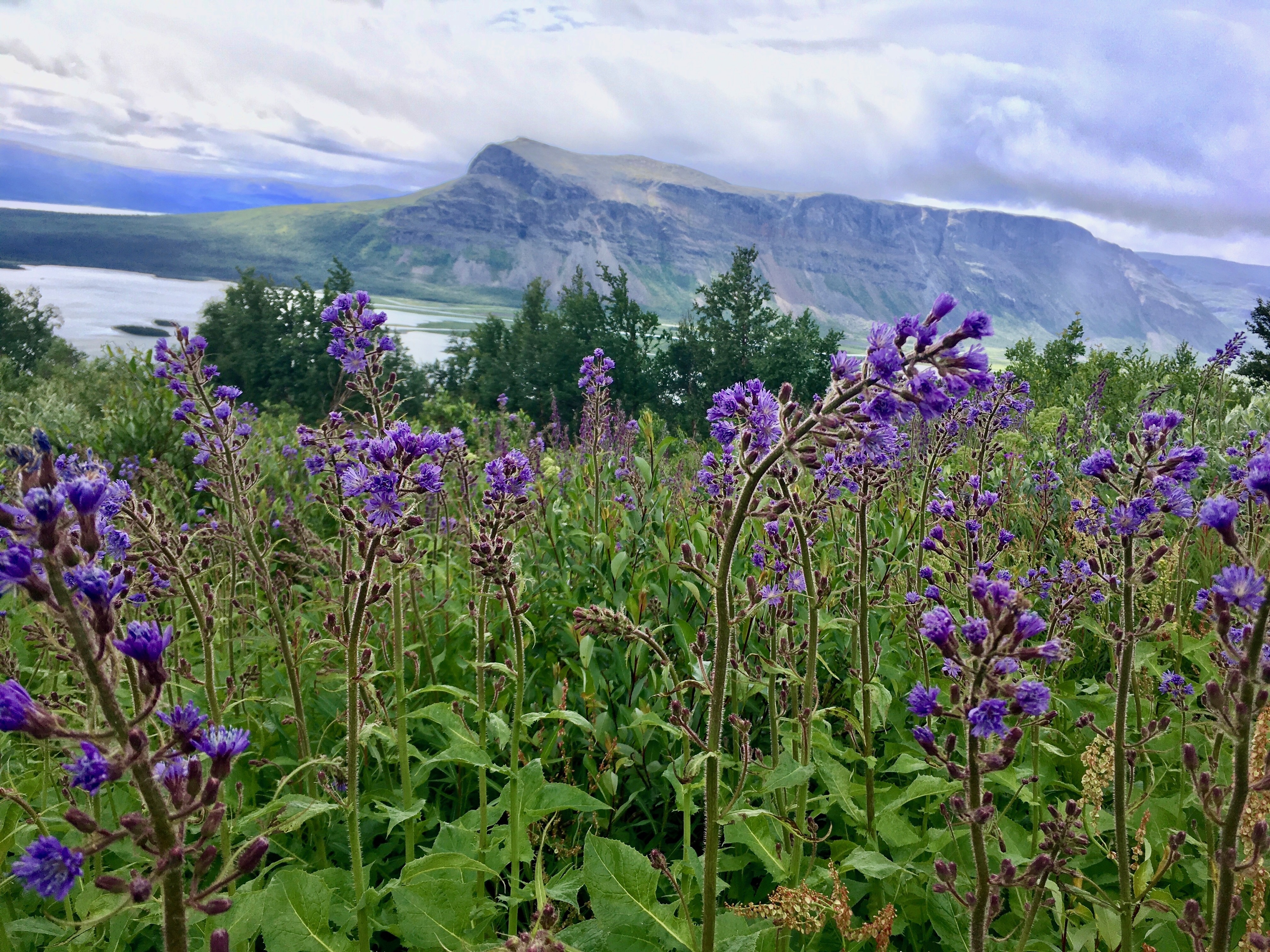 Der Weg vom Skierffe nach Aktse… ich war also froh, dass ich den nicht hin und zurück gehen musste. Er glich stellenweise eher Matschfestspielen als einem begehbaren Pfad. Dafür begann am Wegesrand eine sehr üppige und schöne Vegetation. Viele verschiedene Pflanzen und Blumen, die ich bisher eher weniger oder wenn dann höchstens vereinzelt gesehen hatte. Das letzte Stück zur Hütte führte dann durch einen ziemlich steilen Wald. Und ich war noch froher, dass ich nicht nach Aktse und dann wieder zurück zum Skierffe laufen musste, wie das einige tun. (Auch wenn ich immer noch der Meinung bin, dass es sich absolut lohnt, aber wer das Zelt dabeihat, kann es sich wesentlich einfacher machen. Auch kurz vor dem letzten Aufstieg auf den Skierffe habe ich einige Zelte stehen sehen. Auf dem kleinen Plateau auf ca 1050 Metern. Nur so als Tipp. Ich kann aber leider nichts darüber sagen, wie schief es dort ist.)