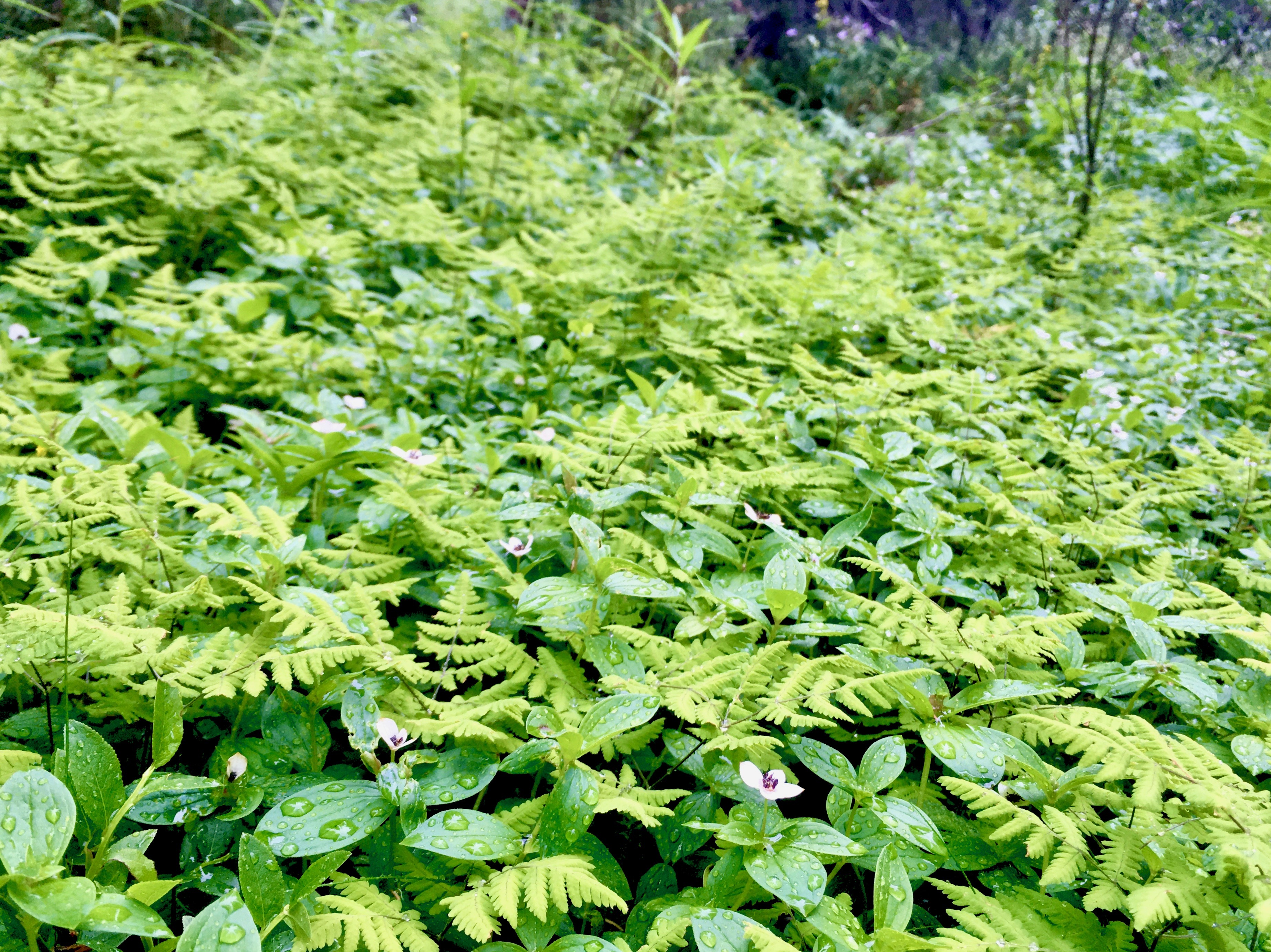 Der Weg heute führte durch sehr schöne alte Wälder, die aussehen als würden hinter jedem Stein, Trolle oder Rumpelwichte wohnen. Es regnete oder mückte abwechselnd. Ich sah Moltebeeren und Fliegenpilze und mal wieder unglaublich grünen Farn.