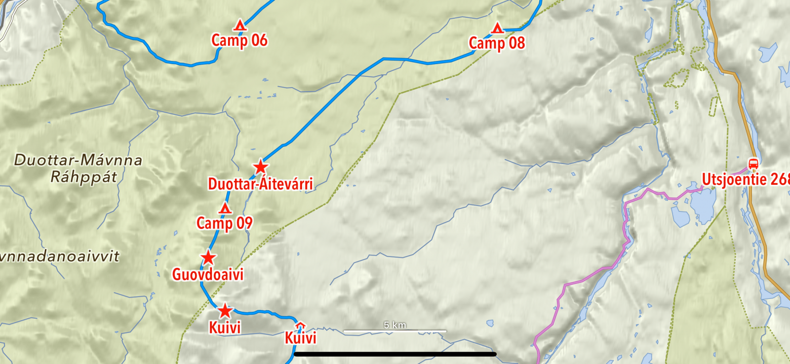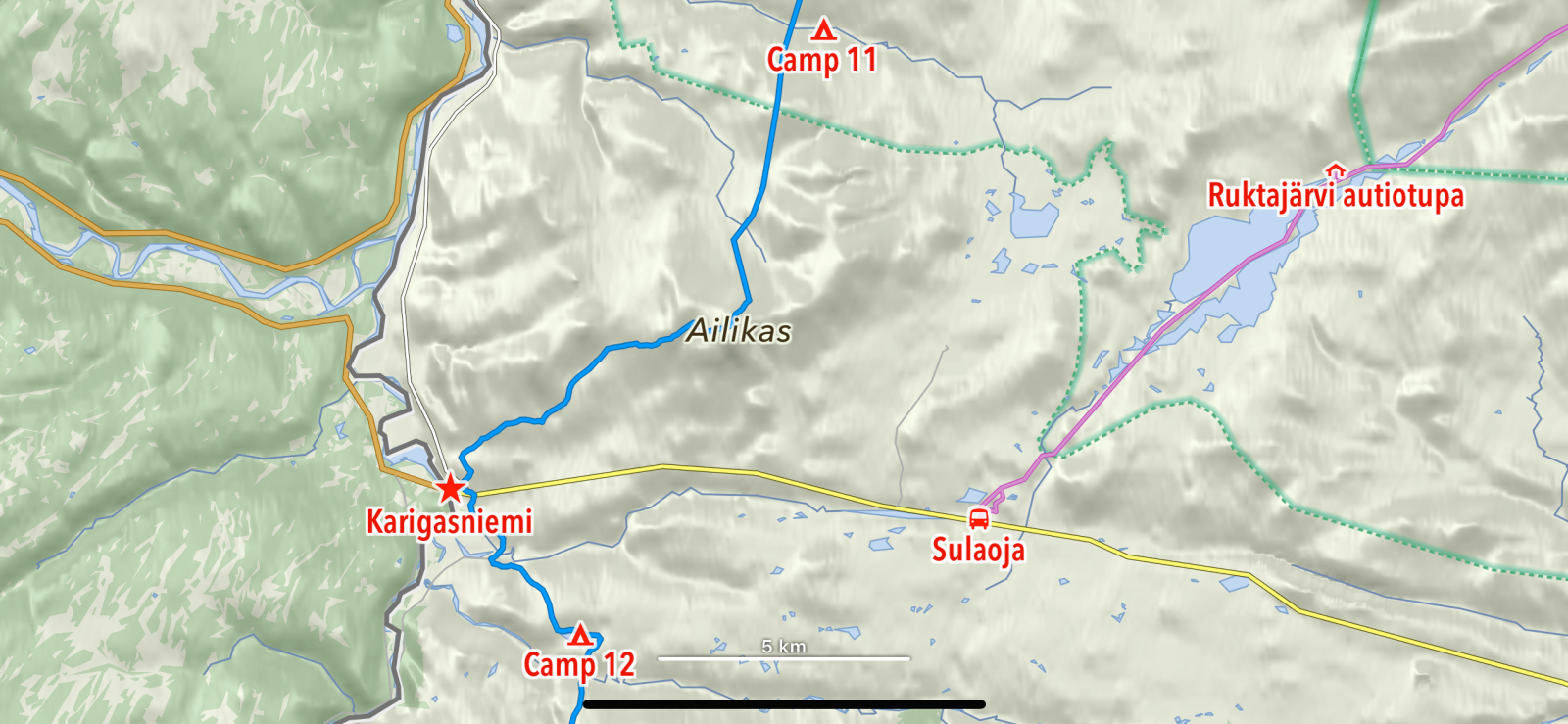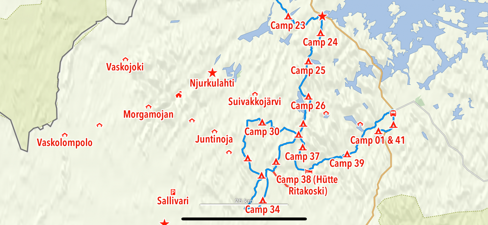 Was würde mich erwarten? Ich wusste es nicht-und wollte es auch gar nicht so genau wissen. Das einzigste was Ich noch tat war mir auf https://classic.nationalparks.fi/ die entsprechenden Seiten der Gebiete anzusehen die auf meiner Route liegen würden, mich mit den Regeln und Verhaltensweisen vertraut zu machen z.B. Restriktionen im Kevo Natur Reservat, die Hütten sowie Bushaltestellen in meiner App zu markieren die Ich im Notfall erreichen könnte.