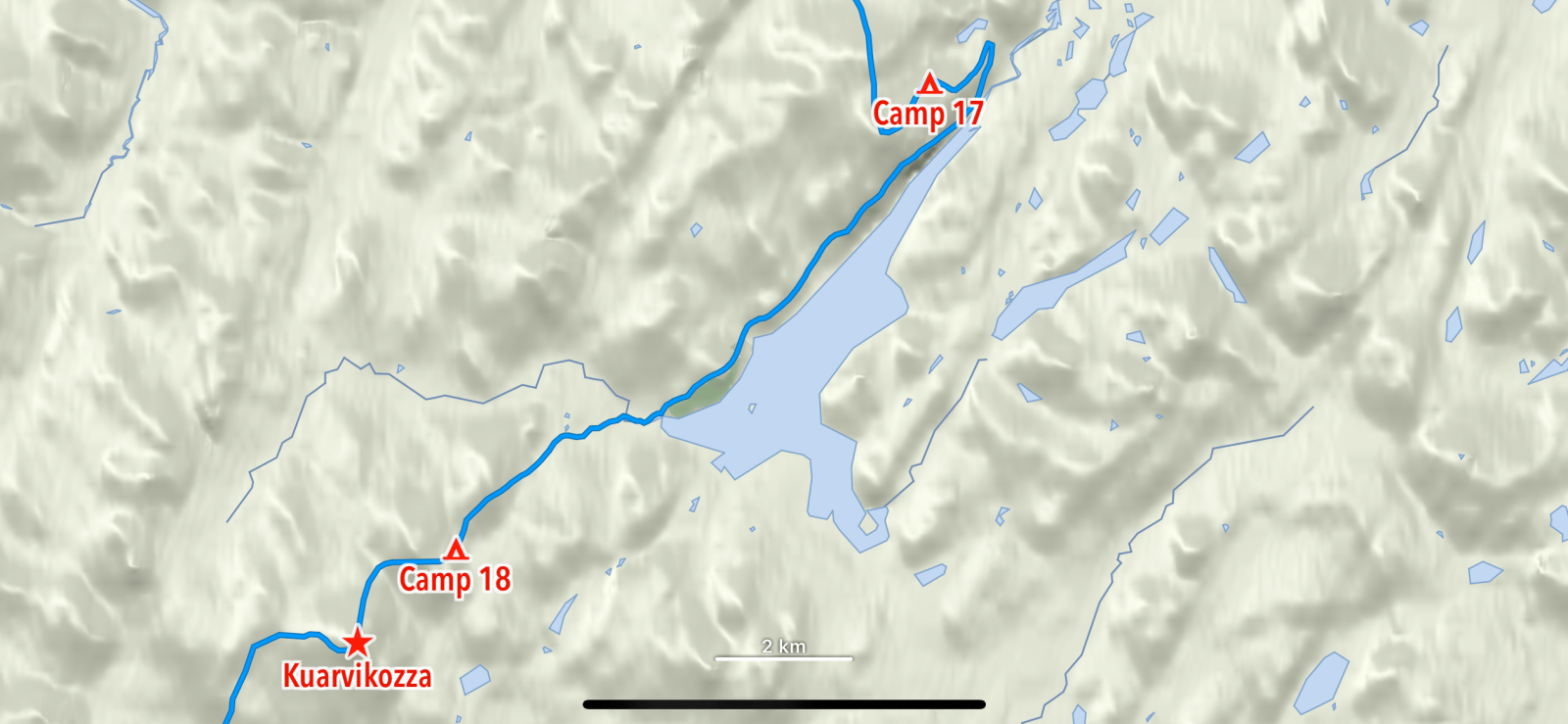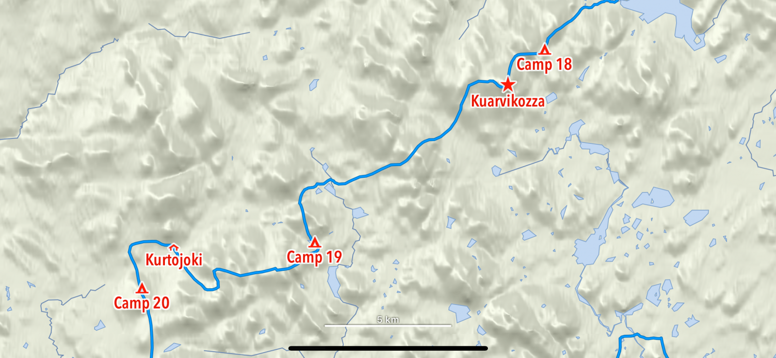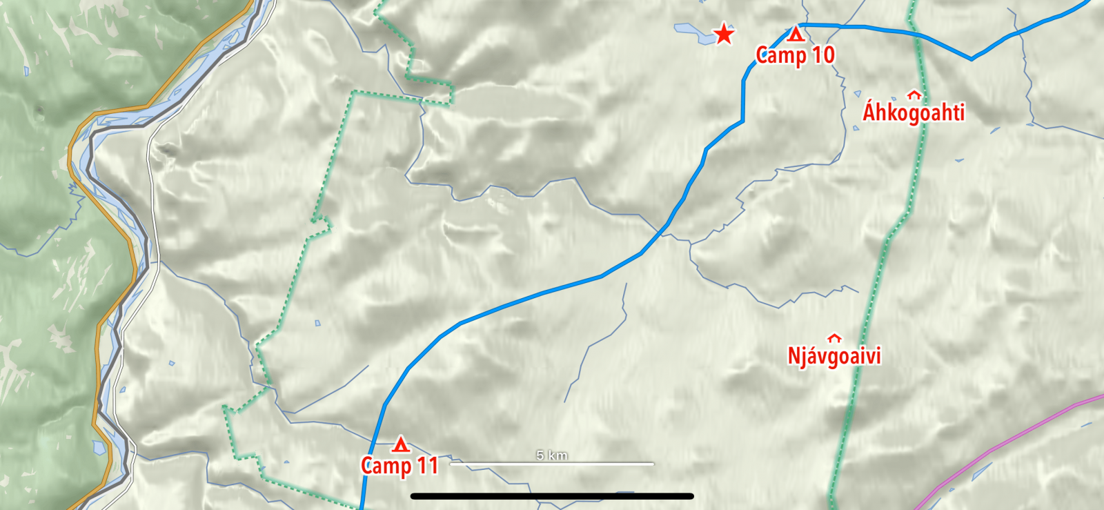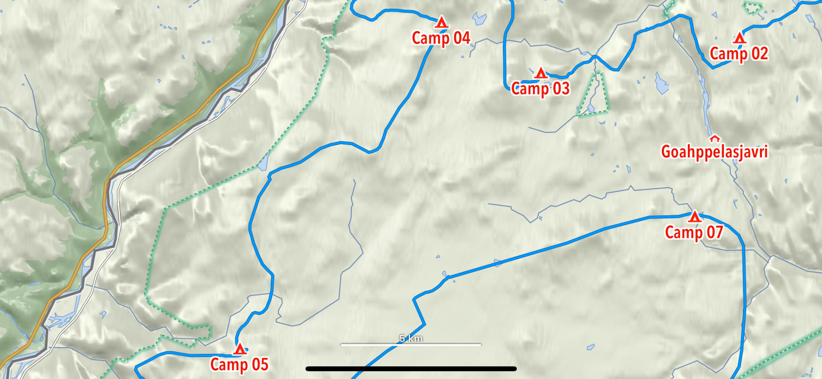 Damit habe Ich den Track täglich nachgezeichnet und die Zeltplätze markiert. Deshalb etwas ungenau und soll nur der groben Darstellung meiner Route dienen.