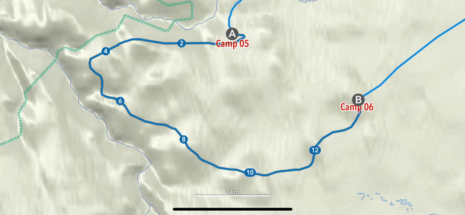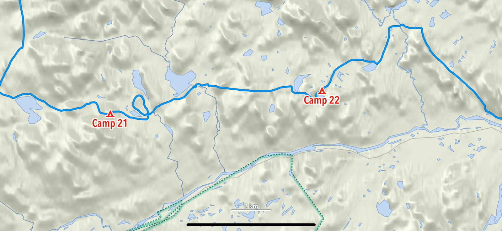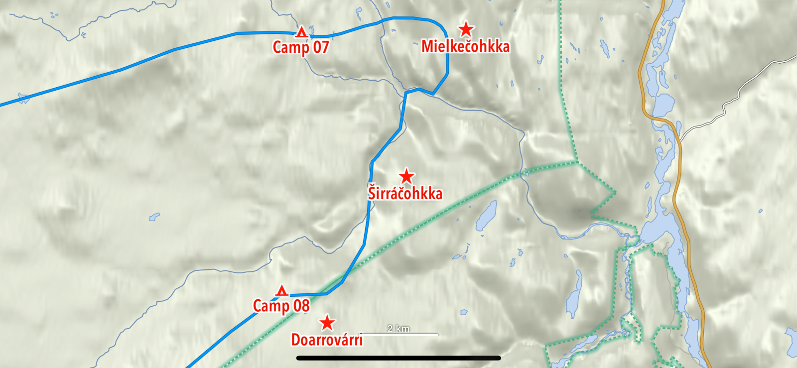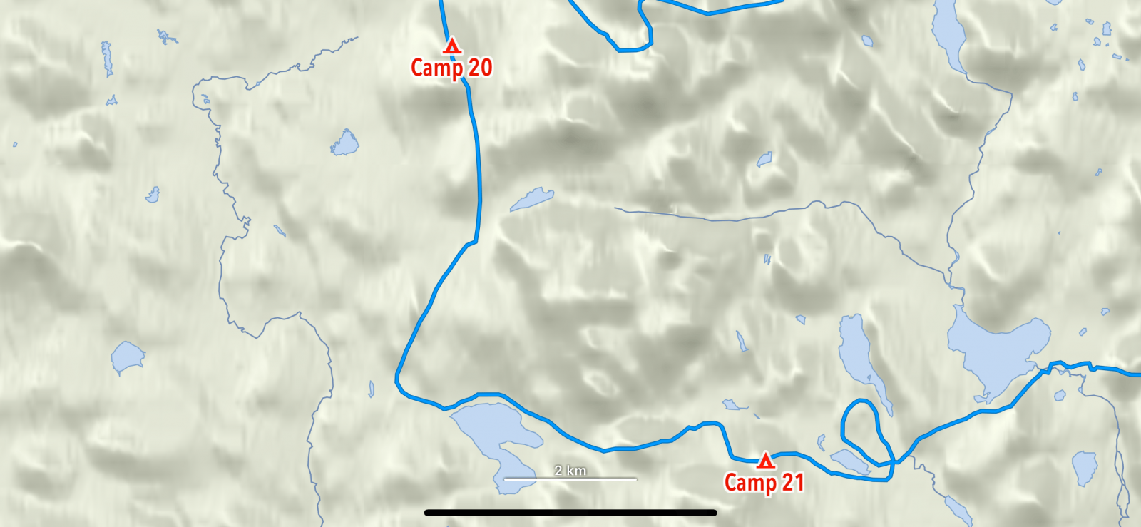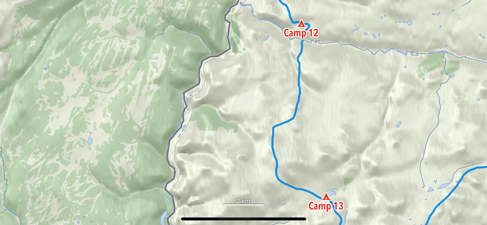 Damit habe Ich den Track täglich nachgezeichnet und die Zeltplätze markiert. Deshalb etwas ungenau und soll nur der groben Darstellung meiner Route dienen.
