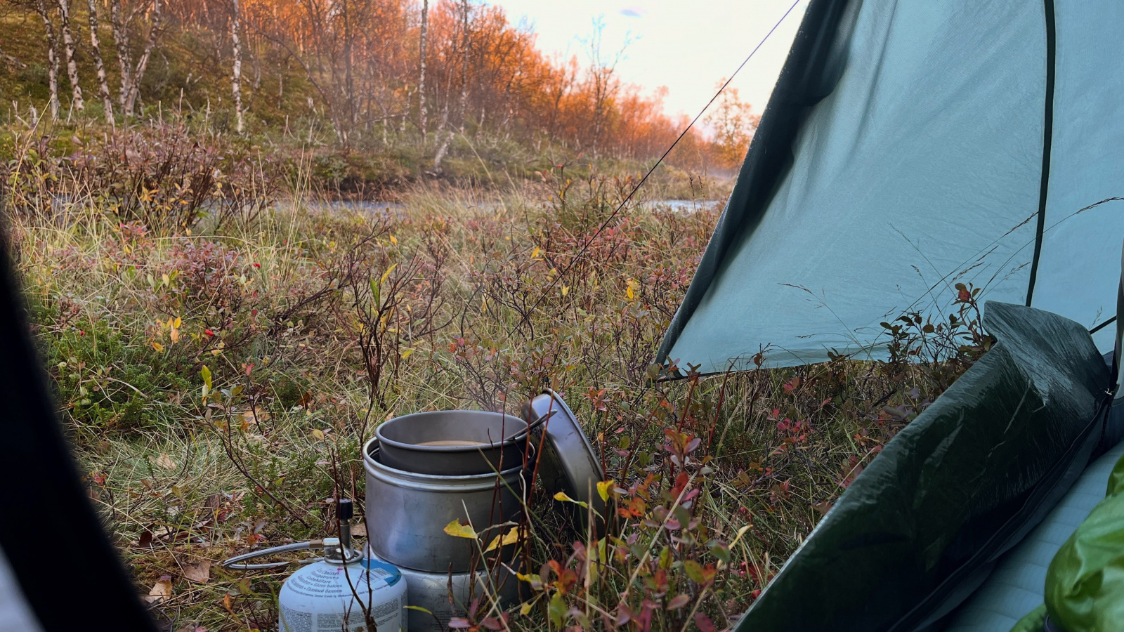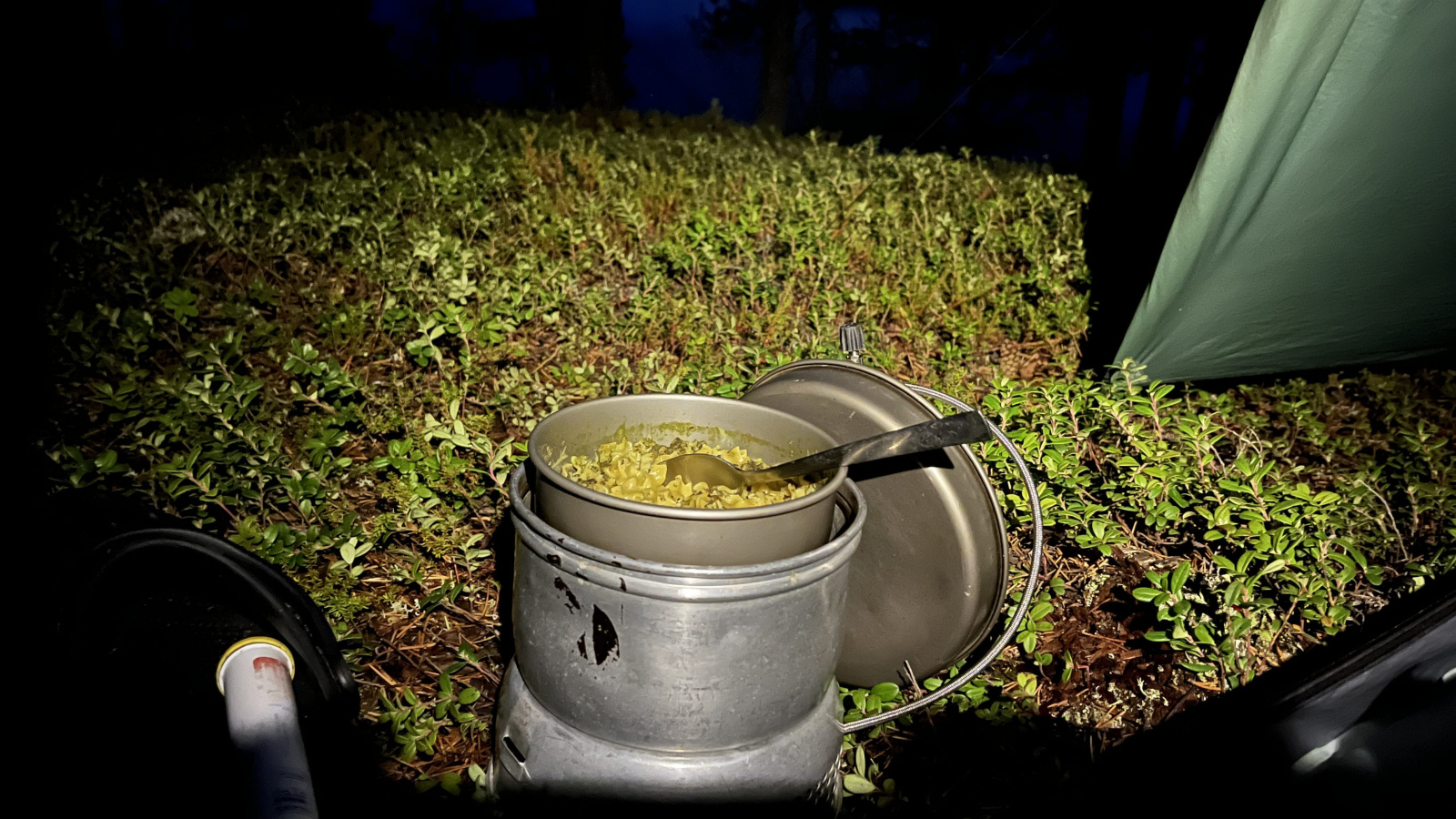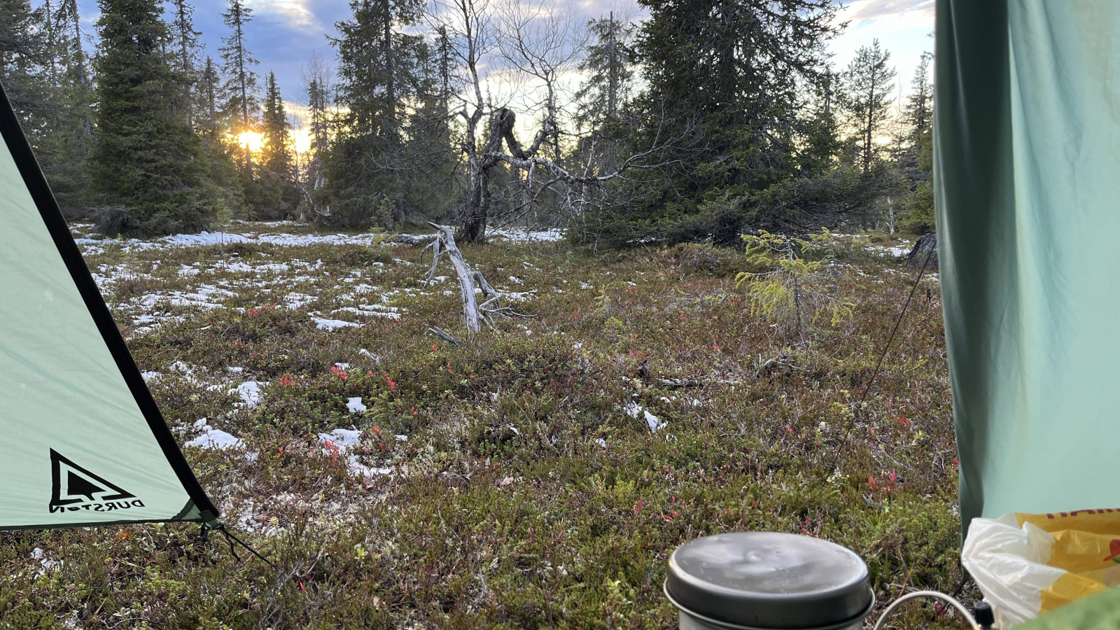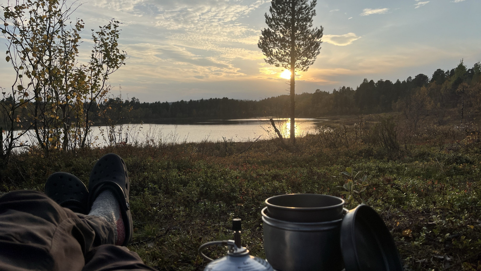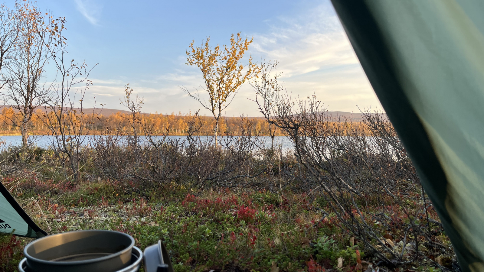 Zusätzlich zu vier Power-Banks nahm Ich zum ersten mal ein Solarpanel (Sunnybag Leaf Pro) mit in den Norden, das hat auch je nach Wetter und Wolken gut, also besser als Ich erwartet hatte, funktioniert, im Verlauf der Tour allerdings immer weniger da die Tage merklich kürzer wurden, die Sonne immer tiefer stand und Ich je südlicher Ich kam immer öfter in waldreichen Gebieten unterwegs war. Ging dann leider kaputt, aber hat bis dahin trotzdem meine Unabhängigkeit von externen Stromquellen deutlich verlängert. Ich werde also auch in Zukunft im Norden zu dieser Jahreszeit wieder eins mitnehmen.