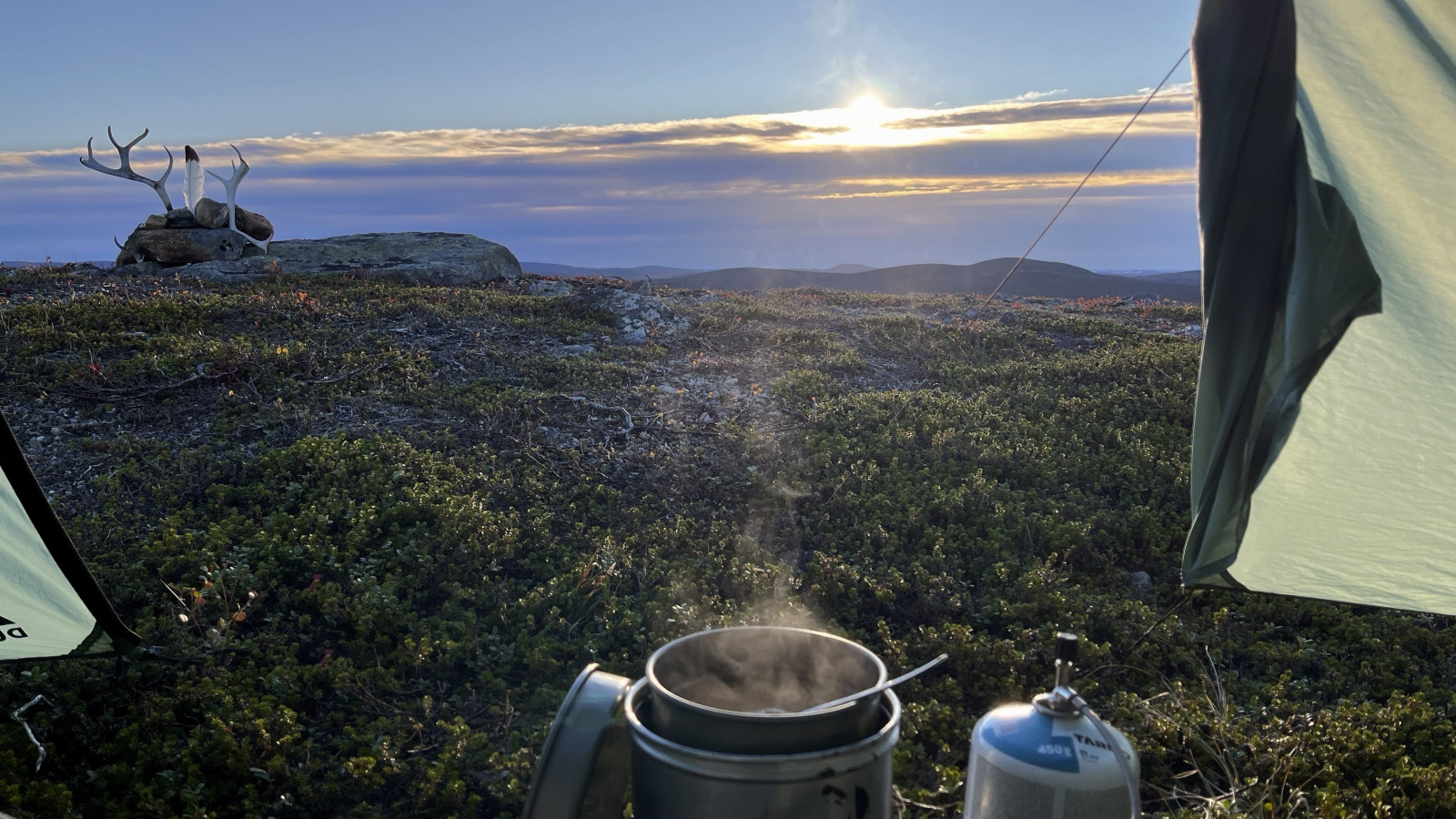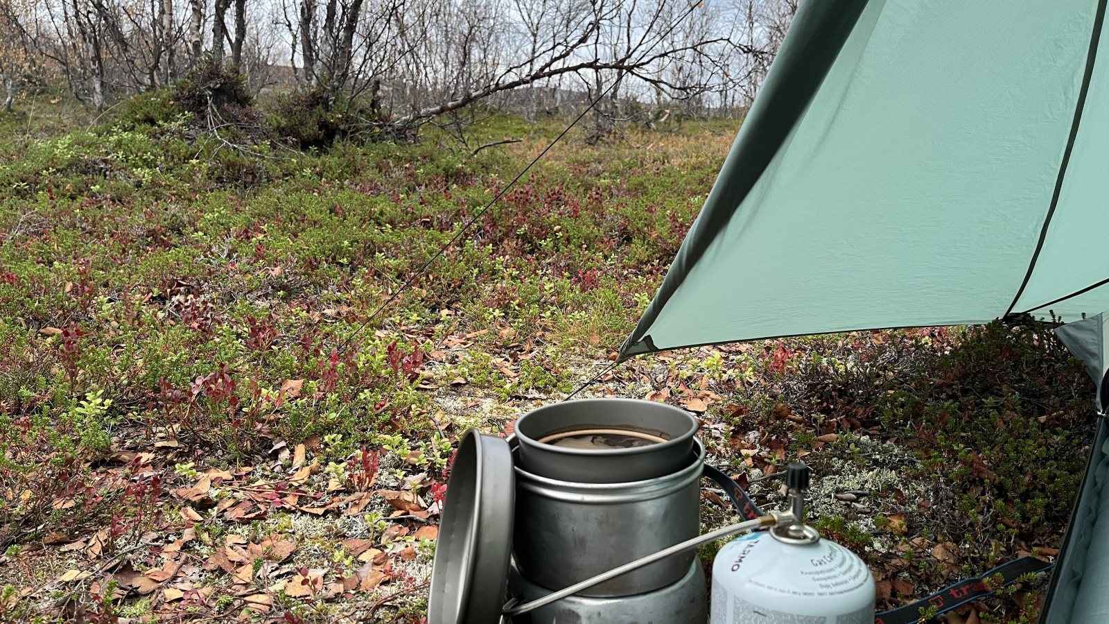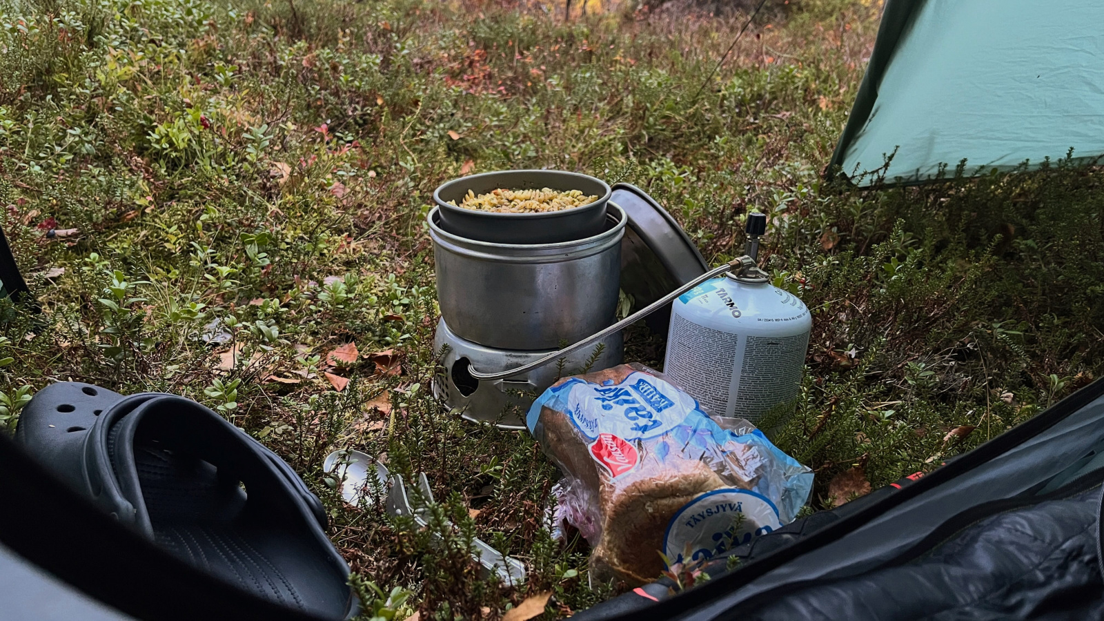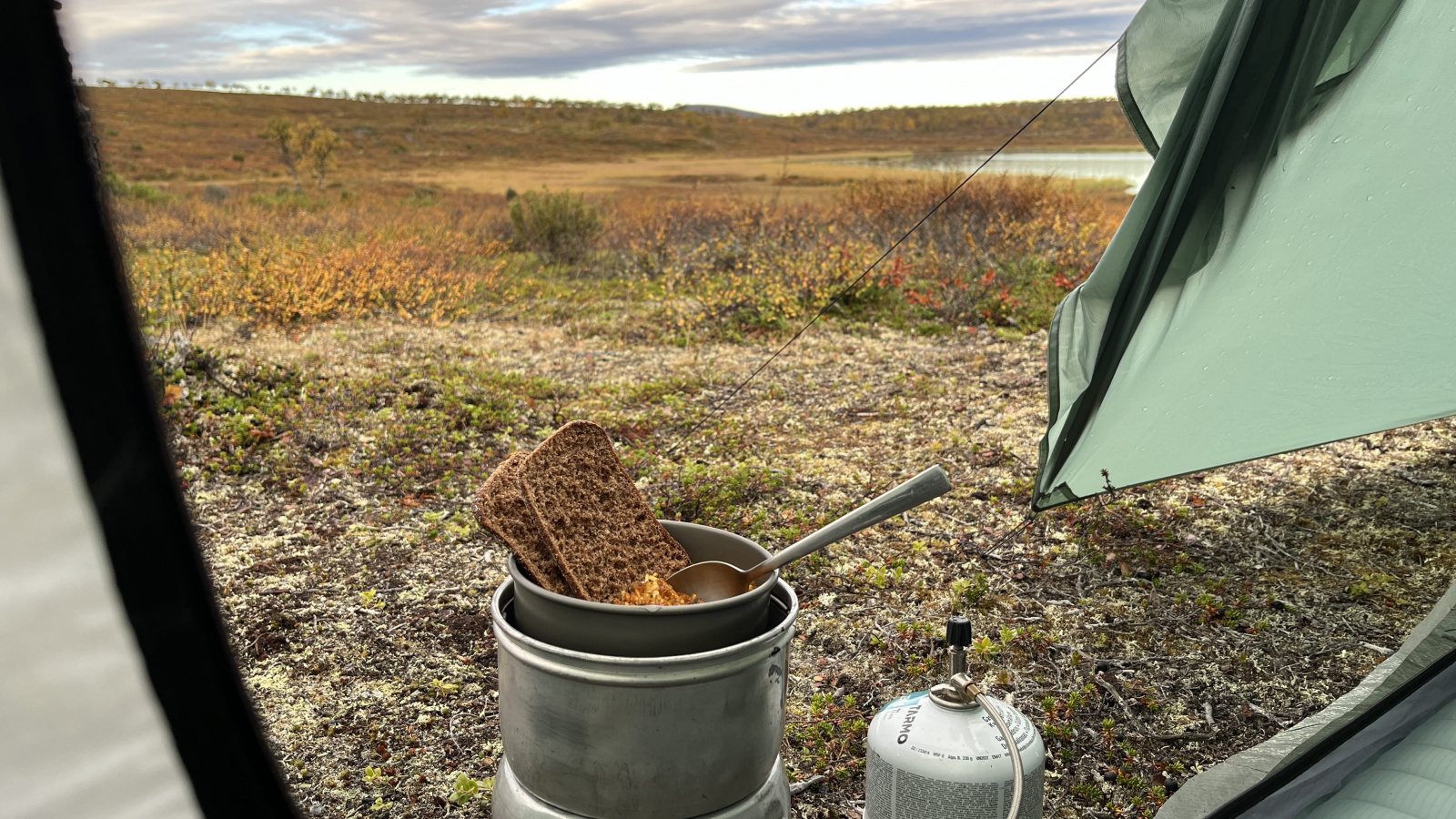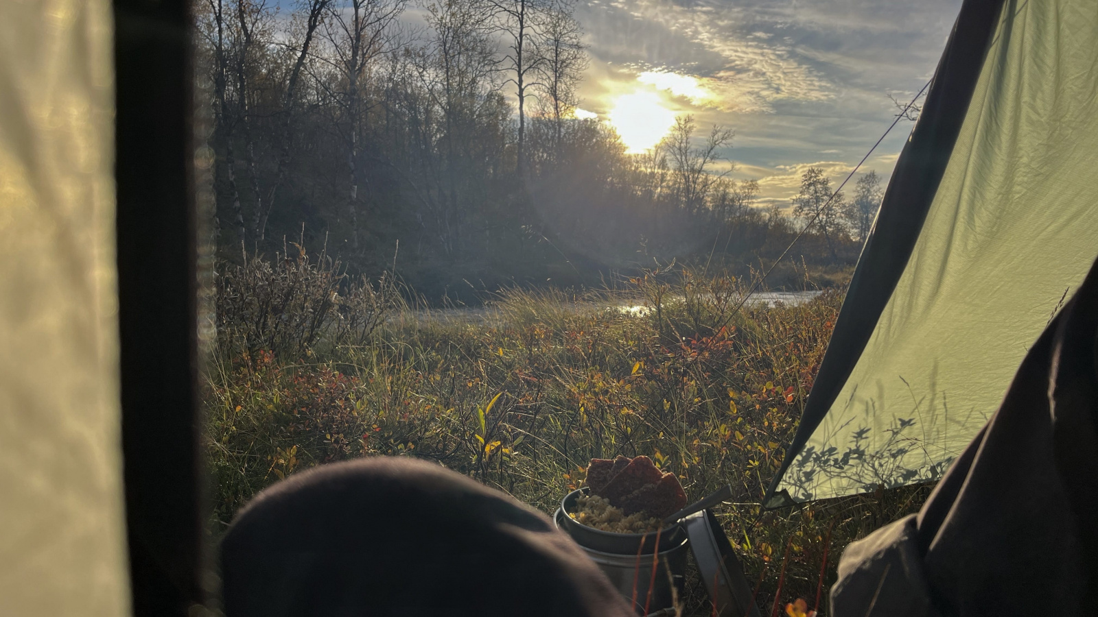 Zusätzlich zu vier Power-Banks nahm Ich zum ersten mal ein Solarpanel (Sunnybag Leaf Pro) mit in den Norden, das hat auch je nach Wetter und Wolken gut, also besser als Ich erwartet hatte, funktioniert, im Verlauf der Tour allerdings immer weniger da die Tage merklich kürzer wurden, die Sonne immer tiefer stand und Ich je südlicher Ich kam immer öfter in waldreichen Gebieten unterwegs war. Ging dann leider kaputt, aber hat bis dahin trotzdem meine Unabhängigkeit von externen Stromquellen deutlich verlängert. Ich werde also auch in Zukunft im Norden zu dieser Jahreszeit wieder eins mitnehmen.