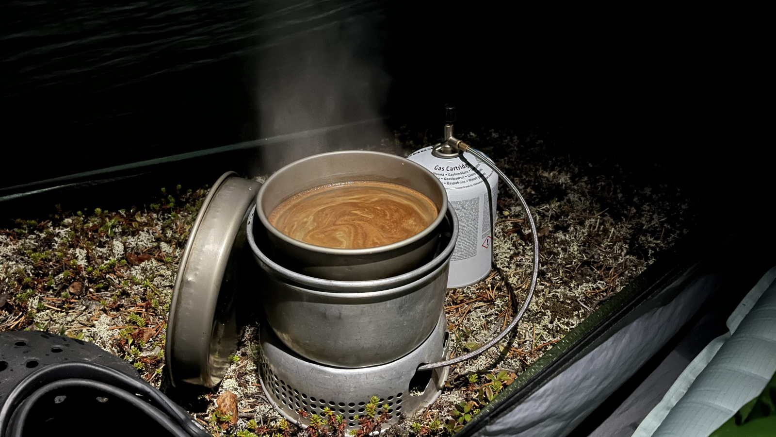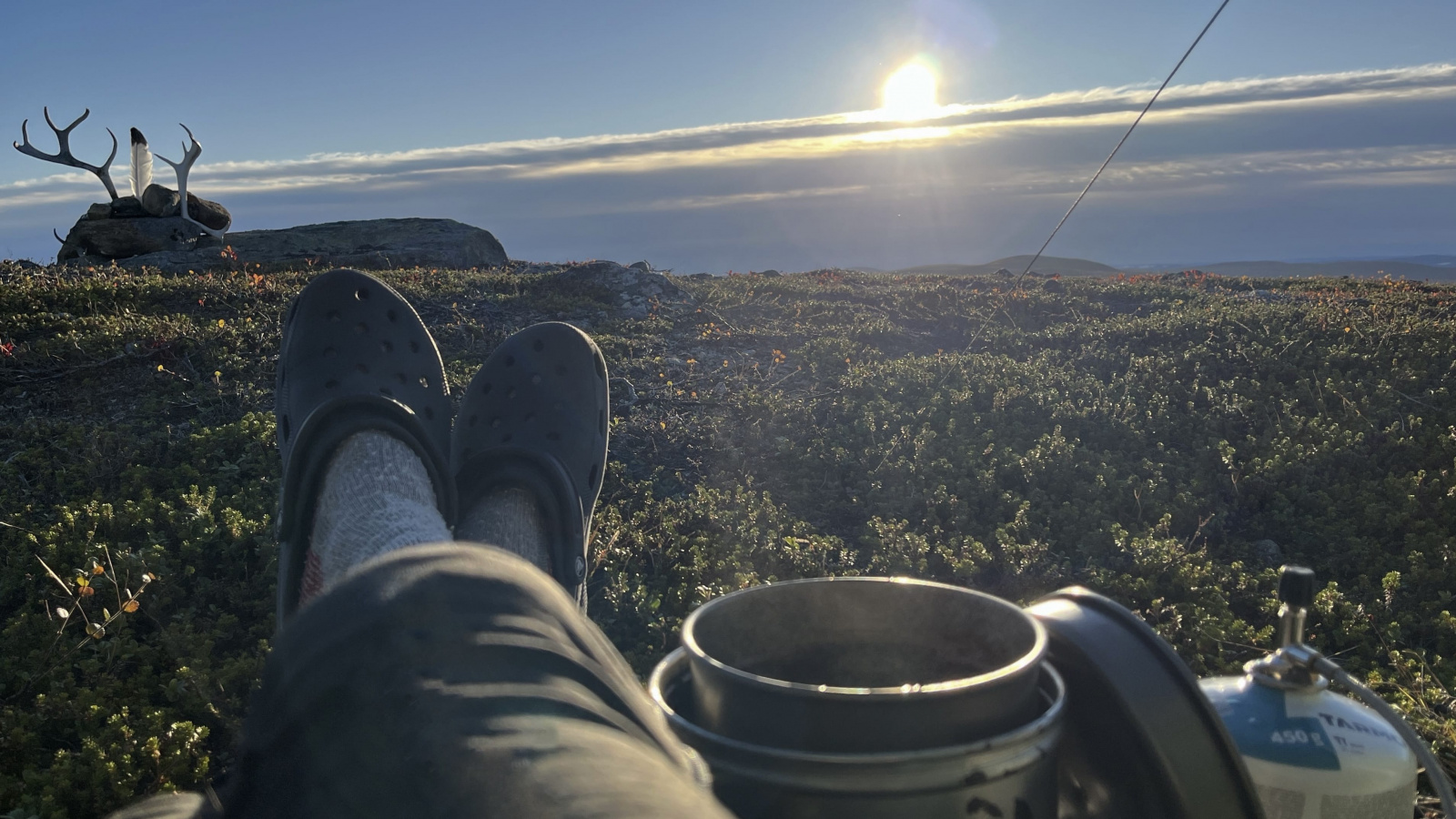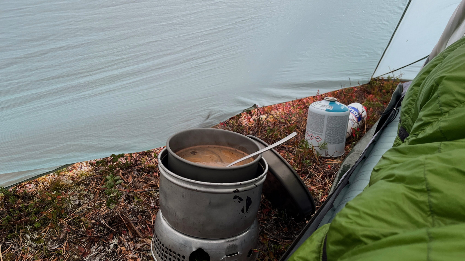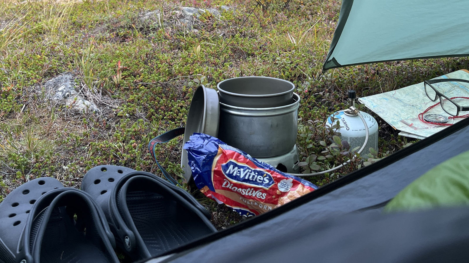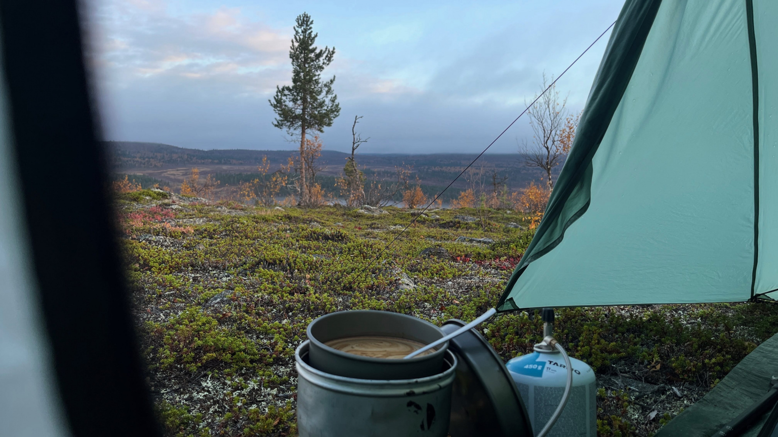 Zusätzlich zu vier Power-Banks nahm Ich zum ersten mal ein Solarpanel (Sunnybag Leaf Pro) mit in den Norden, das hat auch je nach Wetter und Wolken gut, also besser als Ich erwartet hatte, funktioniert, im Verlauf der Tour allerdings immer weniger da die Tage merklich kürzer wurden, die Sonne immer tiefer stand und Ich je südlicher Ich kam immer öfter in waldreichen Gebieten unterwegs war. Ging dann leider kaputt, aber hat bis dahin trotzdem meine Unabhängigkeit von externen Stromquellen deutlich verlängert. Ich werde also auch in Zukunft im Norden zu dieser Jahreszeit wieder eins mitnehmen.