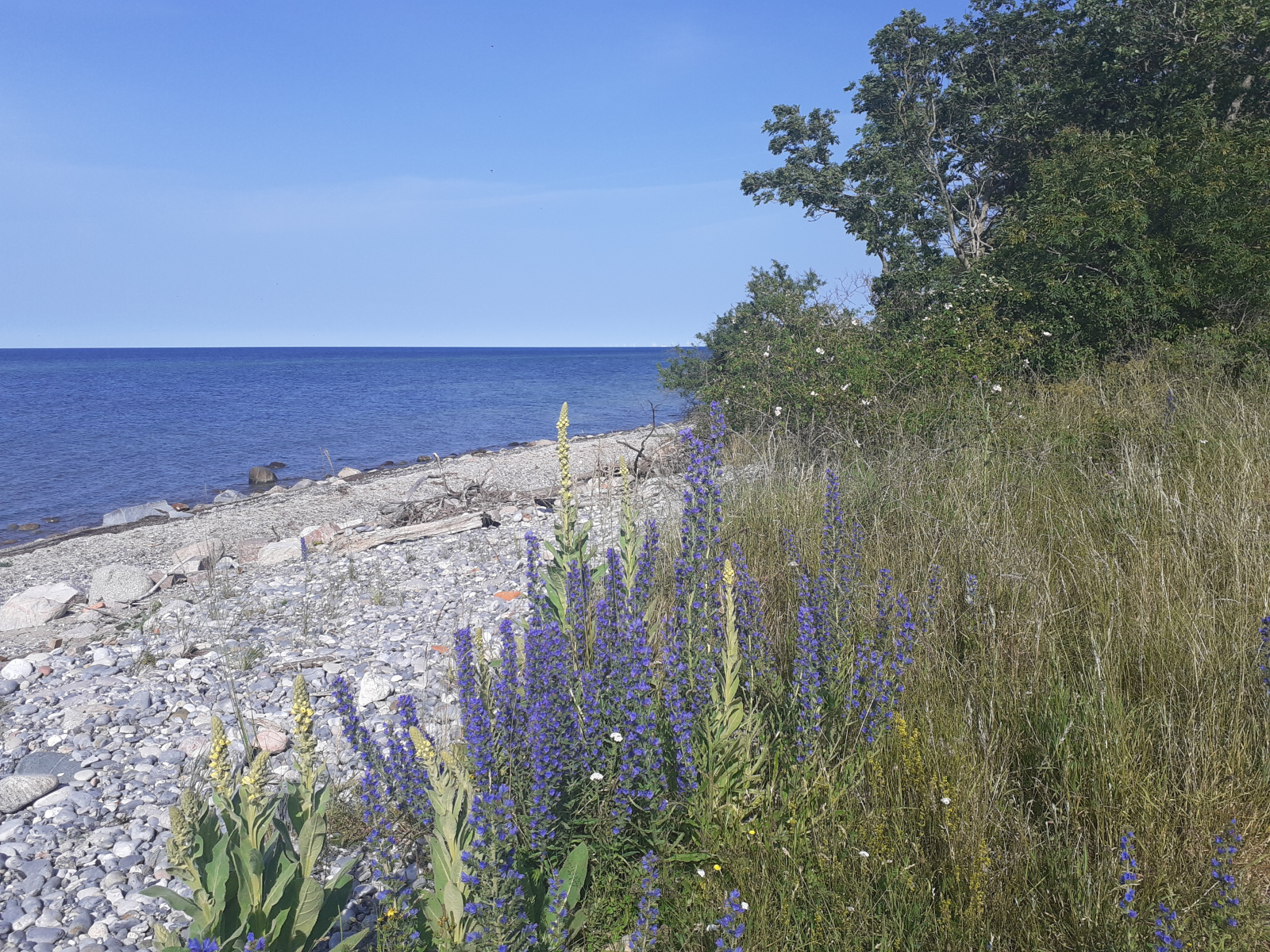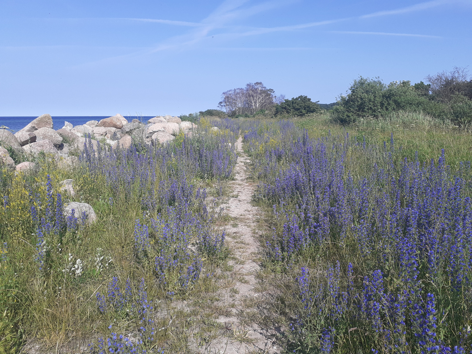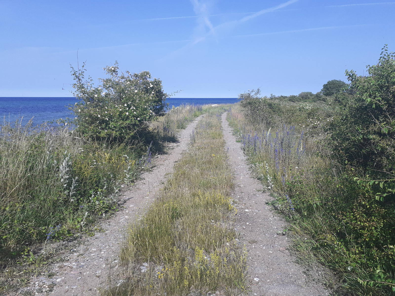 Am letzten Tag begebe ich mich zur Nordküste. Ich folge dem Wegverlauf bis Östermark und glaube den Karten, die die Existenz eines Wegs von Nordfeld zur Küste suggerieren. Diesen Weg gibt es nicht, sodass ich nach langem Irren durch den Wald an einer Straße aus diesem finde und nach sehr viel Zeitverlust schlussendlich zur Küste finde, an der dann auch Stück des ausgeschilderten Wegs verläuft. Am schon späteren Nachmittag verbleibt mir gar nicht so viel Zeit für den nach Möns Klint interessantesten Wegteil. In Borre erreiche ich den Bus und fahre damit nach Stege zurück.