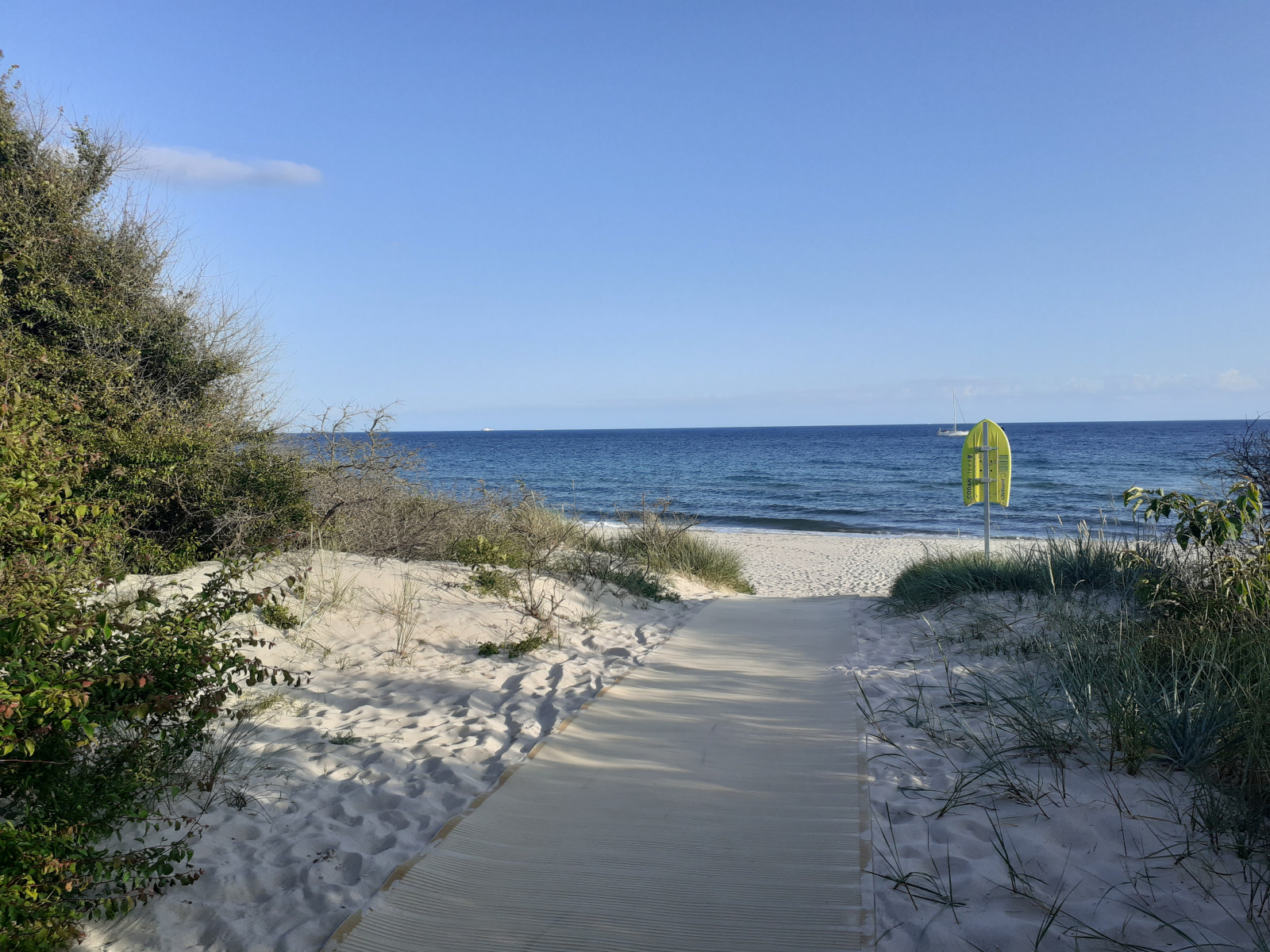 Der Strand und dessen weiterer Verlauf beim Klintholm Havn