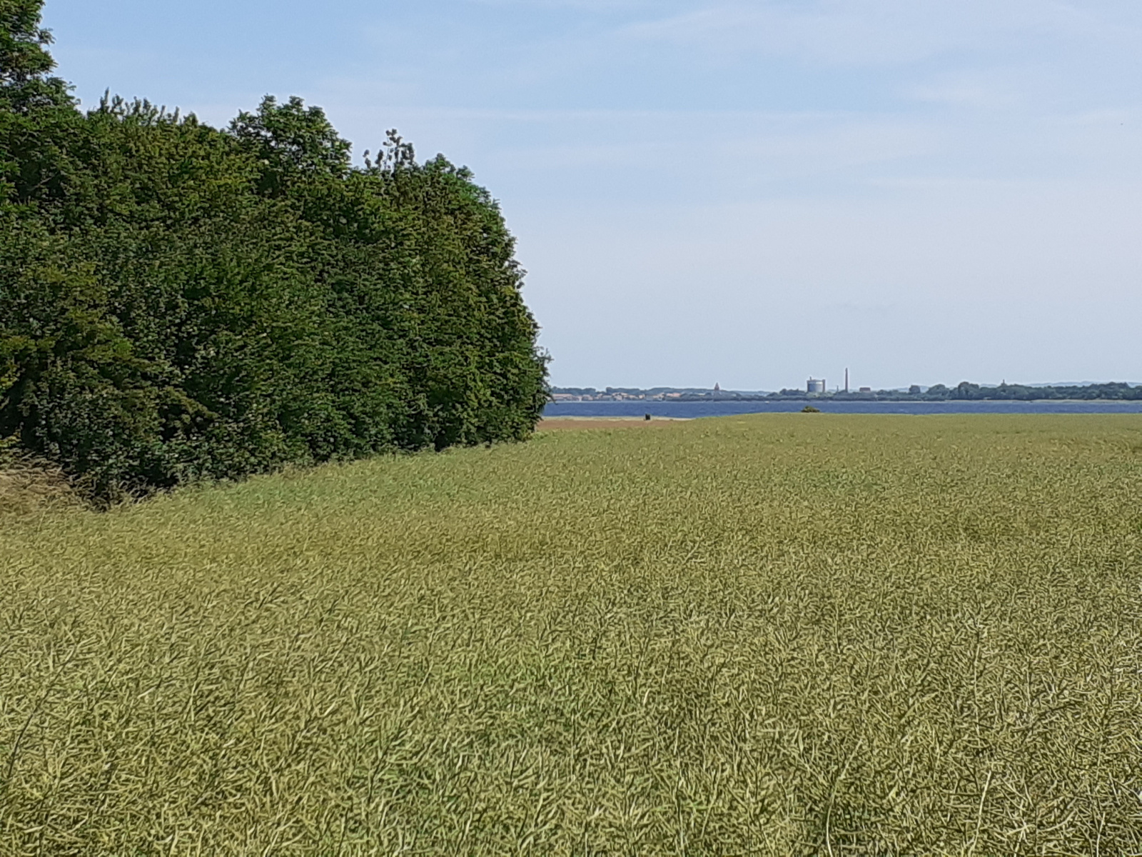 Ich nächtige am selben Platz und breche wieder etwas zu spät Richtung Norden auf. Der Weg führt zunächst entlang von Feldern über Asphalt und geht erst später auf Pfade durch Wälder und Weiden über. Nahe Ulvshale wird der Weg interessanter, allerdings komme ich nicht mehr bis Nyord sondern drehe zuvor um und kehre nach Stege zurück, auch um mich mit Wasser zu versorgen.