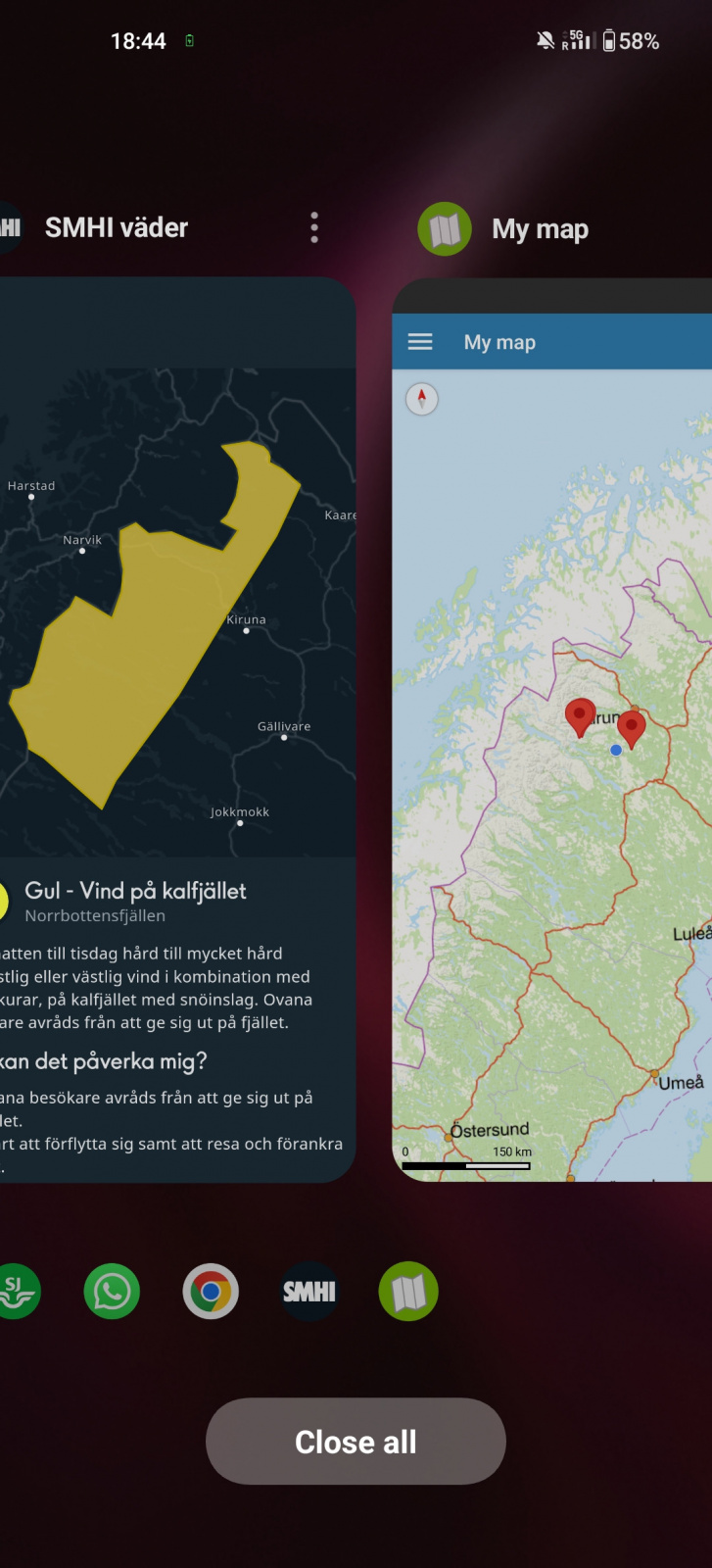 Nach meiner Ankunft in Fjällåsen nehme ich den Zug nach Kiruna. Meine Laune fällt tief in den Keller. In der Zivilisation angekommen bemerke ich, wie sehr ich die Zeit in der Natur genossen habe und sehne mich bereits nach ihr zurück. So richtig realisiert hatte ich das draußen während des Hinweges nicht... ständig war ich damit beschäftigt, die Route zu bewältigen und mir zu viele Sorgen zu machen. Ich muss das alles einfach mal lockerer sehen... Dinge nehmen wie sie kommen und nicht alles versuchen ins kleinste Detail vorauszuplanen.