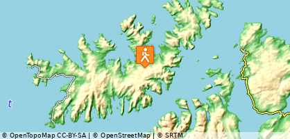 Jetzt wusste ich: Es gibt seit 2021 einen durchgängig markierten, ca. 90km langen Weg „Sørøya på langs“, den Studenten der UiT Arctic University of Norway Campus Alta in mehrjähriger Arbeit angelegt hatten. Es gibt sogar den GPX-Track zum Herunterladen (https://hammerfest.kommune.no/tjenes...angs.7869.aspx). Er startet am westlichsten Punkt der Insel und endet in Tarhalsen, dem nördlichsten Felszipfel. Das Ziel passte für mich. Etwas unterhalb von Tarhalsen gibt es den kleinen Fischerhafen Akkarfjord mit Fährverbindung nach Hammerfest. Perfekt für die Rückreise. Der Start im Westen schien mir dagegen nicht so geeignet zu sein, denn die zweite Fährverbindung nach Sørøya führt ans südliche Ende, nämlich nach Hasvik. Außerdem dachte ich, wenn das Ziel schon das Nordende ist, dann muss der Start natürlich das Südende sein. Also stand der Plan fest: Von der Landspitze südlich von Hasvik nach Nordosten laufen, bis ich auf den markierten Weg stoßen würde, der hier von Westen nach Osten verläuft und diesem dann folgen. Für die rund 90km hatte ich 6 Tage geplant und zwei zusätzliche Tage als Puffer.