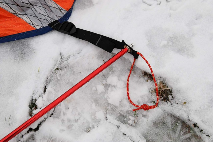 - Schneeanker notwendig für Wintereinsatz, der vordere Bereich flattert im Wind, wenn er nicht verankert oder innen beschwert wird (z.B. mit einem Rucksack).