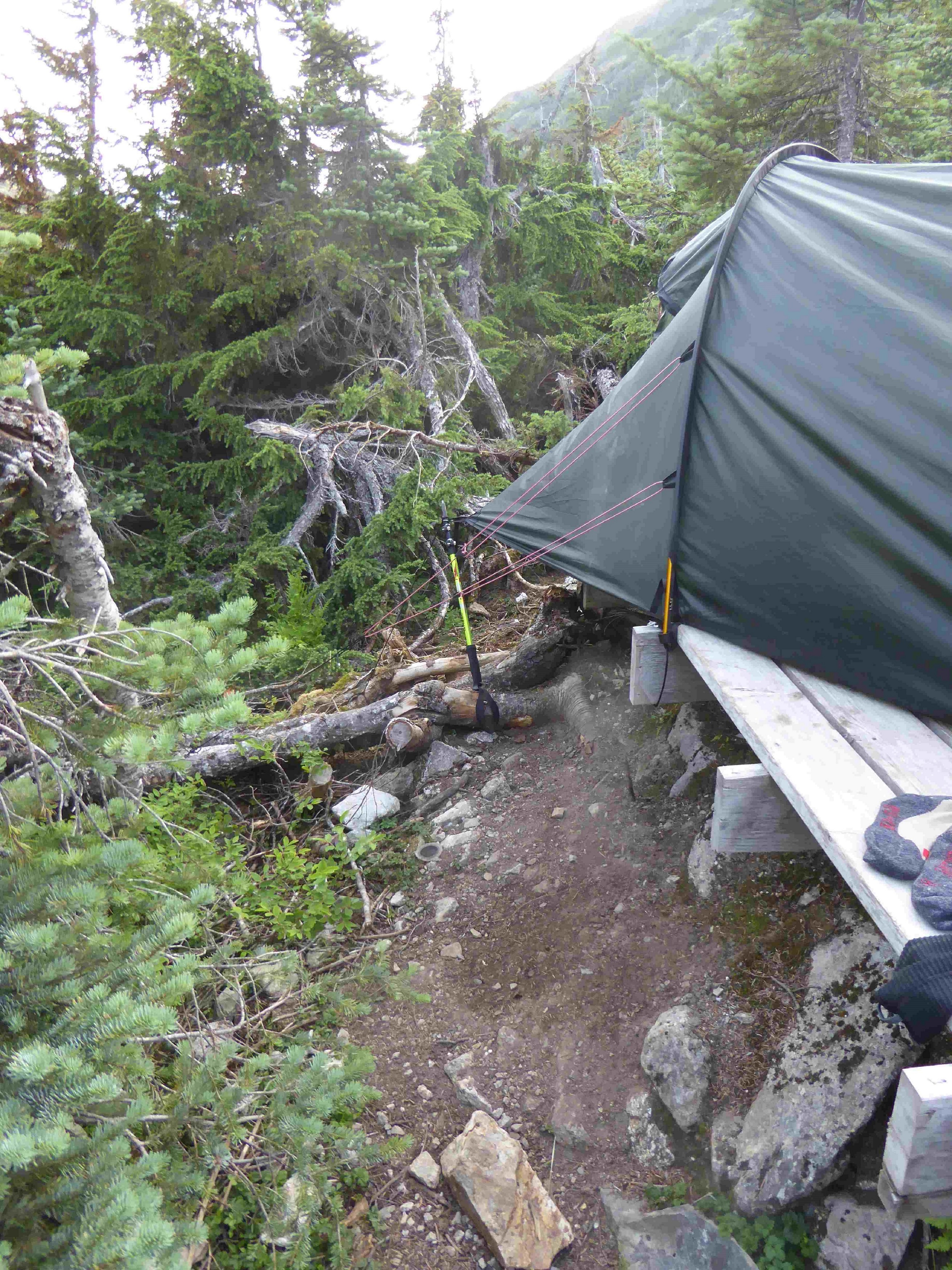 Im Hunsrück-Hochwald war es gut, dass ich ein paar Meter extra Leine dabei hatte. Den Hering als Stöckchen drunter zu klemmen erwies sich als wenig hilfreich, da meist nicht genügend Zug drauf war, damit das fix bleibt. Mit extra Schnur/Paracord gab es genügend Fixierungsoptionen.