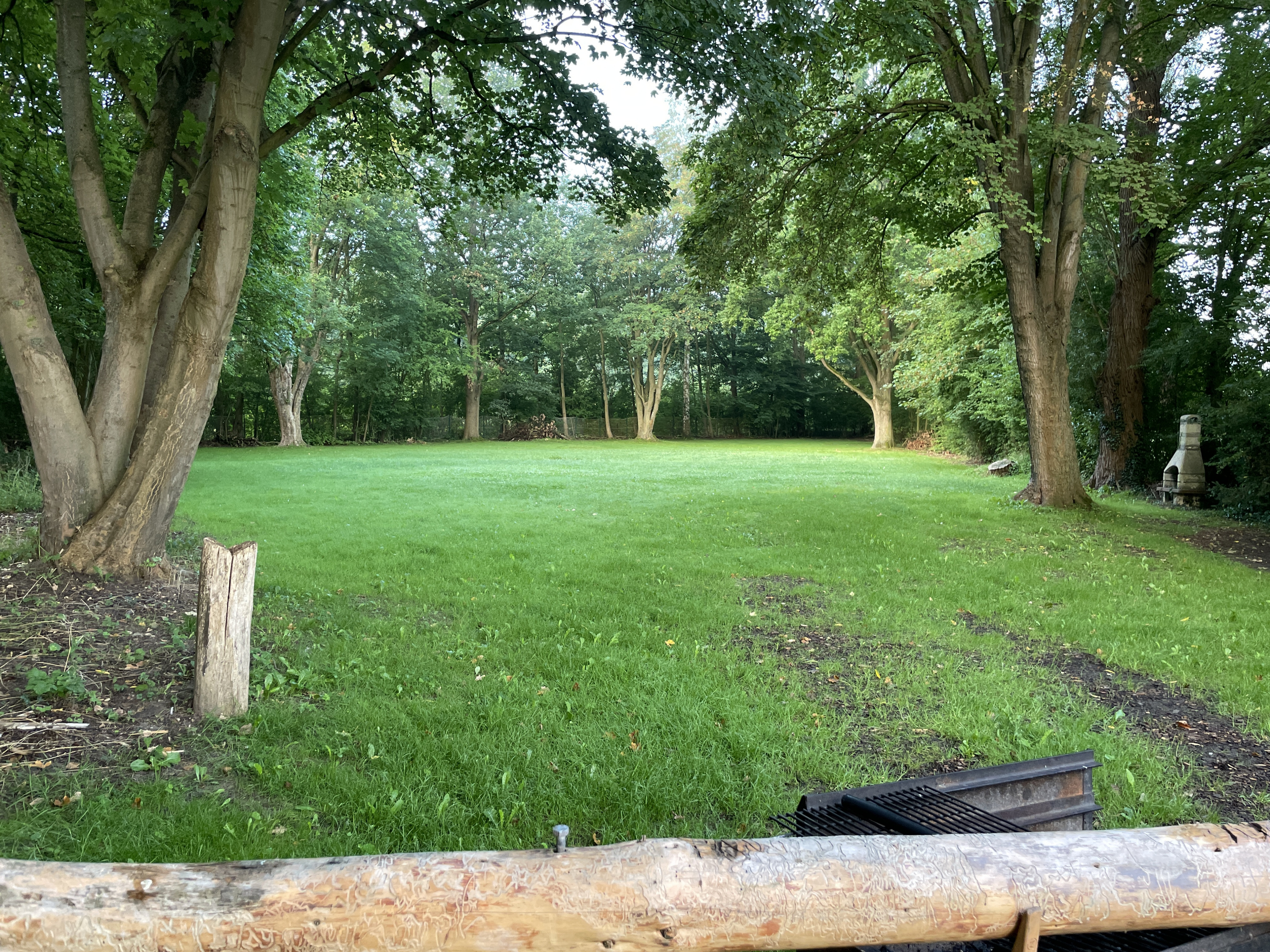 Die Wiese ist von Eichen eingerahmt (Schatten) und vom Mittellandkanal durch einen Zaun und dem Betriebsweg getrennt. Man hört die Schiffe vorbei tuckern. Lagerfeuer machen wir dort regelmäßig (Walpurgis, Geburtstage oder SchulklassenAbschlussfeste, Junge Gesellschaft).