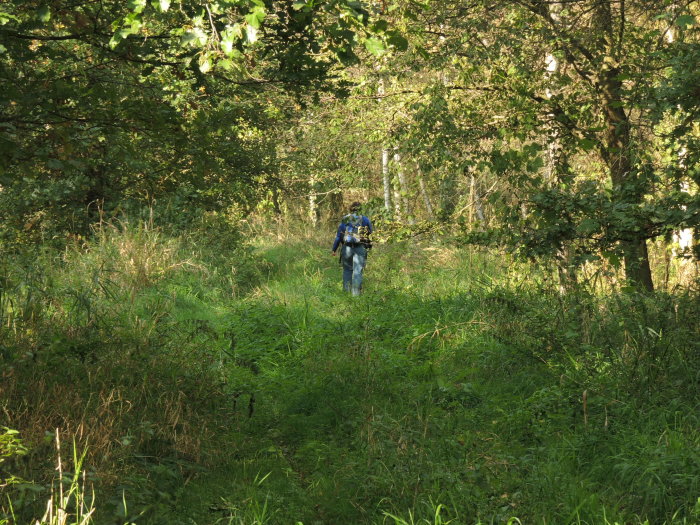 Unten folgten wir einem gestrichelten Weg entlang der Ploucnice. Zu meiner großen Erleichterung endete er nicht an der Gemeindegrenze (so, wie es die Karte behauptet hatte), sondern ging durch. Vorsichtshalber hatte ich diese Ungewissheit vorher verschwiegen.