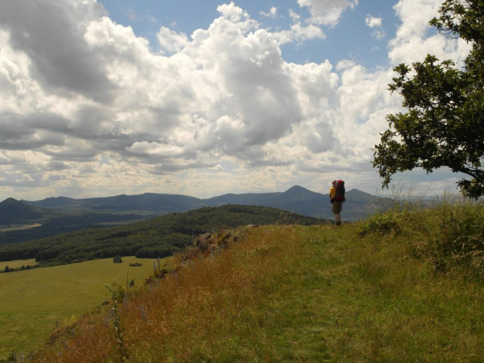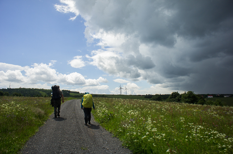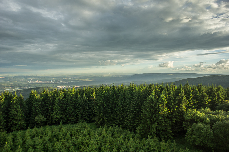 - fanden wir eine Aussichtsplateau am Waldrand, wo uns nur der Schotteruntergrund davon abhielt, das Zelt aufzubauen. Ein neuerlicher Schauer ließ uns aber toleranter werden - und wer weiß, ob wir woanders dieses Foto direkt aus dem Zelt hätten machen können?