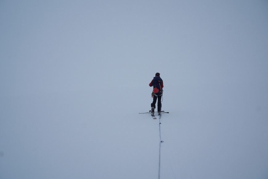 Innerhalb von ein paar Minuten zieht es dann immer wieder zu, erst mal nur kurz, dann phasenweise im White out, was die Sache nicht erleichtert.