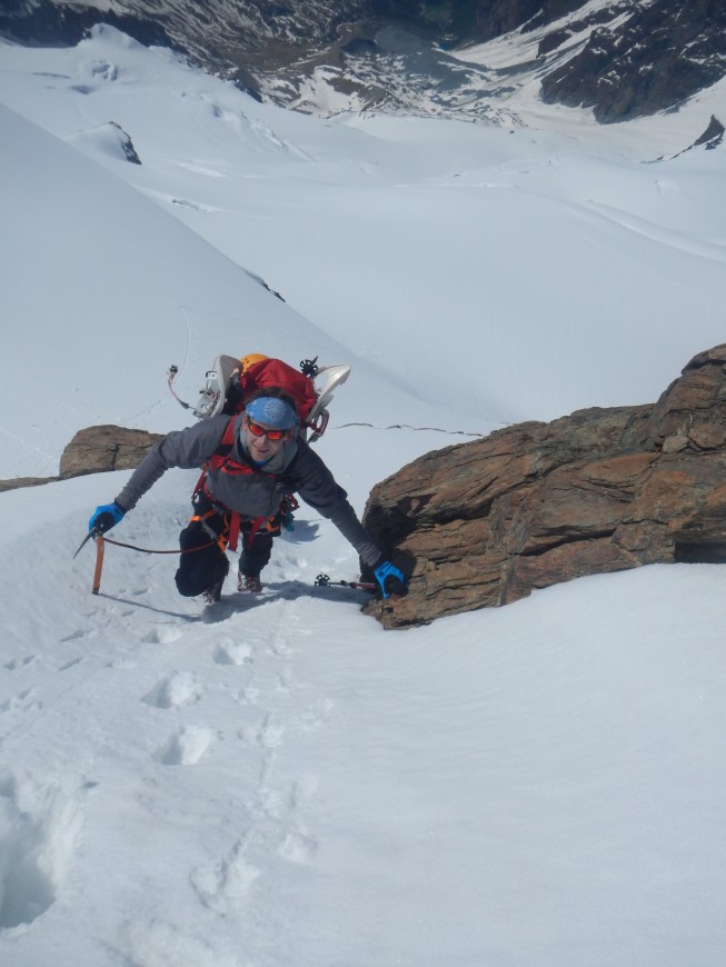 Am nächsten Morgen ein bisschen ausschlafen und los in Richtung Roccia Nera, dem östlichsten Gipfel der Breithorn-Kette.