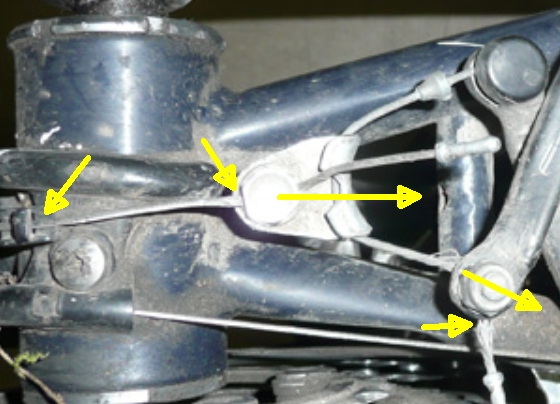 Ha, ja. Möchte auch mal wissen, wer es sich ausgedacht hat, die Bremse da unten zu montieren wo sie nur das Kettenöl abbekommt. Man spart so 50 cm Bowdenzug... na, super