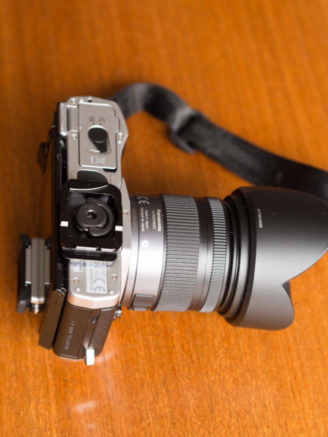 Es folgt die OM-D E-M5 mit einem Standard Plate von Peak Design: