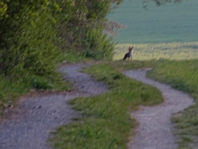 Das war ein mal morgens gegen 09.00 und ein mal nachmittags um 17.00 Uhr. Allerdings in kaum frequentierten Gegenden. Dass Hundi dabei war machte (auf die Entfernung) gar nichts.