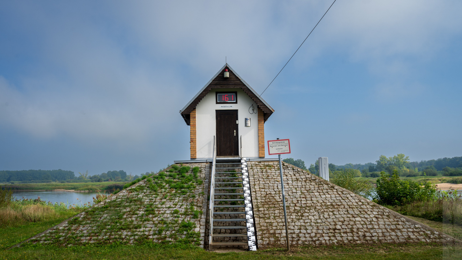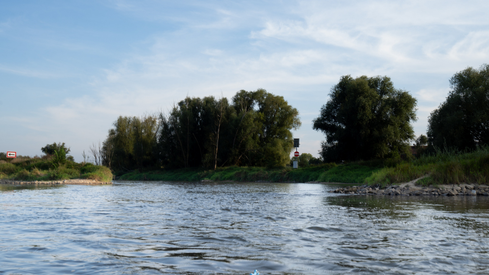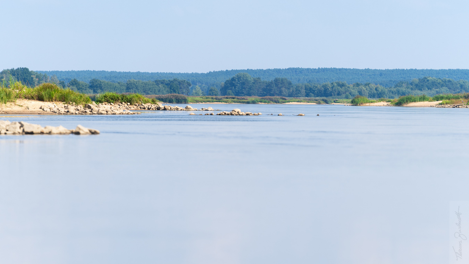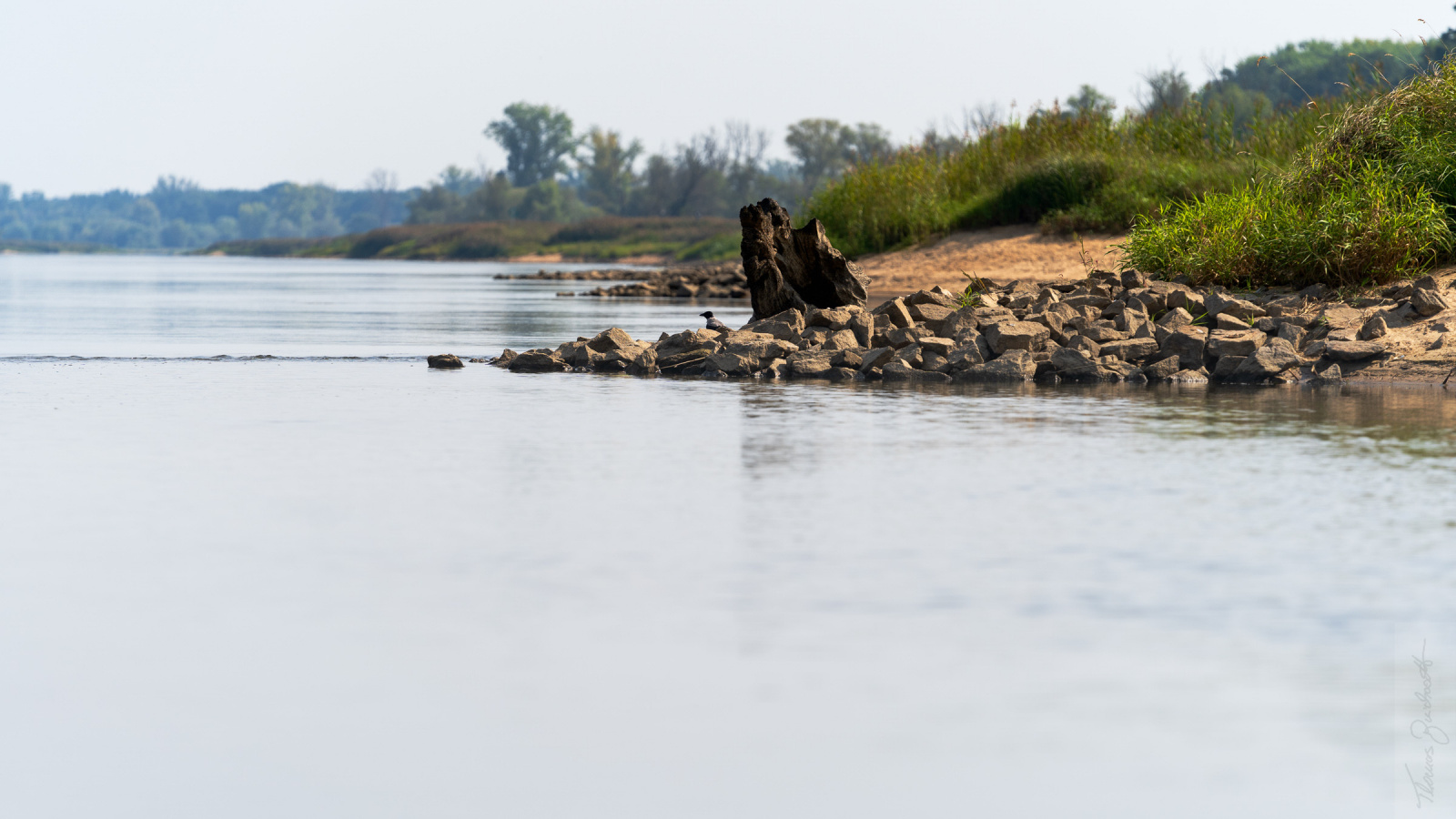 Beim "Buhnenhopping" auf die Steine achten. Durch das Niedrigwasser reichen sie weit vom Ufer ins Wasser. Man sollte Erfahrungen mit den Strömungsverhältnissen an so einer Buhne haben und sein Boot einigermaßen sicher beherrschen können.
