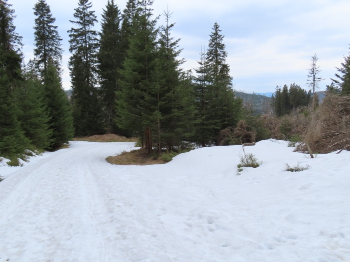 Leider war es bedeckt, kam dadurch aber nicht ins Schwitzen. In den höheren Lagen ab ca. 1100 hm lag noch Schnee in den Wäldern und auf den Wegen.