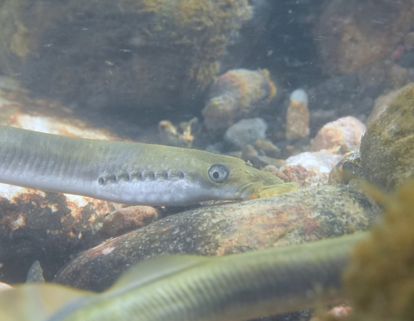 Ich bin am Wochenende mit einem Kumpel im Spessart an Bächen entlang getigert. Dabei entdeckten wir u.a. Bachneunaugen bei der Paarung. ~15-18cm, die etwas an Aale erinnern, aber keine Fische sind, sondern "Rundmäuler". Die leben als augenlose Larven im Sediment und kommen dann sozusagen nur zum Schnackseln raus und das auch nur einmal.