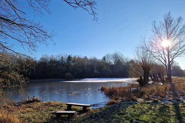 Meine Rund beginnt an einem Badesee. Ob ich das erste Foto das ganze Jahr über machen kann weiß ich noch nicht. Ich möchte dort ungern andere Leute beim Baden fotografieren. Vielleicht aber klappt es ja und ich kann den über das Jahr sinkenden Wasserstand dokumentieren.