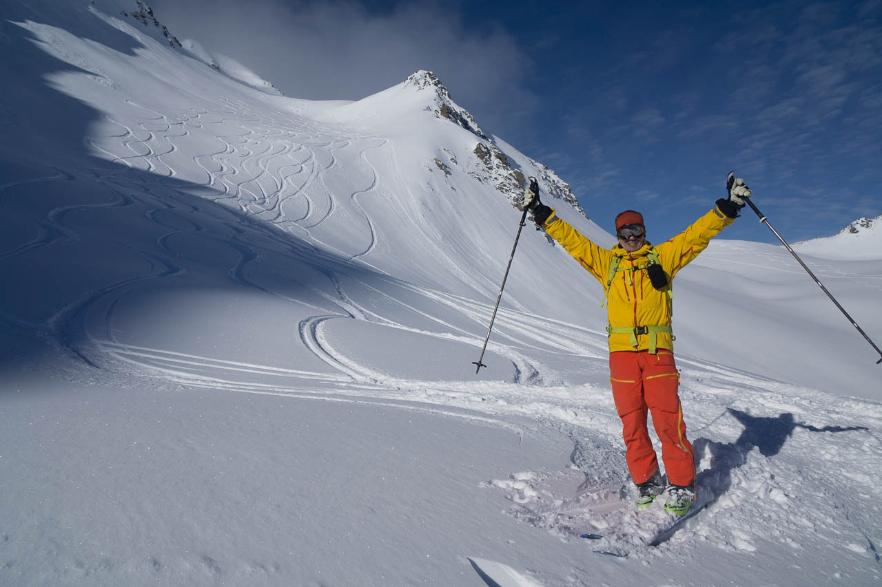 Aber, mit Ski ist man schneller wieder nach unten und kommt, falls man es kann, auch steilere Sachen runter. Mit Skiern sollen schräge Hänge einfacher zu queren sein.